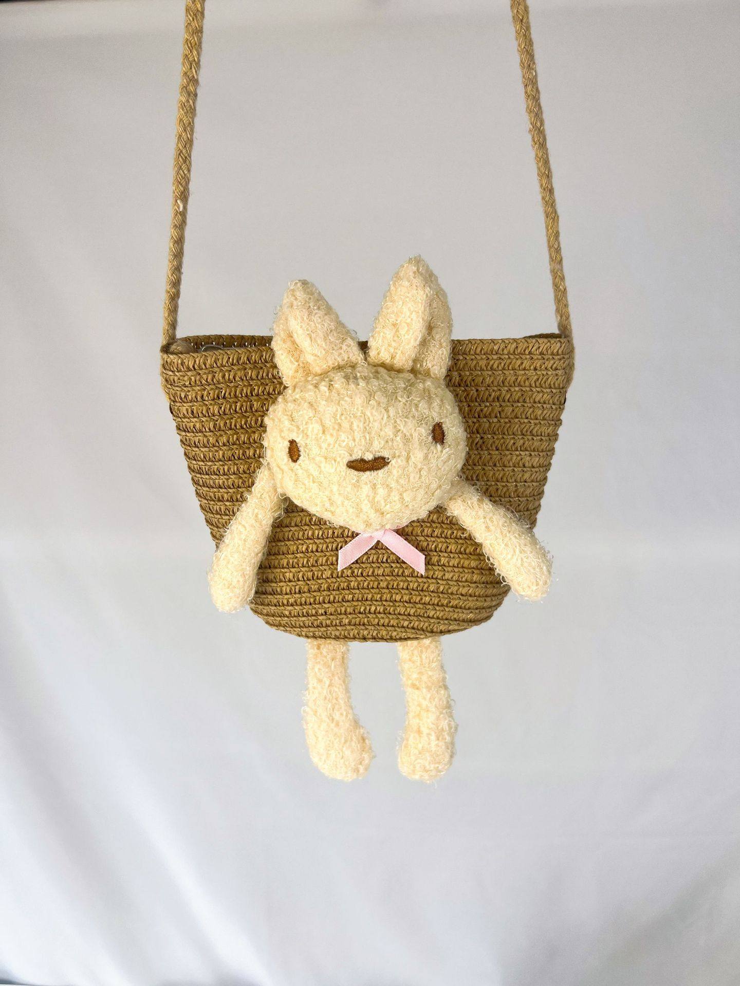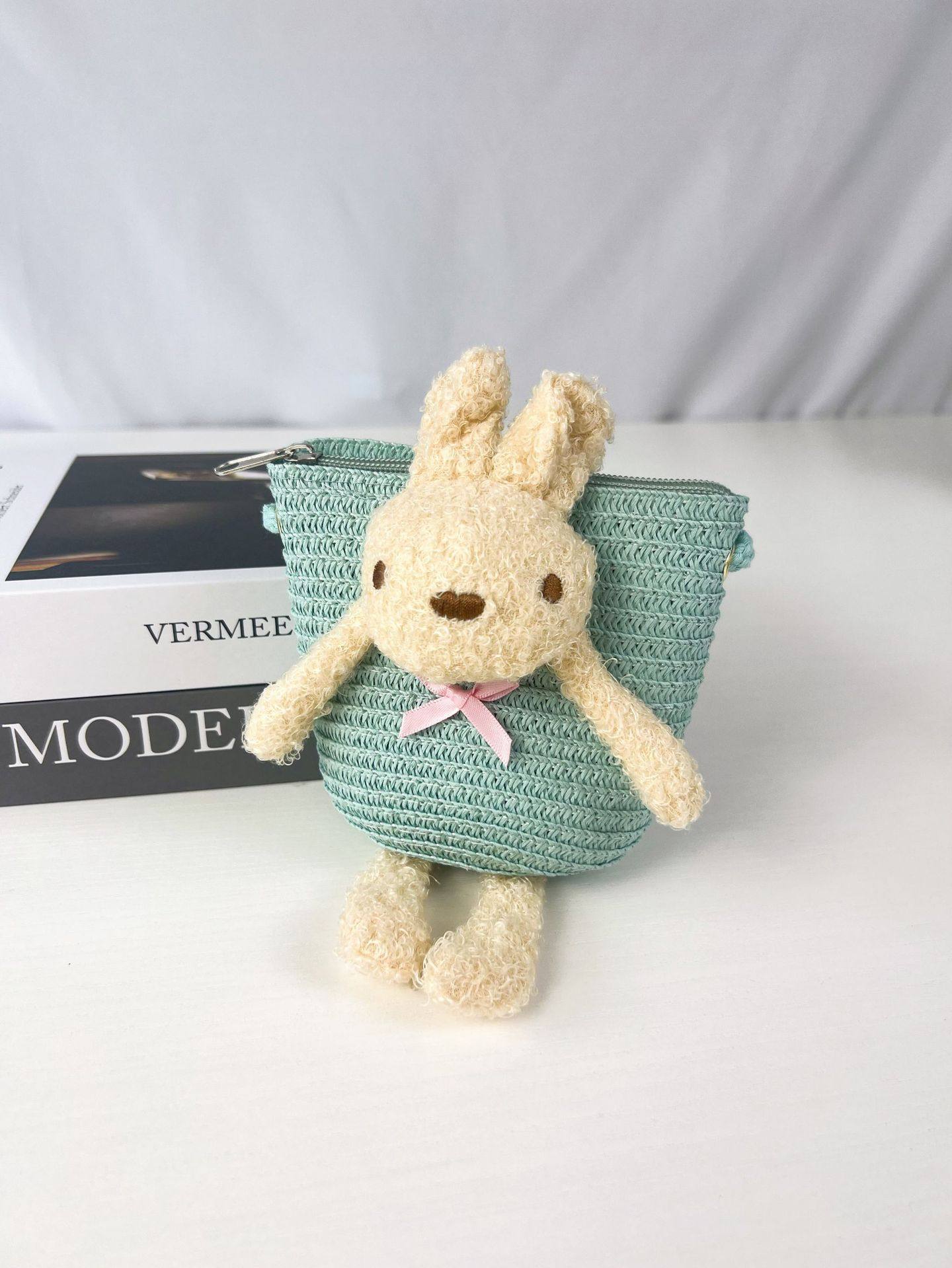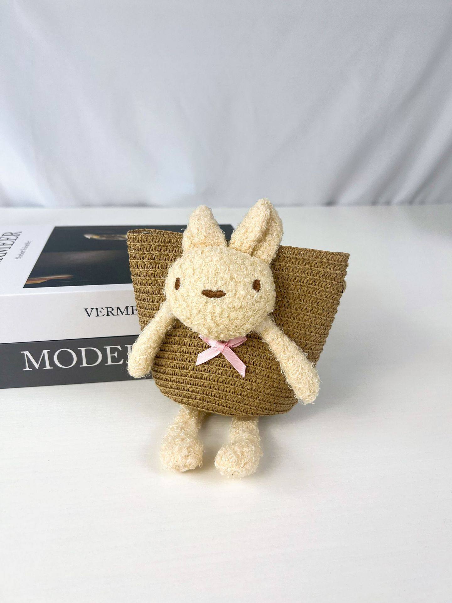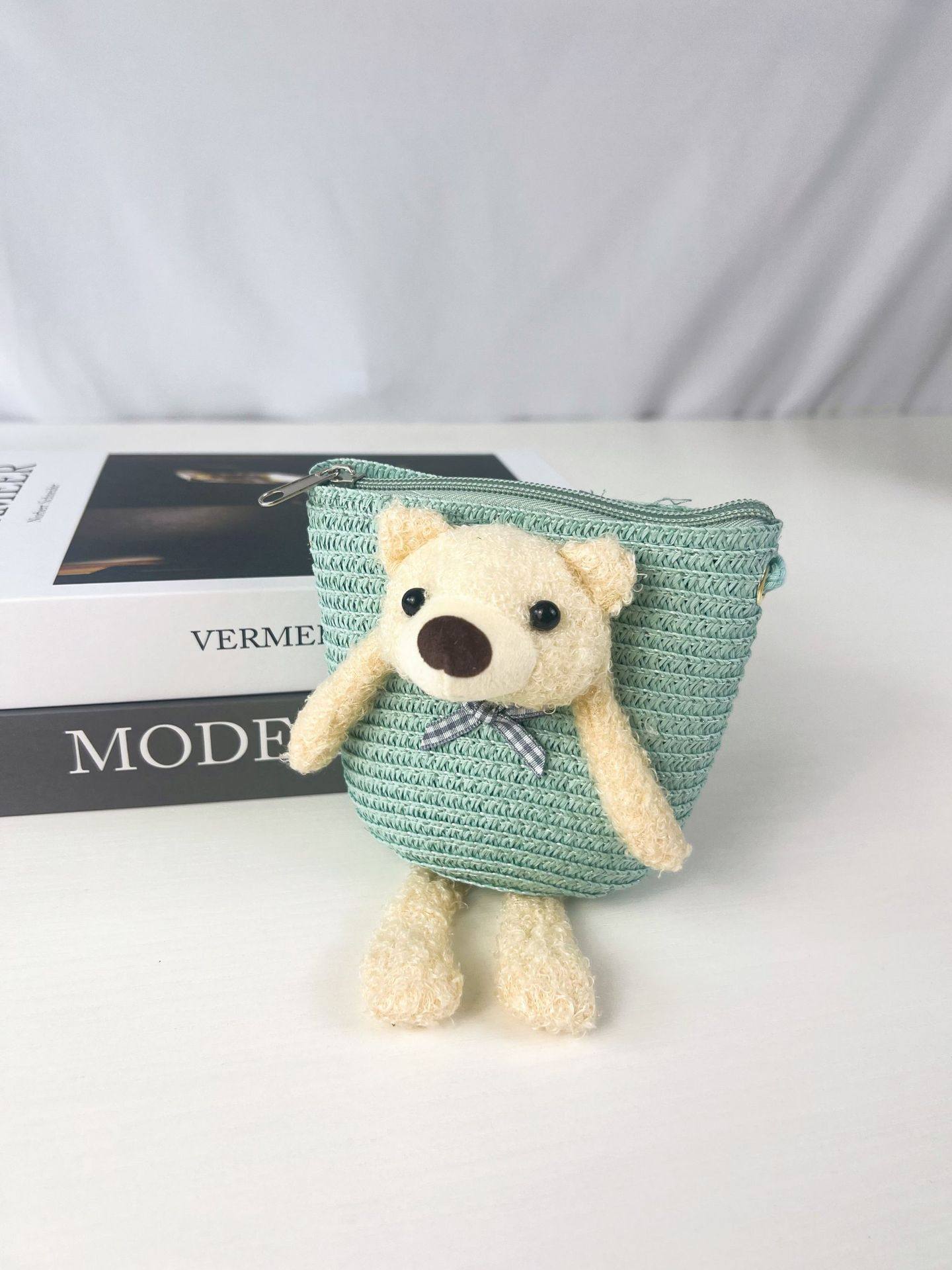 Baby Straw Bag, Kidsren's Versatile Summer New Cartoon Bear Diagonal Coin Purse, Beach Bag Storage