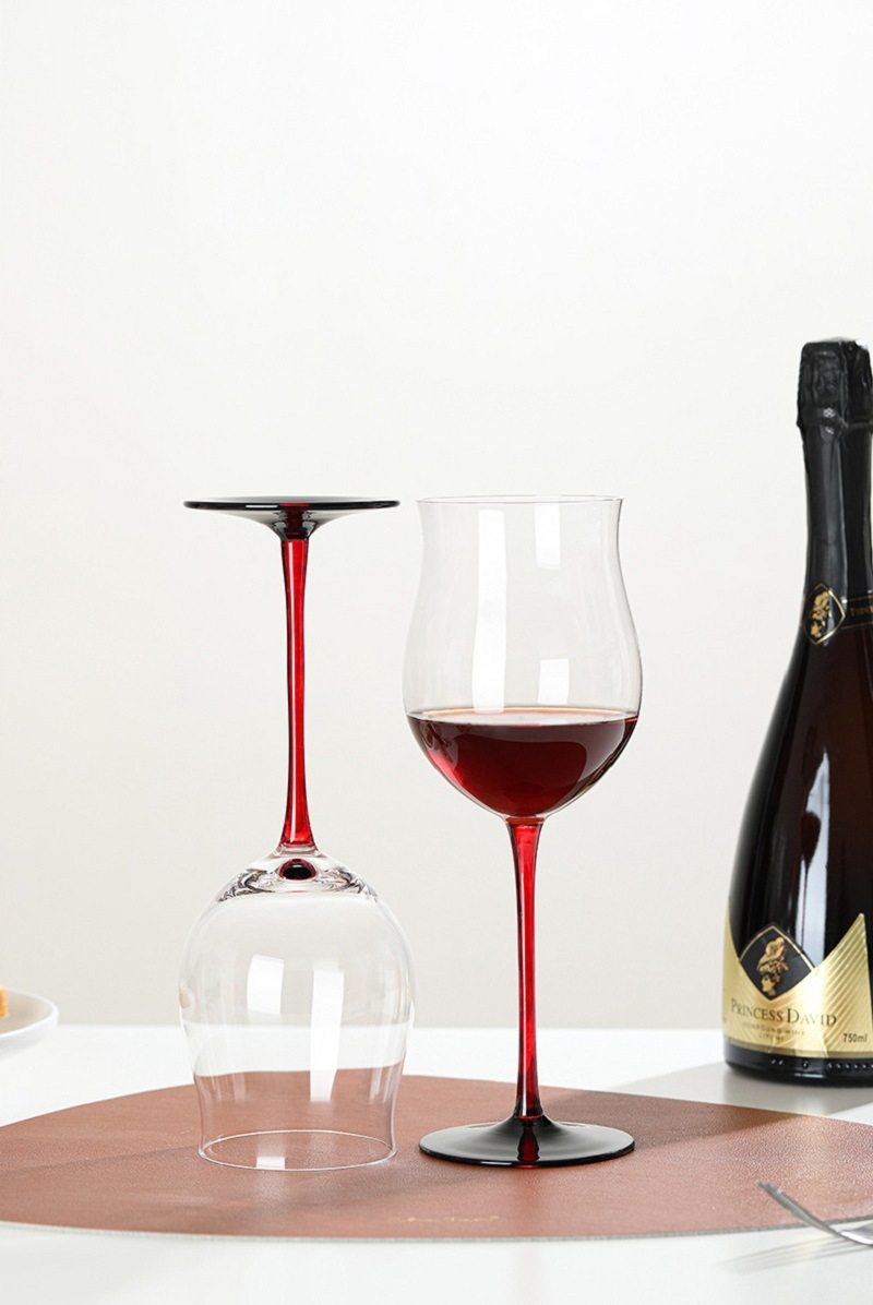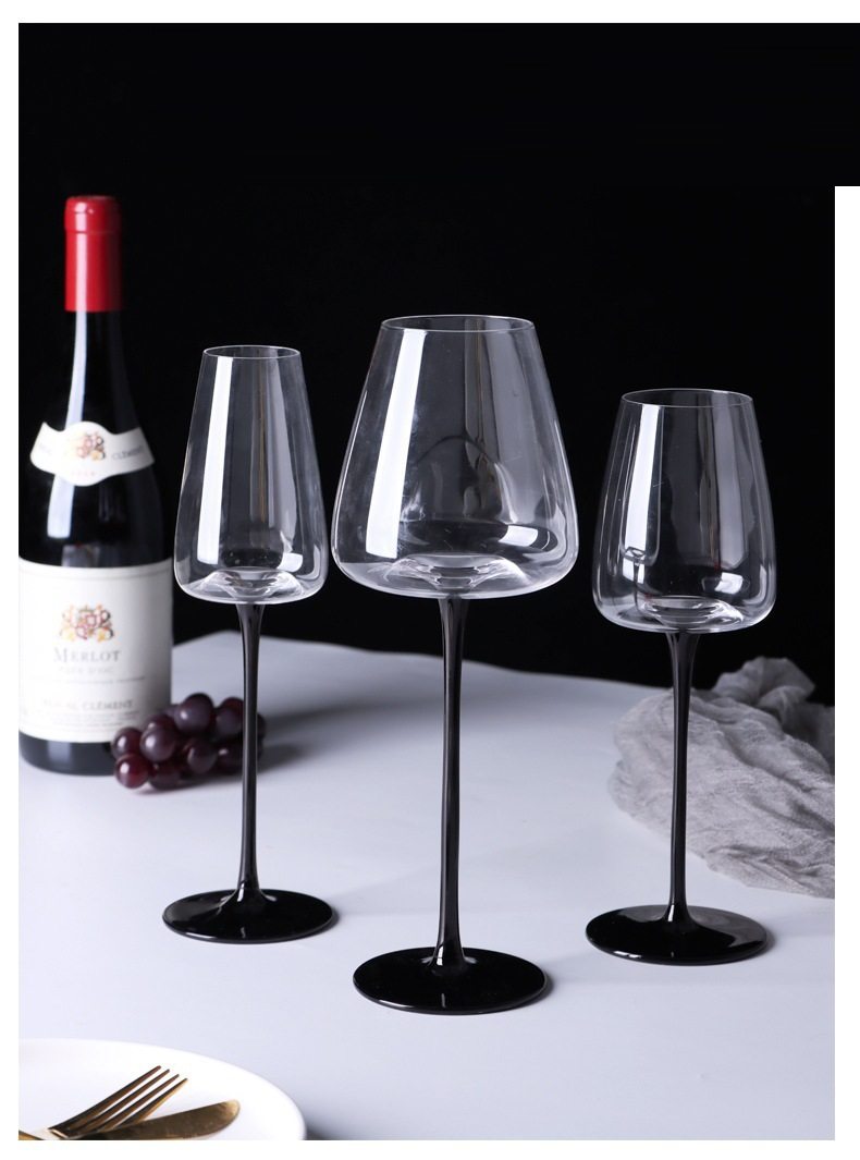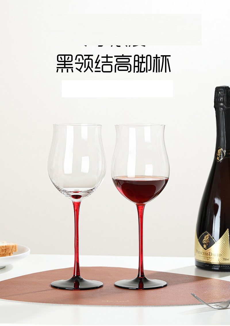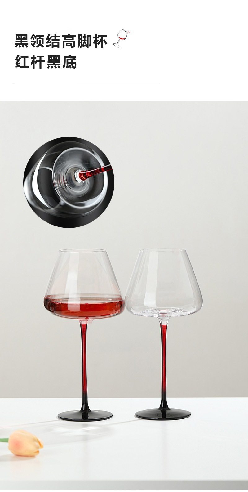 Black Bow Tie Crystal Glass Red Wine Glass with Black Base, Liquor Glass with Red Stem, Sake, Bordeaux Champagne Glass, Grape Tall Glass