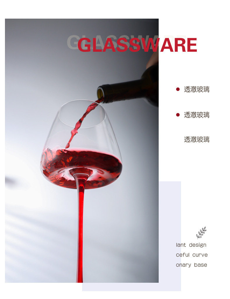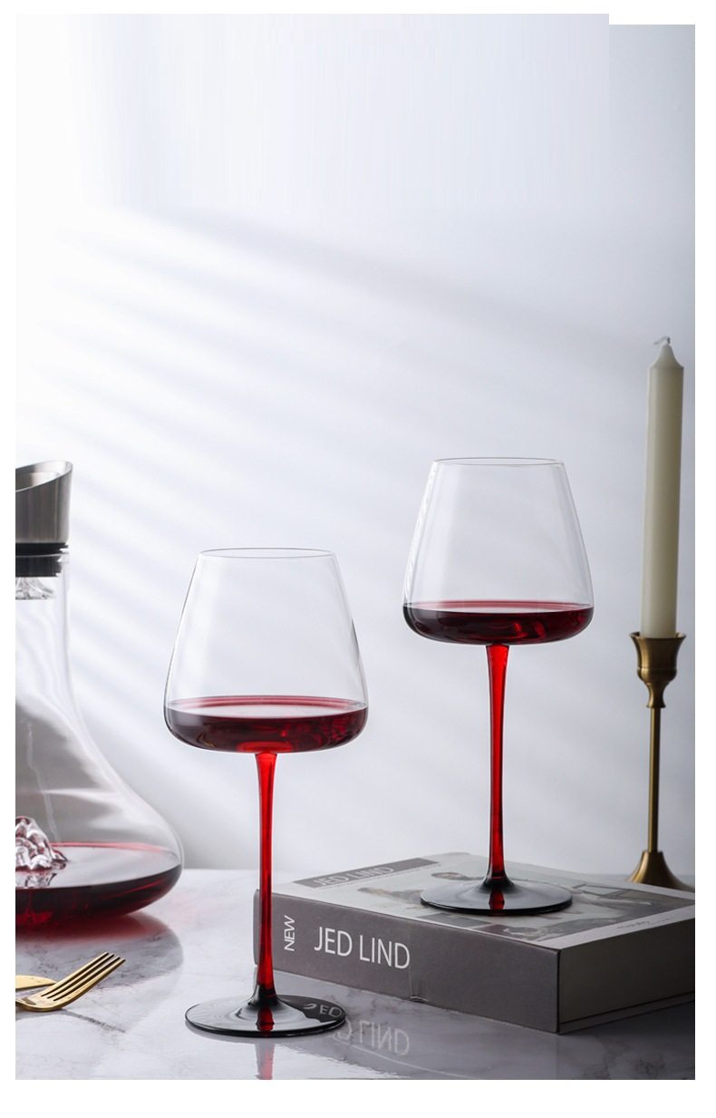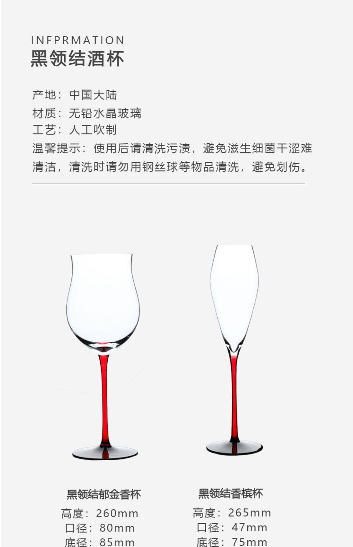 Black Bow Tie Crystal Glass Red Wine Glass with Black Base, Liquor Glass with Red Stem, Sake, Bordeaux Champagne Glass, Grape Tall Glass