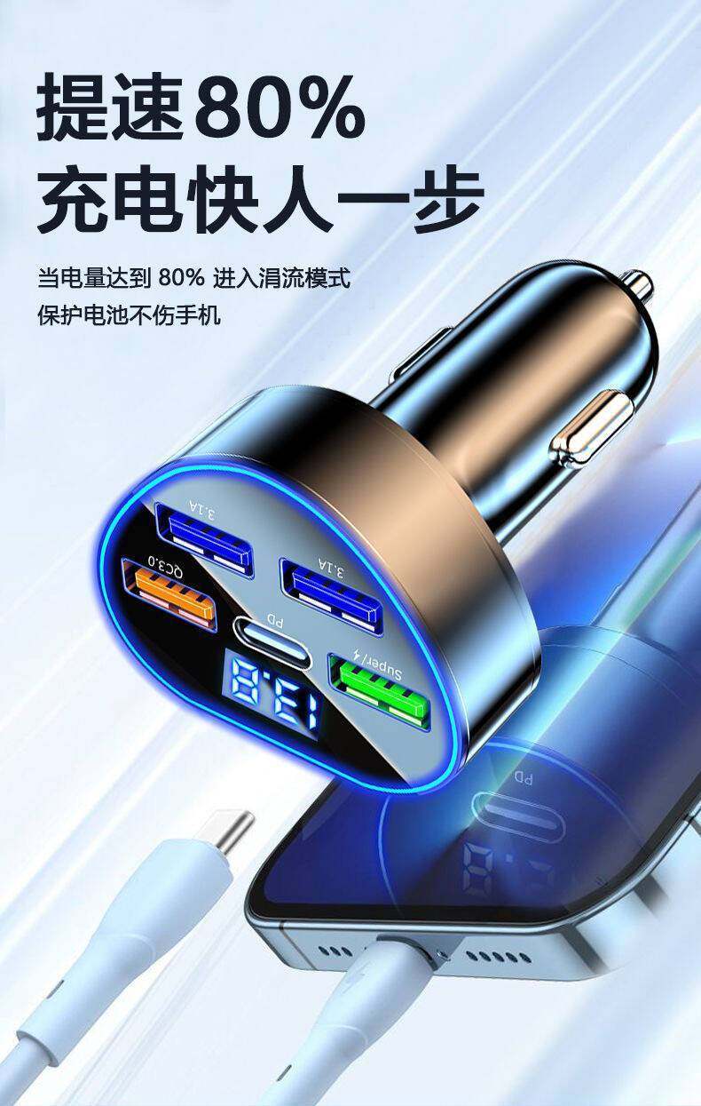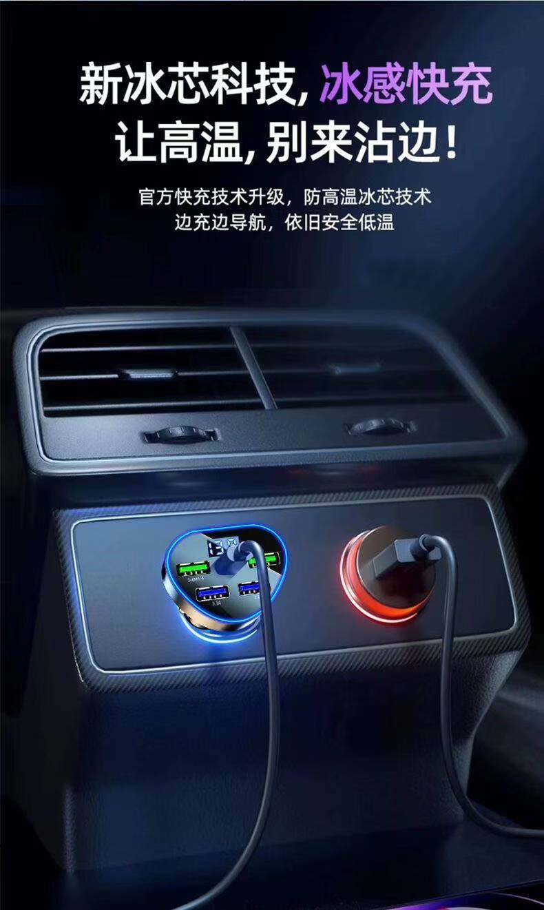Car charger double fast charging belt line 120W high-power cigarette lighter adapter plug USB super fast charging flash charging