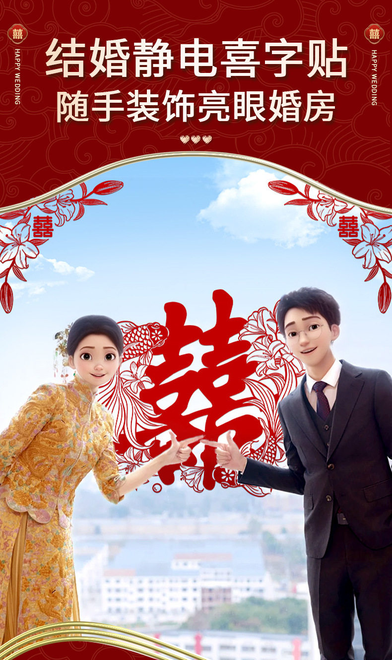 Wedding Special Large Happy Character Electrostatic Sticker Wedding Room Arrangement Living Room Bedroom Window Window Glass Flat Character Sticker Wedding