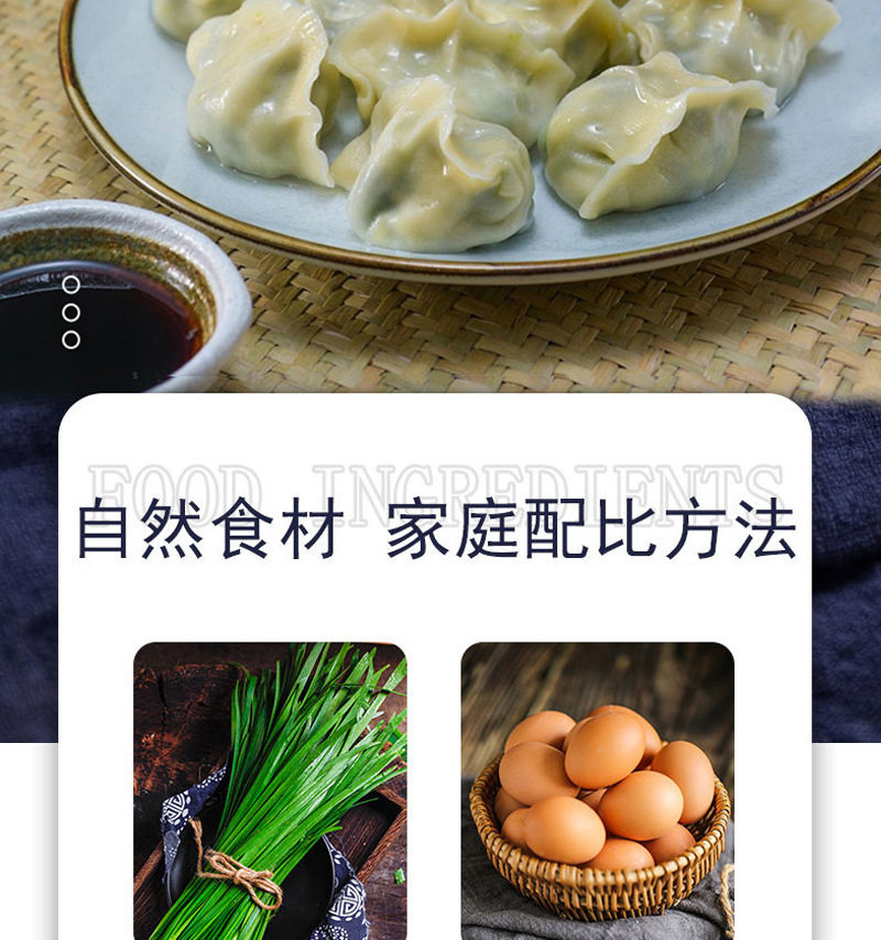 | Packaging specifications | Chive and egg,Chinese cabbage and eggs |