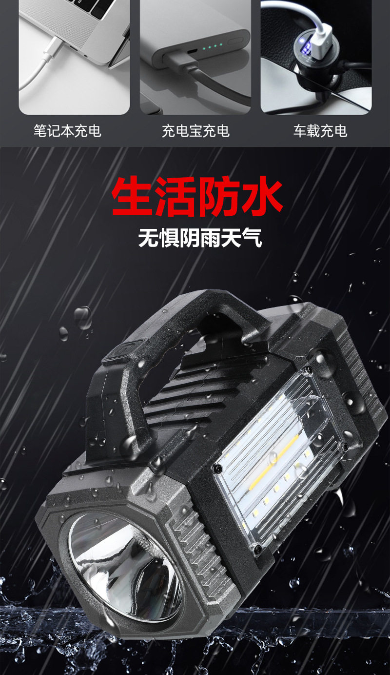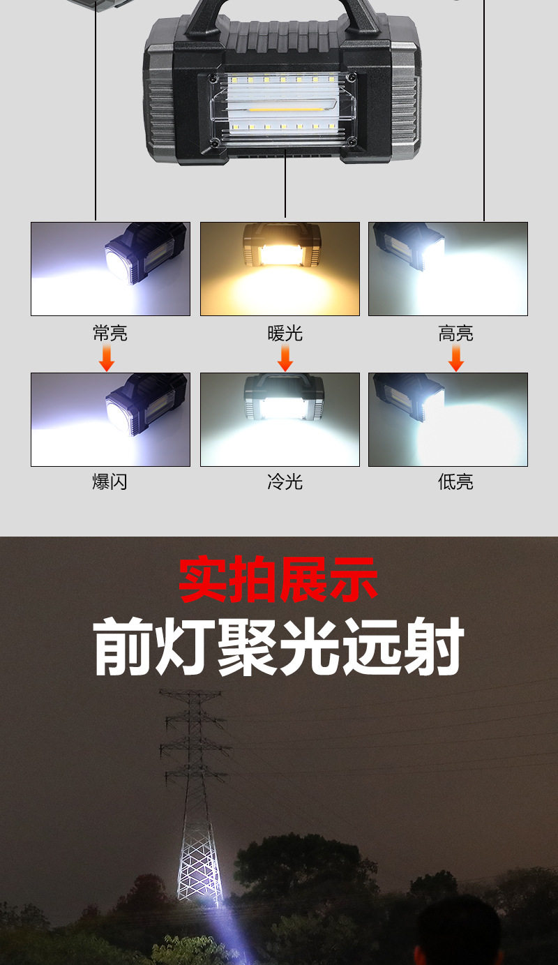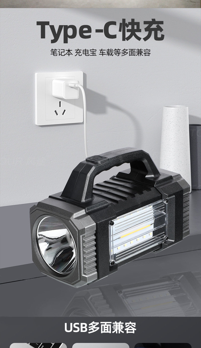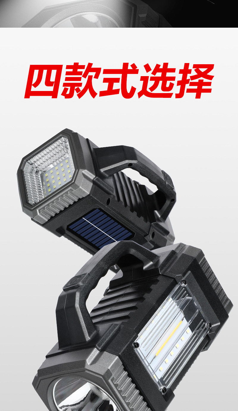 Cross-Border Solar Portable Lamp Multi-Function Three-Light Source Work Lamp Outdoor Long-Range Emergency Lighting Solar Flashlight