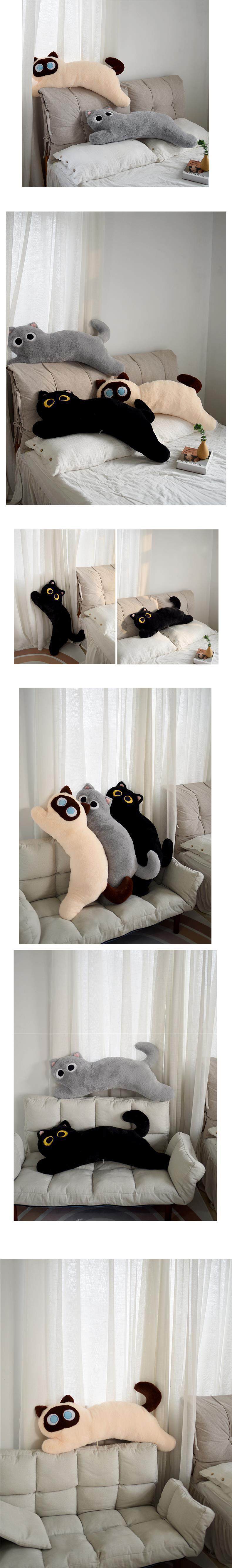 S Salamander Plush Black Cat Pillow Logic Cat Cute Bedside Long Pillow Dormitory Pillow Sleeping Leg Pillow