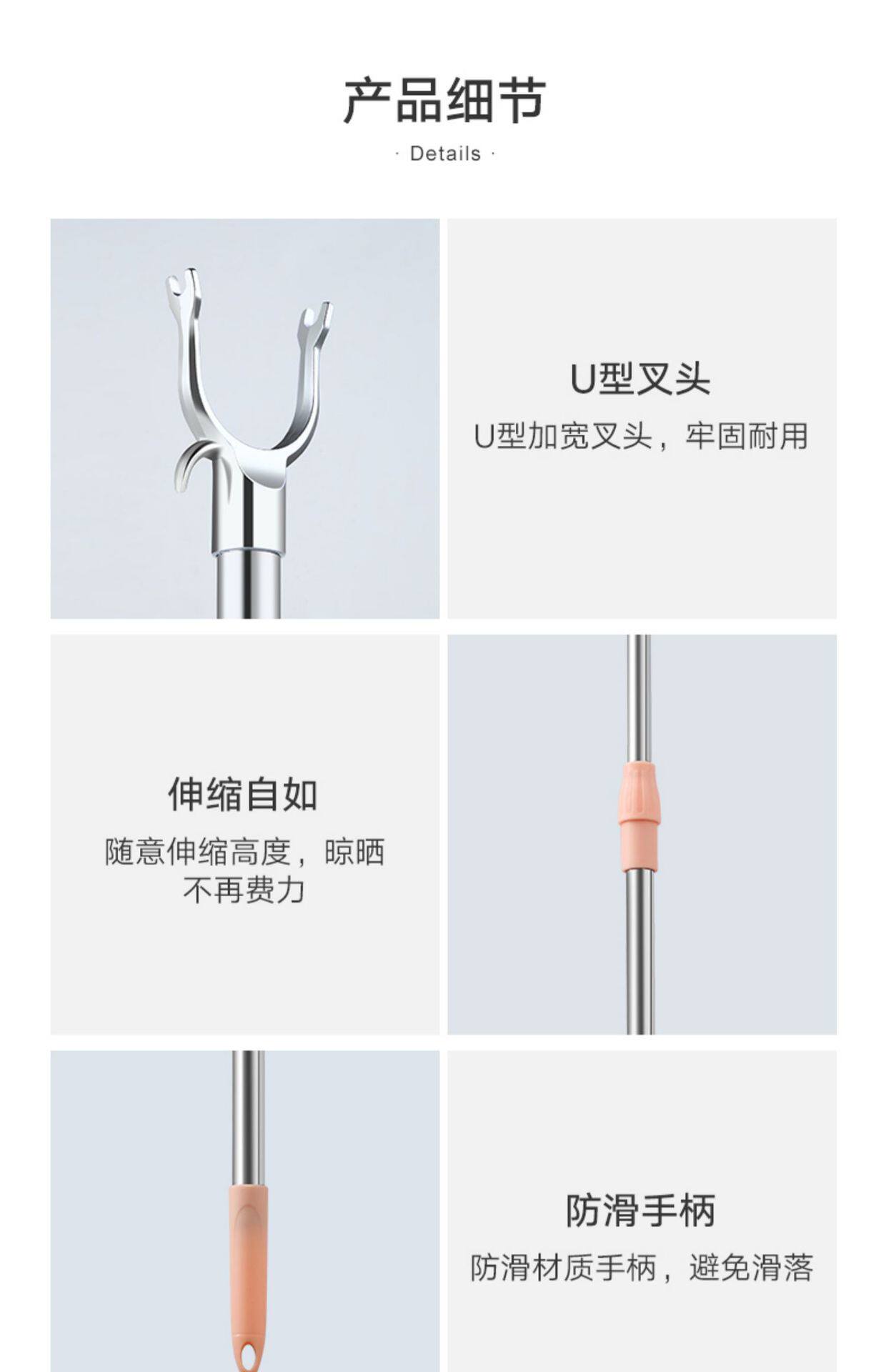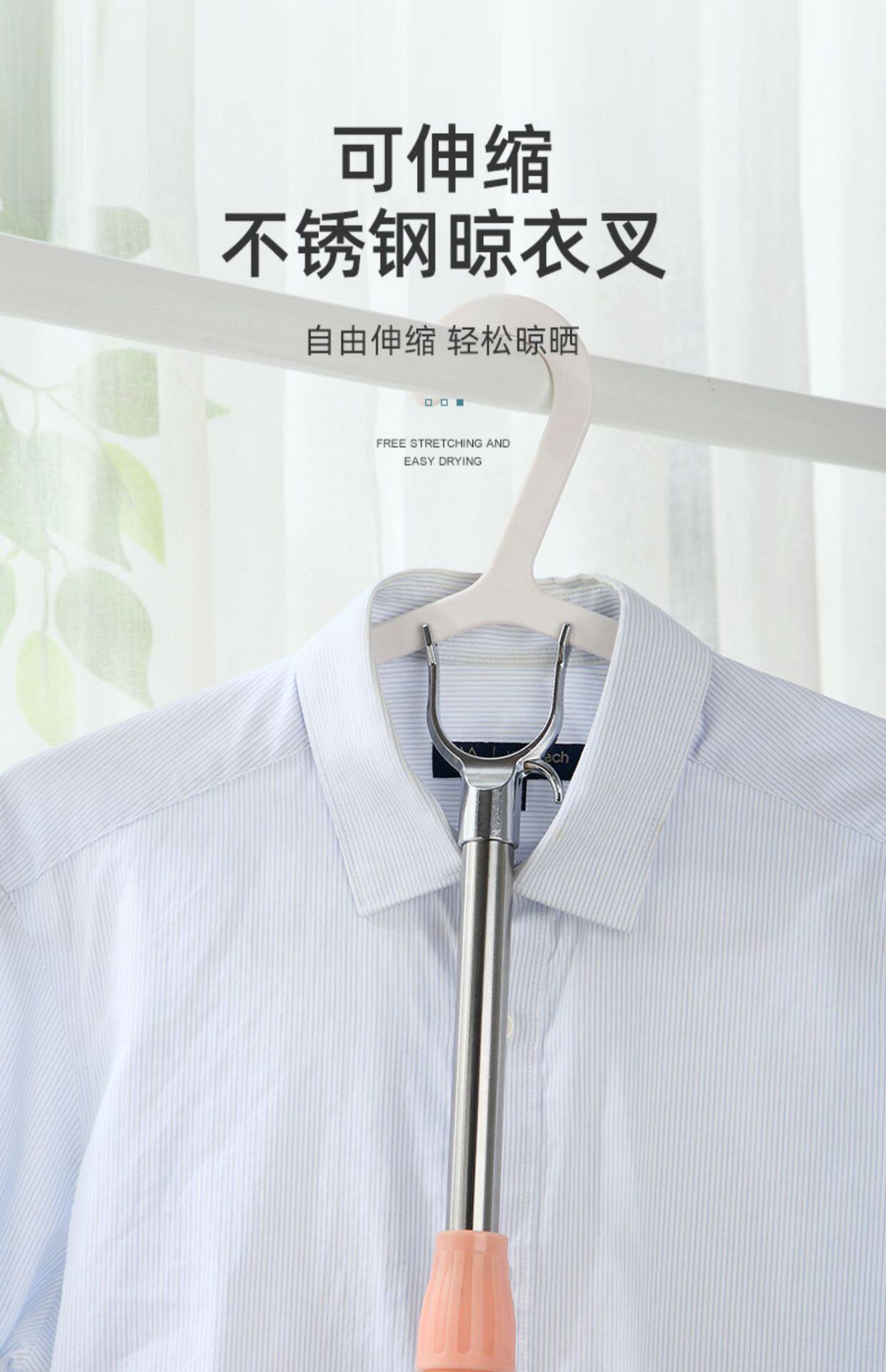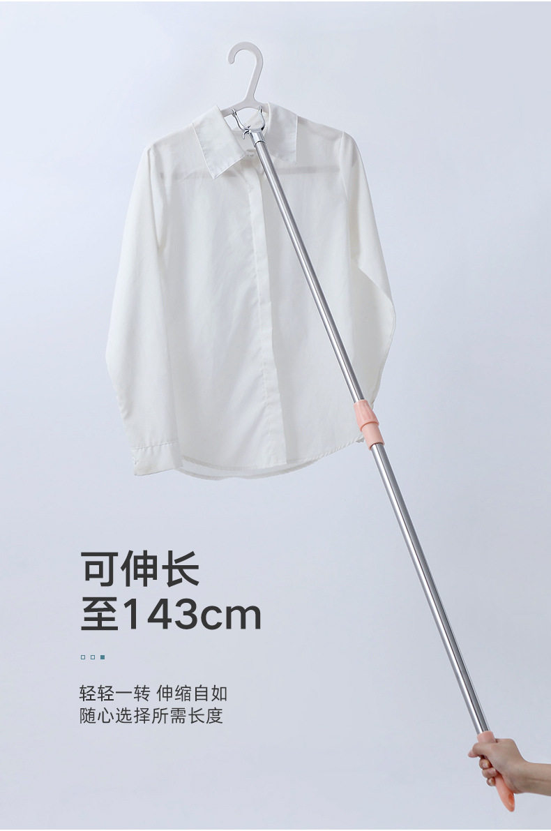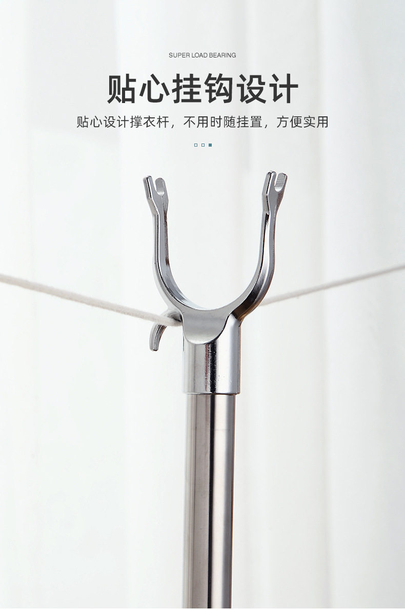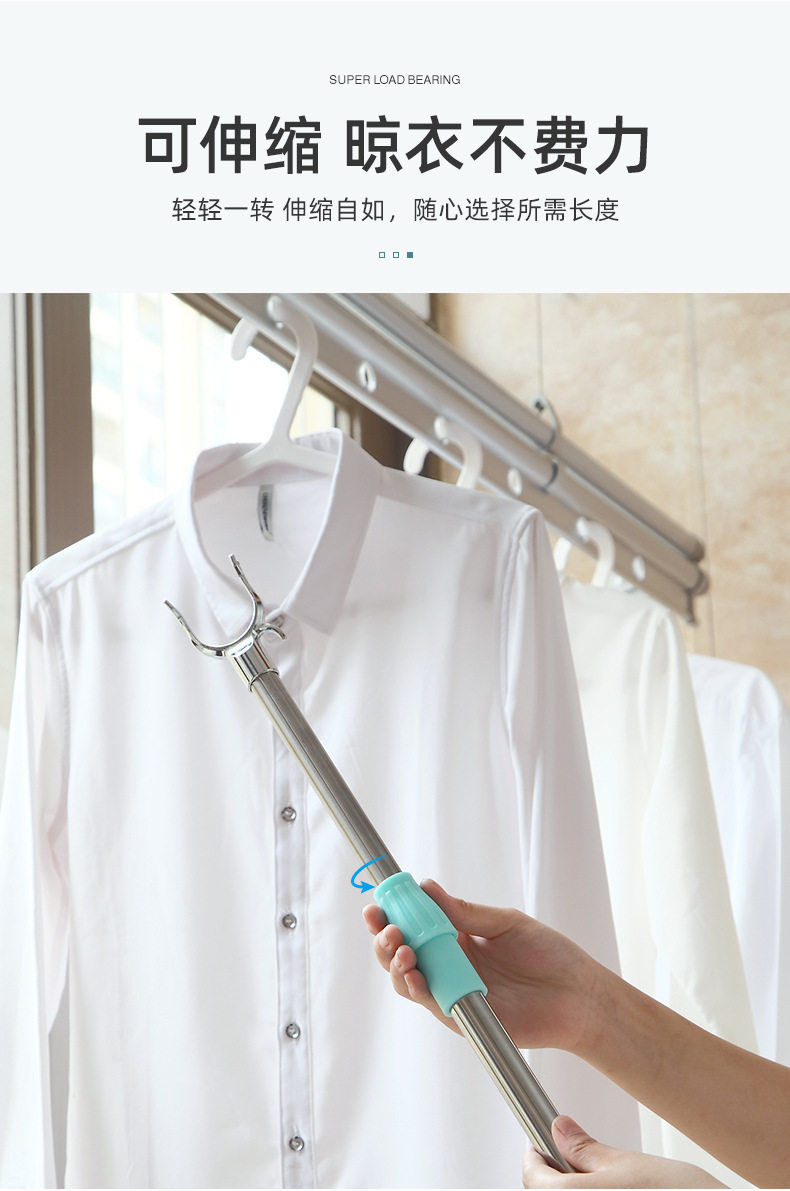 Stainless Steel Clothes Drying Pole Single Pole Household Cool Clothes Hanging Artifact Window Pipe Clothes Pole Telescopic Clothes Fork Clothes Drying Pole