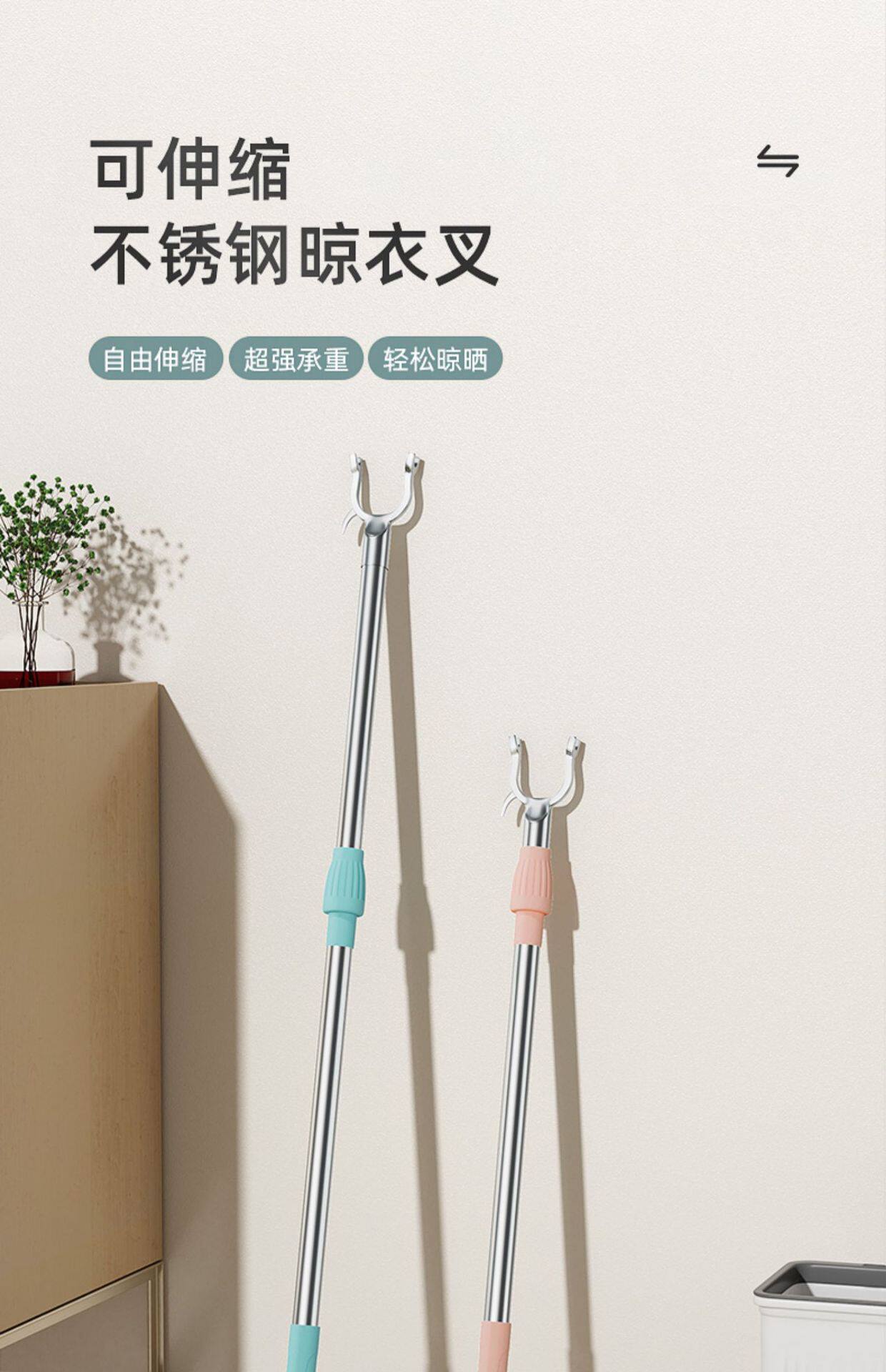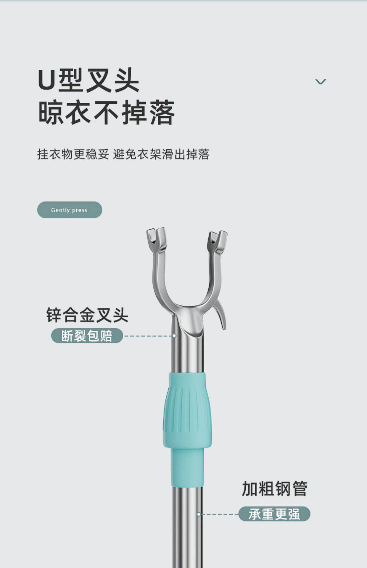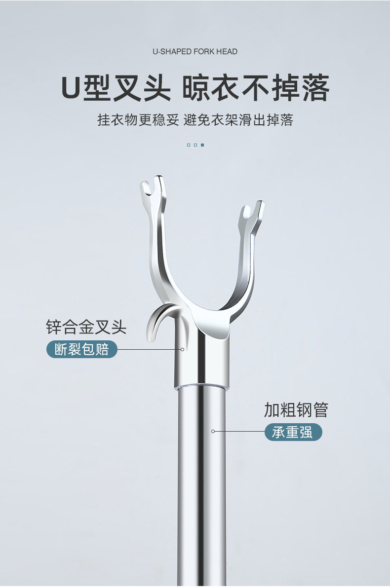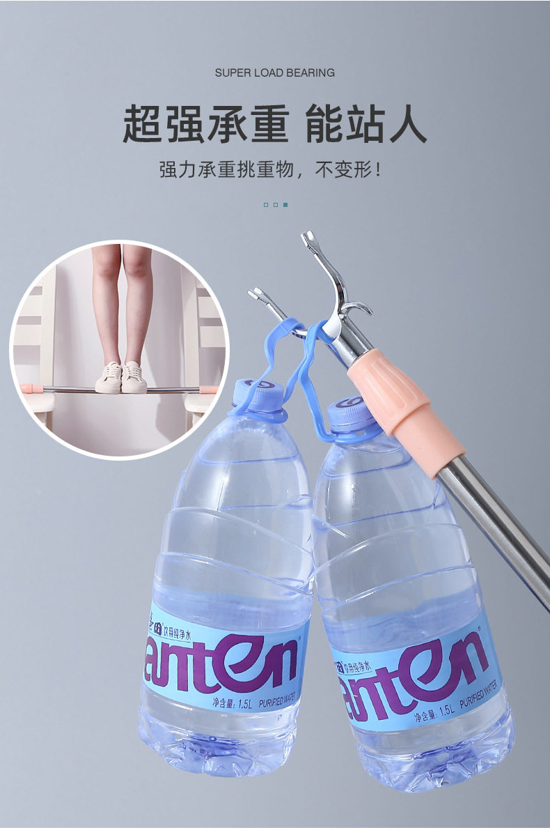 Stainless Steel Clothes Drying Pole Single Pole Household Cool Clothes Hanging Artifact Window Pipe Clothes Pole Telescopic Clothes Fork Clothes Drying Pole