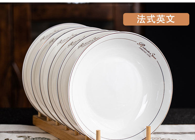 Plate Jingdezhen Ceramic Tableware Plate Household Dish Plate 8inch Rice Plate Round Plate Deep Plate Ceramic Dinner Plate Saucer