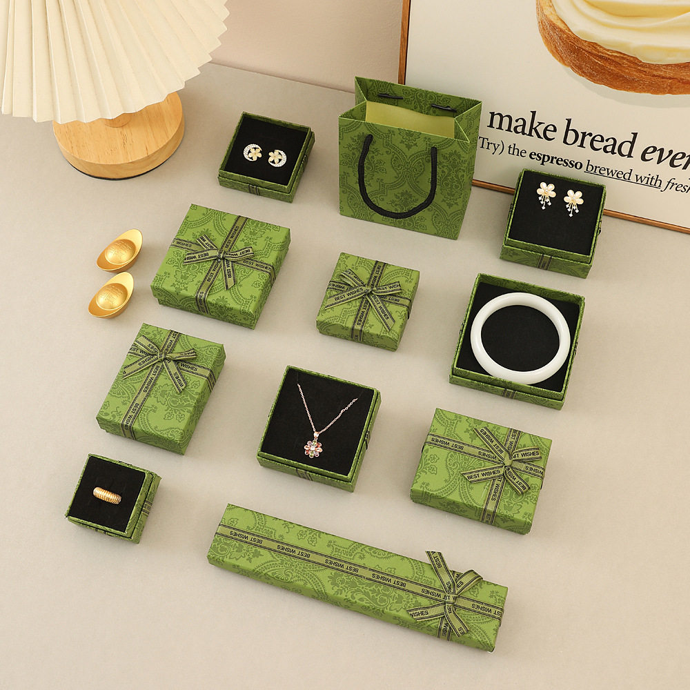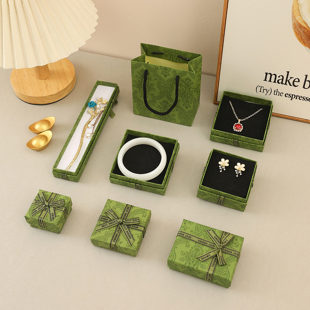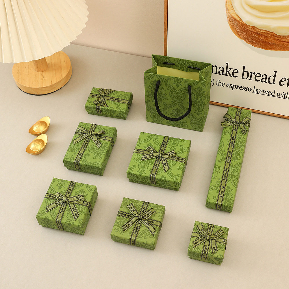 Retro Green Bow Jewelry Box Creative Heaven and Earth Cover Jewelry Necklace Holiday Gift Gift Packaging Box