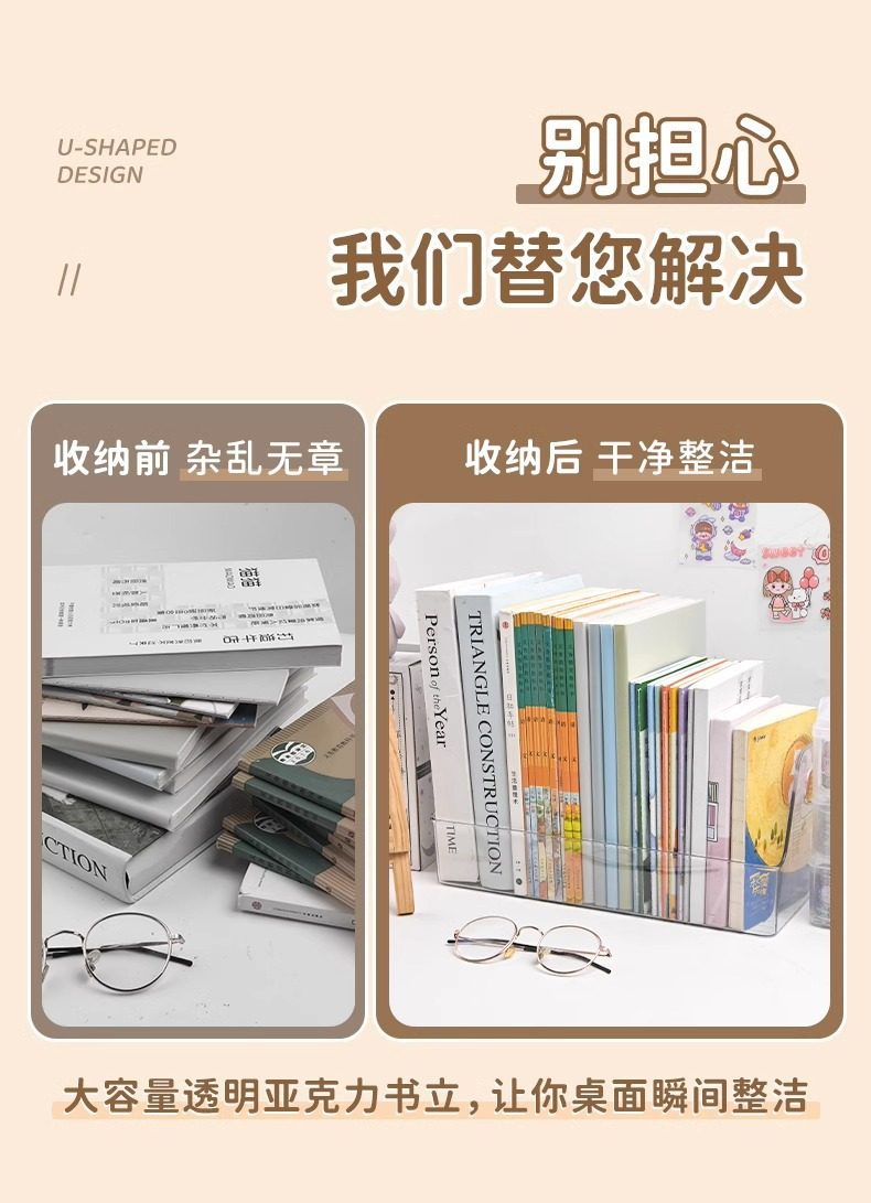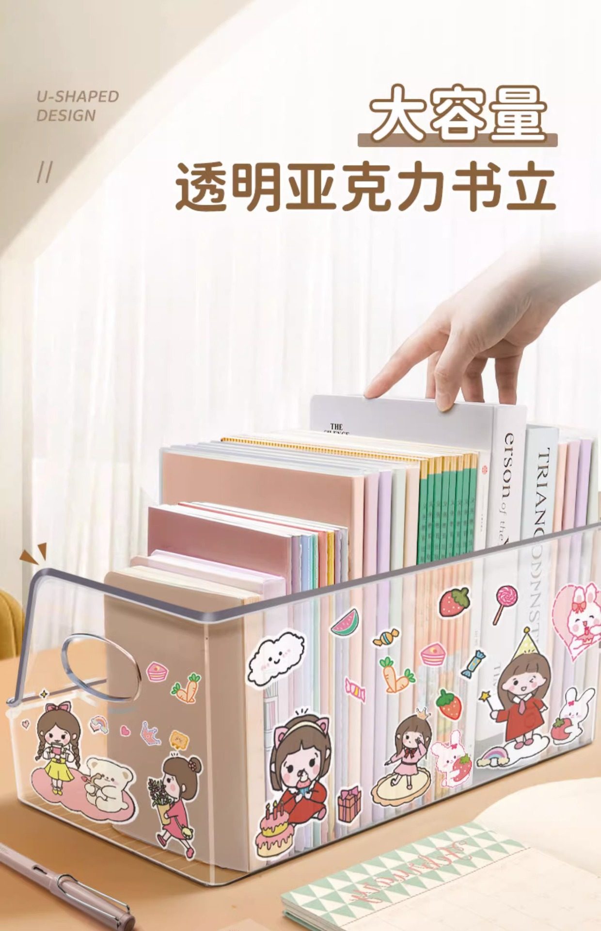 Acrylic Transparent Bookshelf Large Capacity Thickened Book Stand Desktop Book Storage Box Reading Reading Rack for Primary School Students