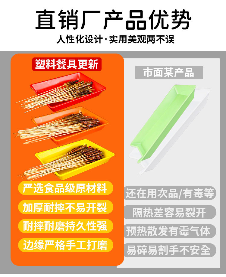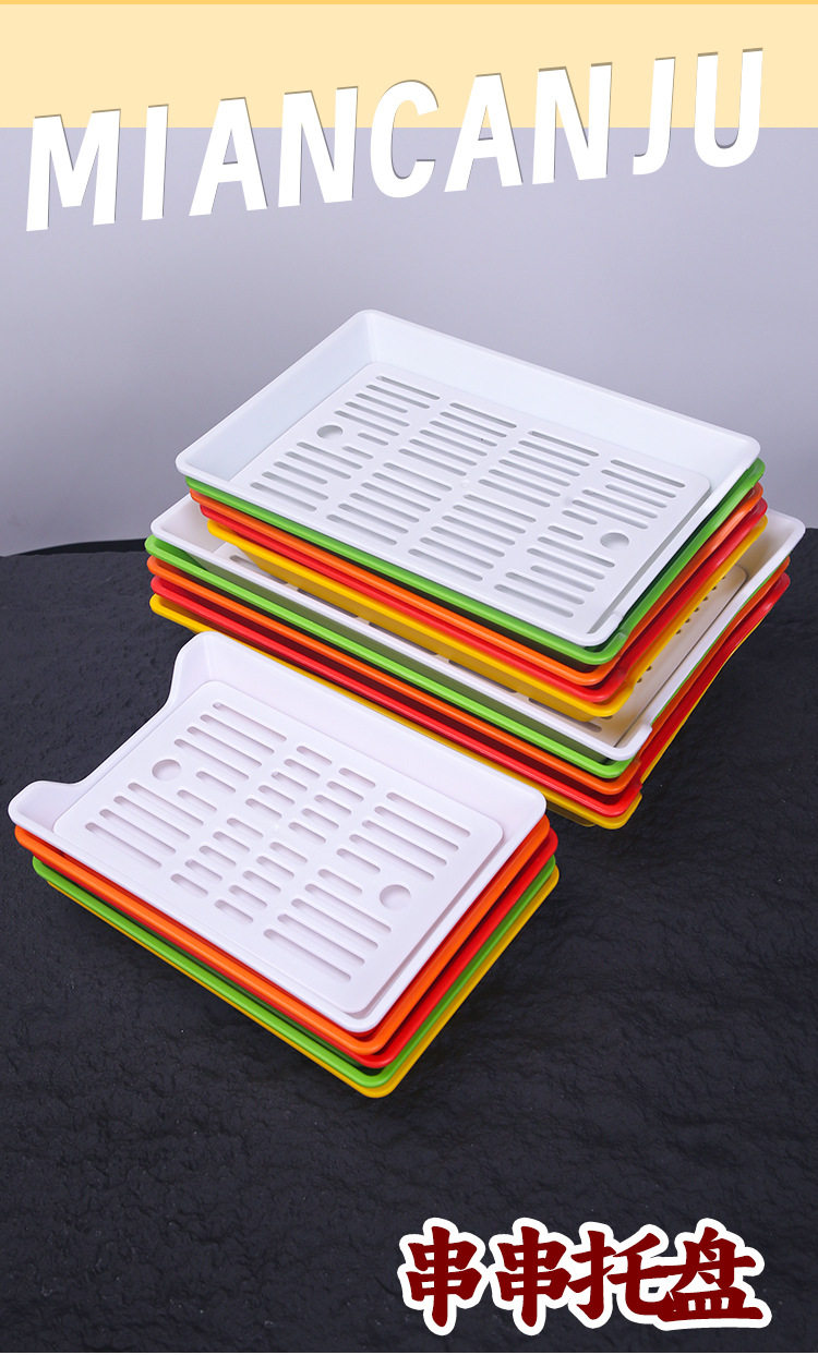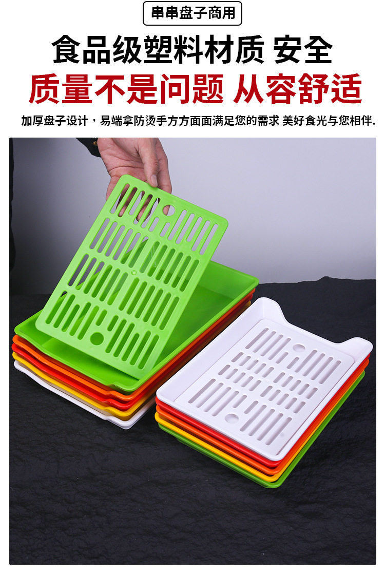Commercial Rectangular Plastic Barbecue Pan Fried Skewers with Grid Drain Plate Skewers Plate Display Plate Tray
