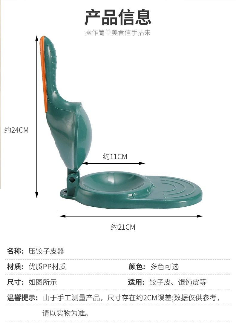 | Specification | Upgraded third generation green and orange♢♜,Upgraded third generation white pink♢♜,Green orange [piping press + dumpling maker 2-pack]♢♜,White pink [2 skin pressers + dumpling makers]♢♜,Green and orange [skin press + 2 dumpling makers + stuffing spoon]♢♜,White and pink [leather press + 2 dumpling makers + stuffing spoon] ♢ ♜ |