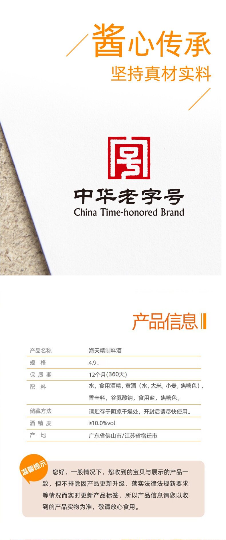 Haitian Premium Cooking Wine 4.9L Household Large Barrel Full Box Commercial Yellow Wine for Kitchen Stewing and Stir-Frying to Remove Fishy Odor and Enhance Flavor