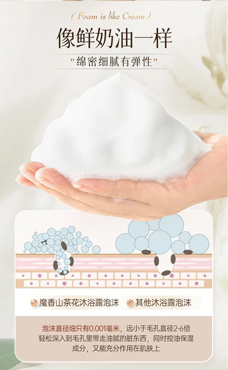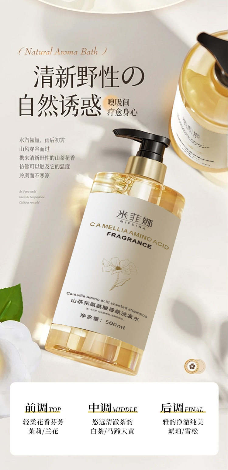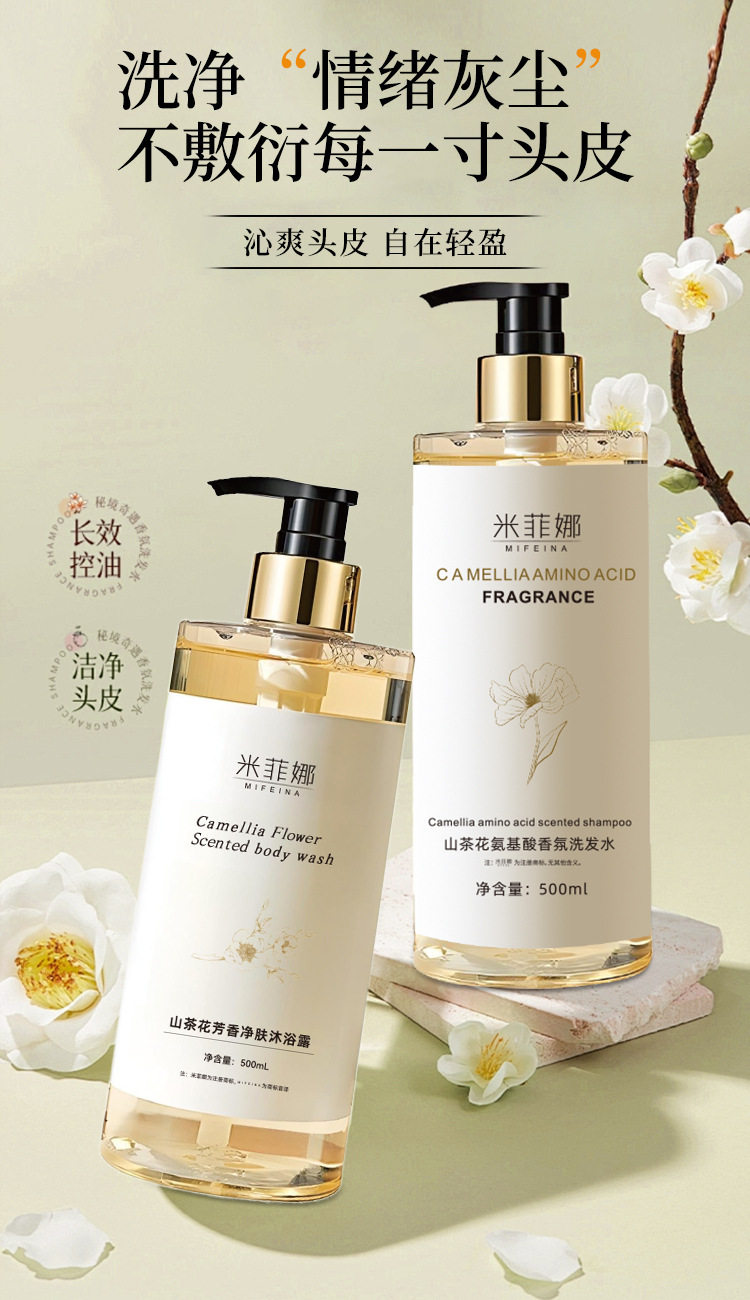 750ml Camellia Amino Acid Shower Gel Shampoo Fluffy Long-Lasting Fragrance Washable Shower Lotion Set