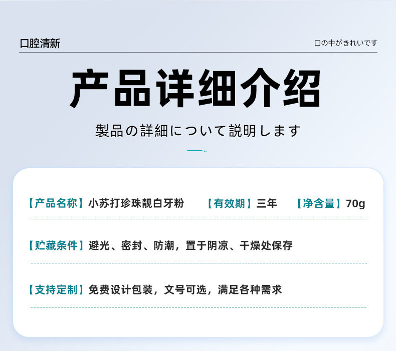 | Color classification | Baking soda tooth powder,Enzyme pearl tooth powder |