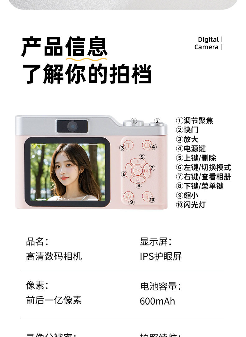 High-definition dual-camera CCD digital camera campus student party travel record life entry card machine