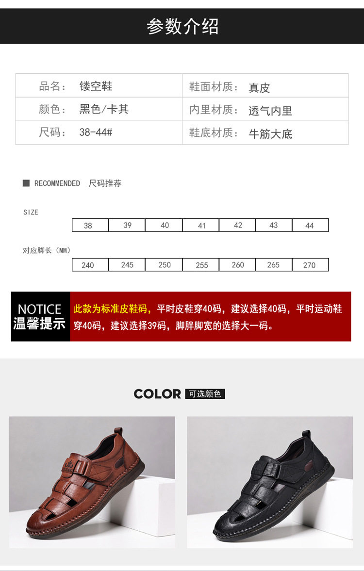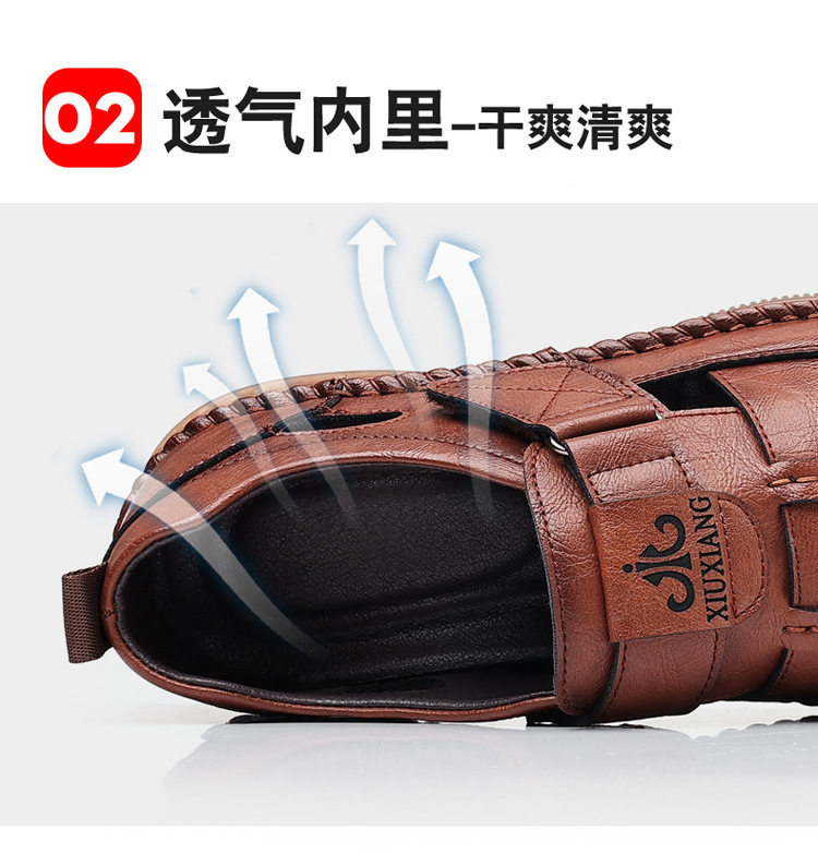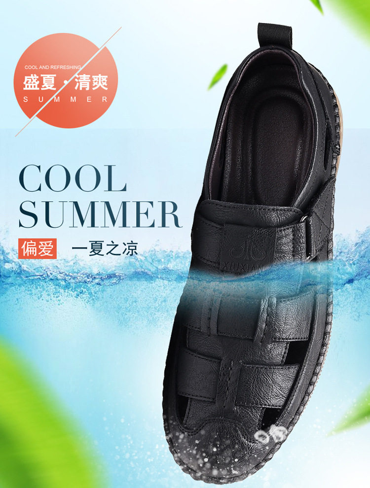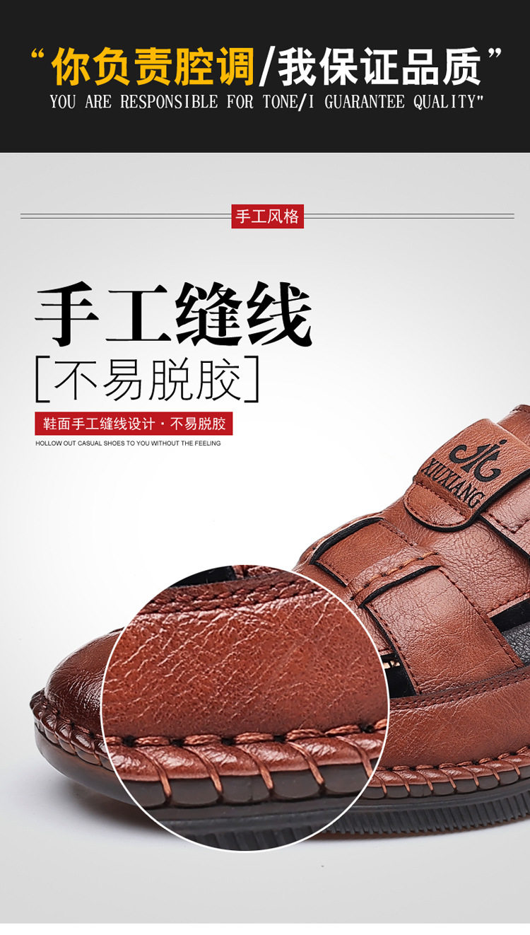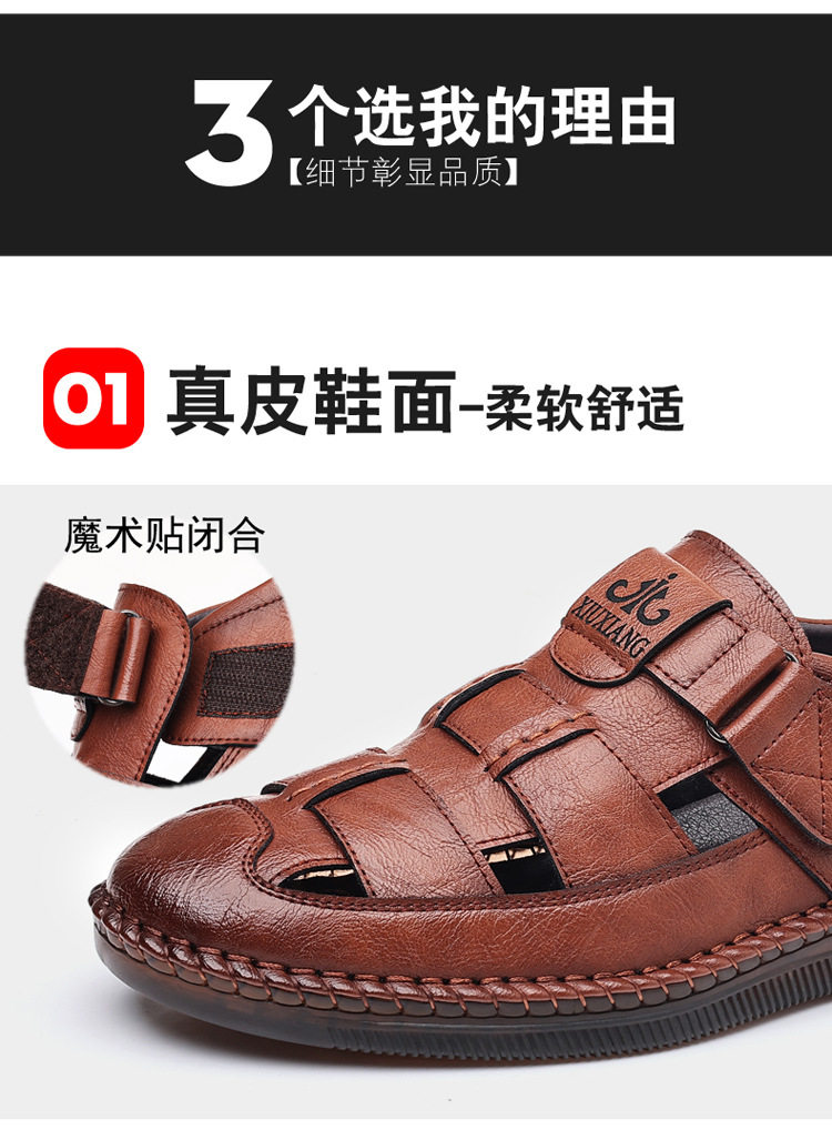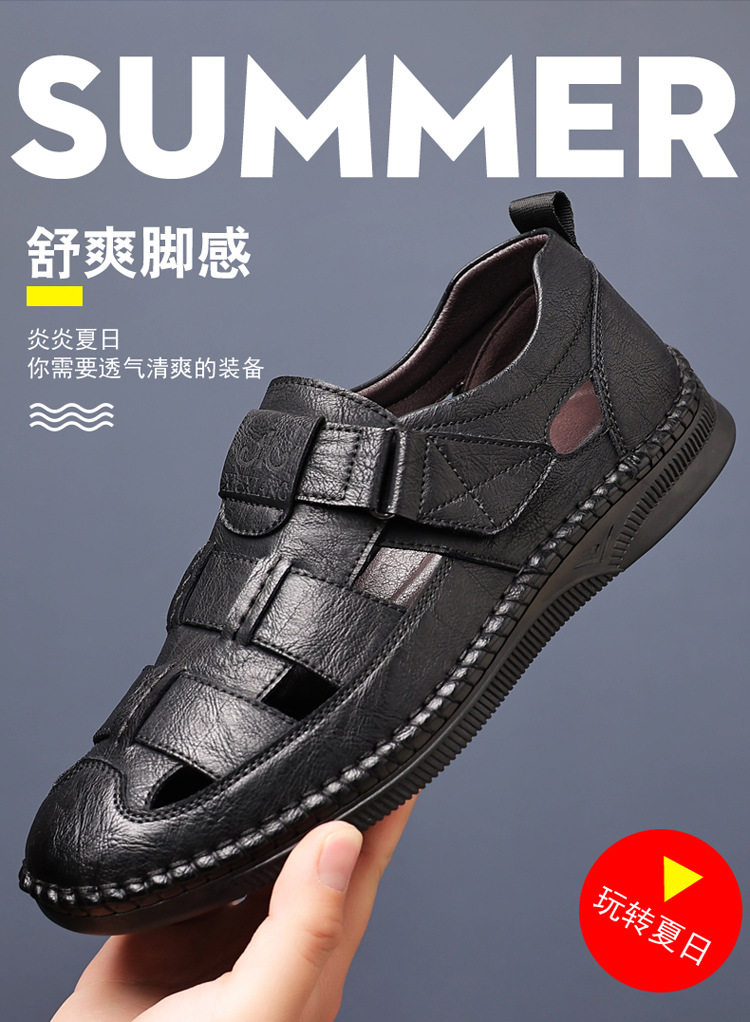Summer Genuine Leather Hollow Sandals Velcro Hole Shoes Breathable Casual Men's Shoes Soft Sole Dad's Sandals Men's plus size