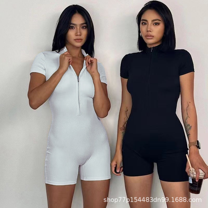 Cross-border Amazon Europe and America Summer Zipper Short-sleeved Yoga Suit Women's Dance Fitness Tight-fit Sports Suit