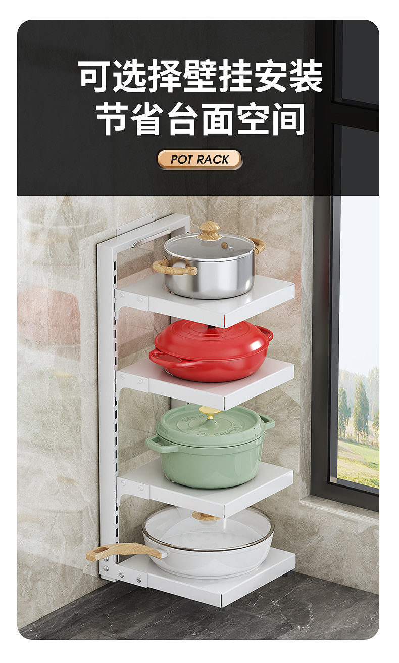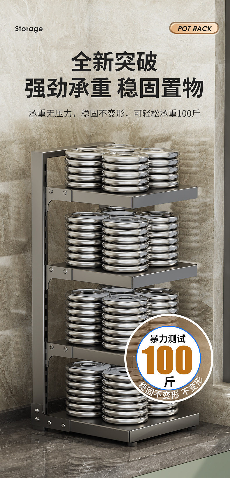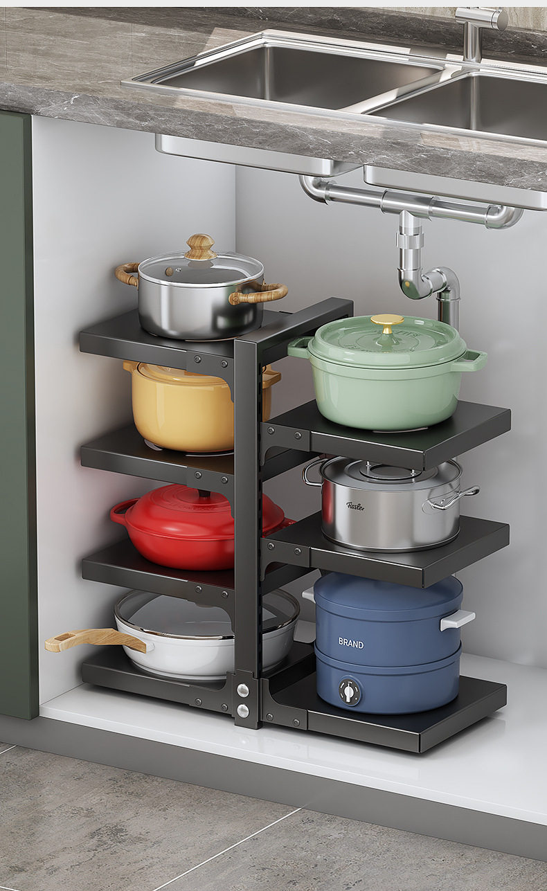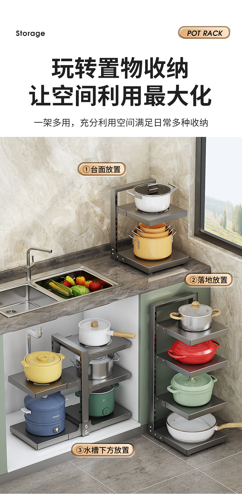 Cross-Border Floor-Standing Kitchen Multi-Functional Storage Rack Household Pots Multi-Layer Storage Rack under the Sink Layered Pot Rack