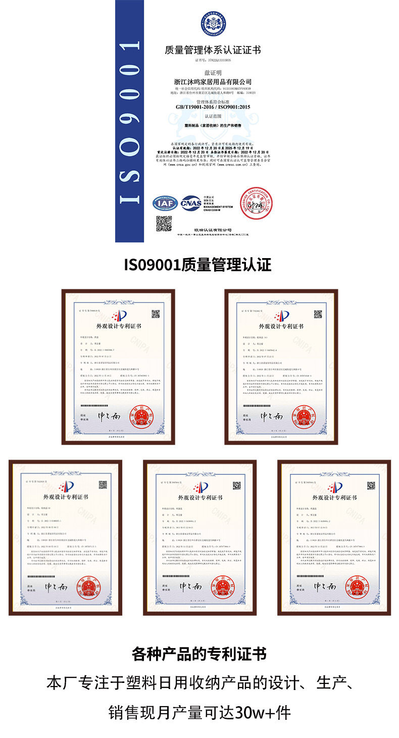 | Proportion of new plastic materials | 100% new material |
