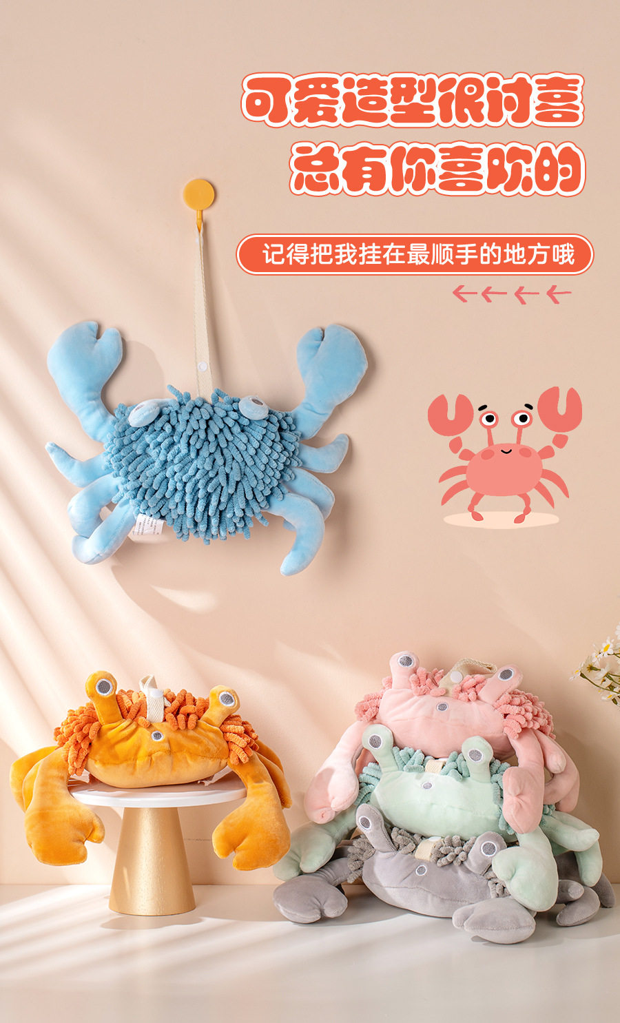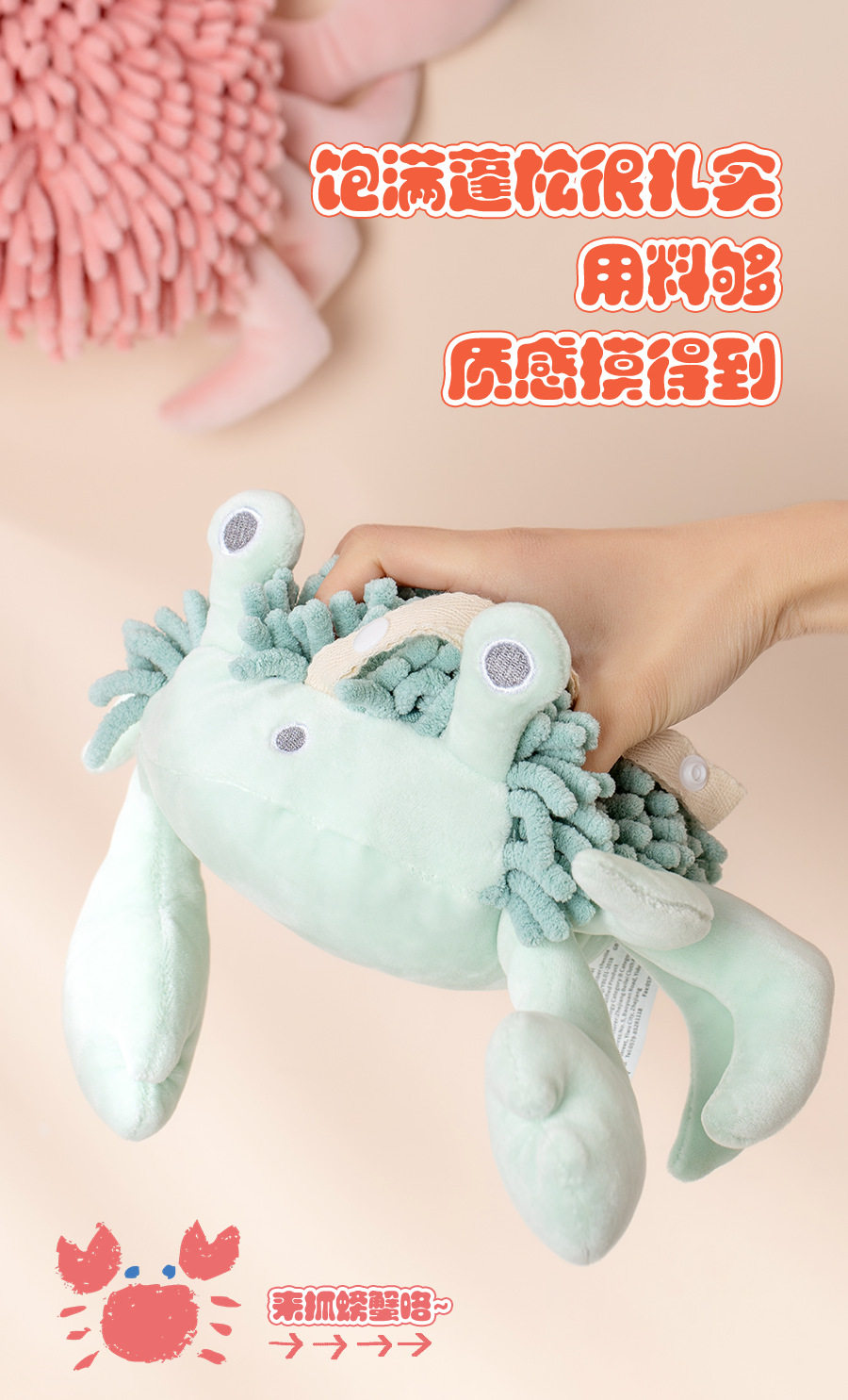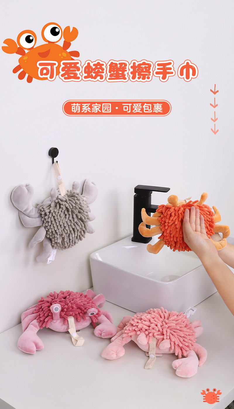 Cartoon Crab Chenille Hand Towel Doll Multifunctional Animal Creative Absorbent Hand Towel Plush Toy Wholesale