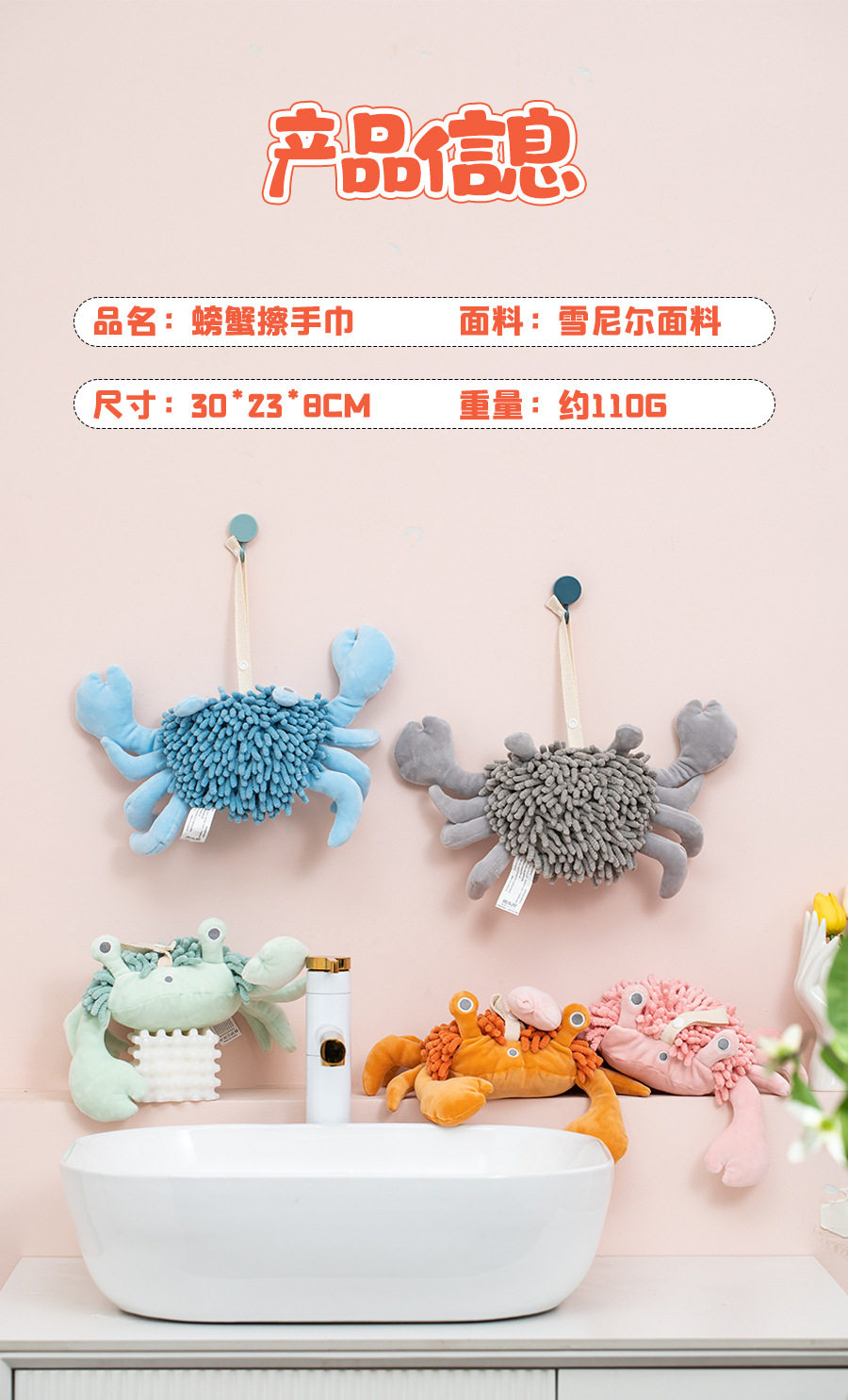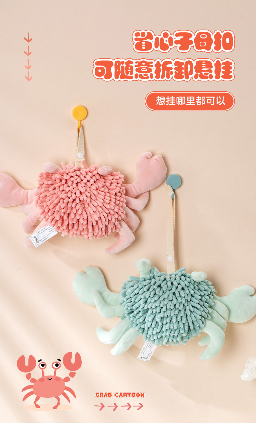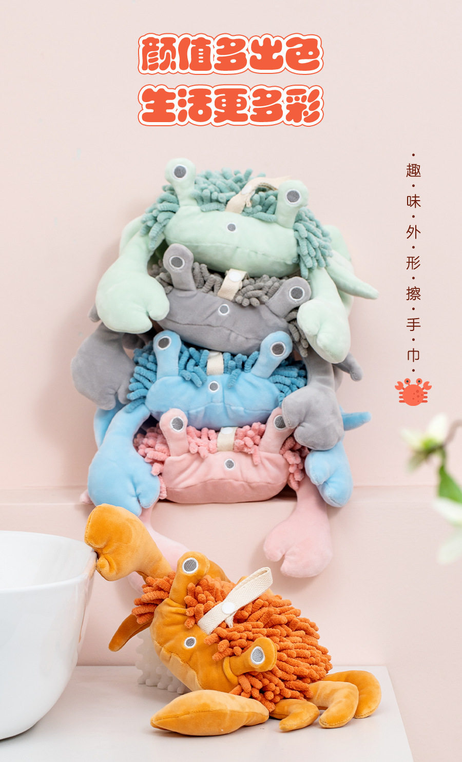 Cartoon Crab Chenille Hand Towel Doll Multifunctional Animal Creative Absorbent Hand Towel Plush Toy Wholesale