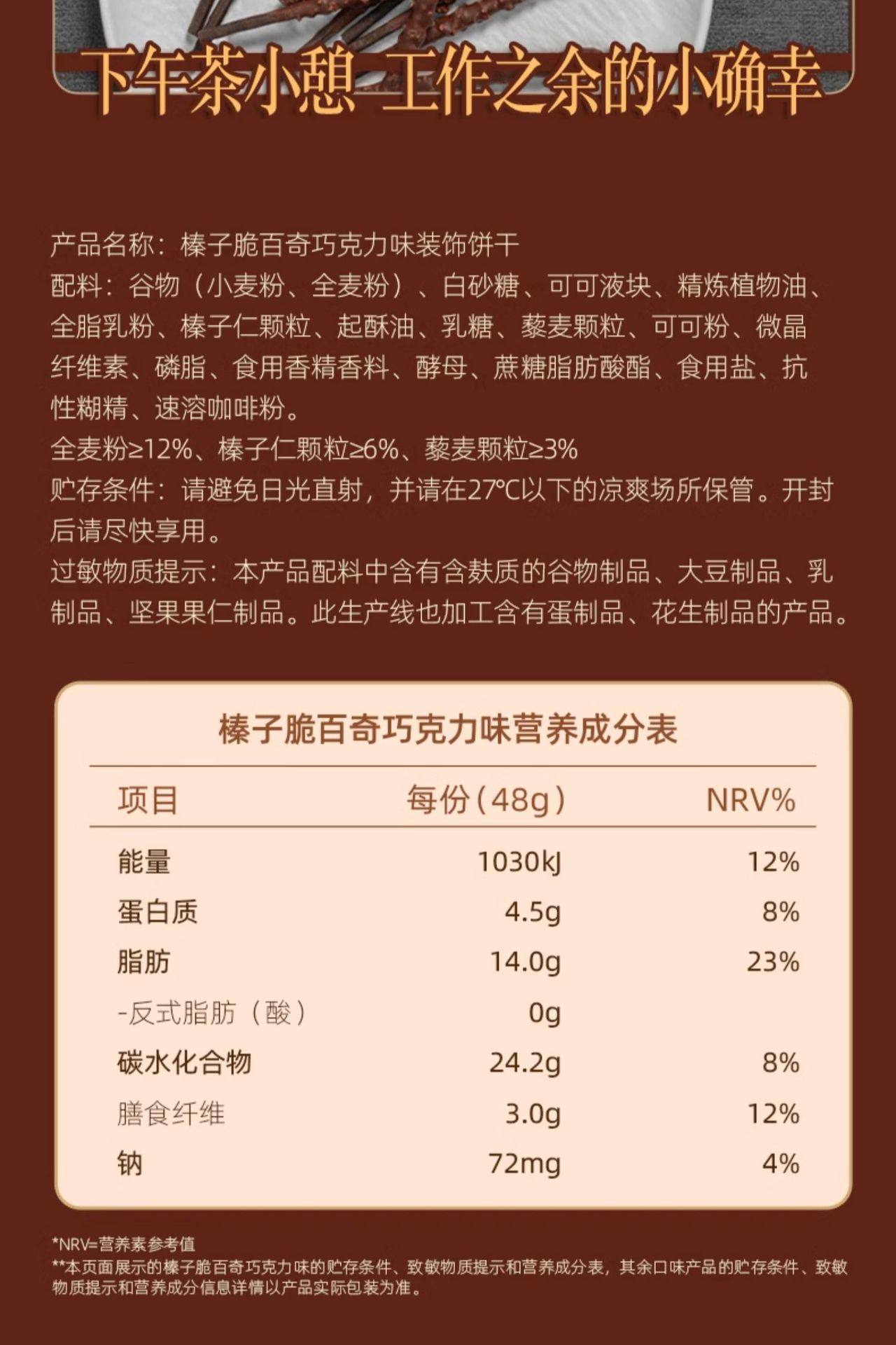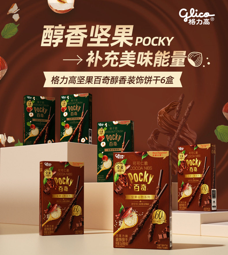 | Packaging specifications | Nut pocky (3 cocoa kernel crisps + 3 hazelnut crisp chocolates) |