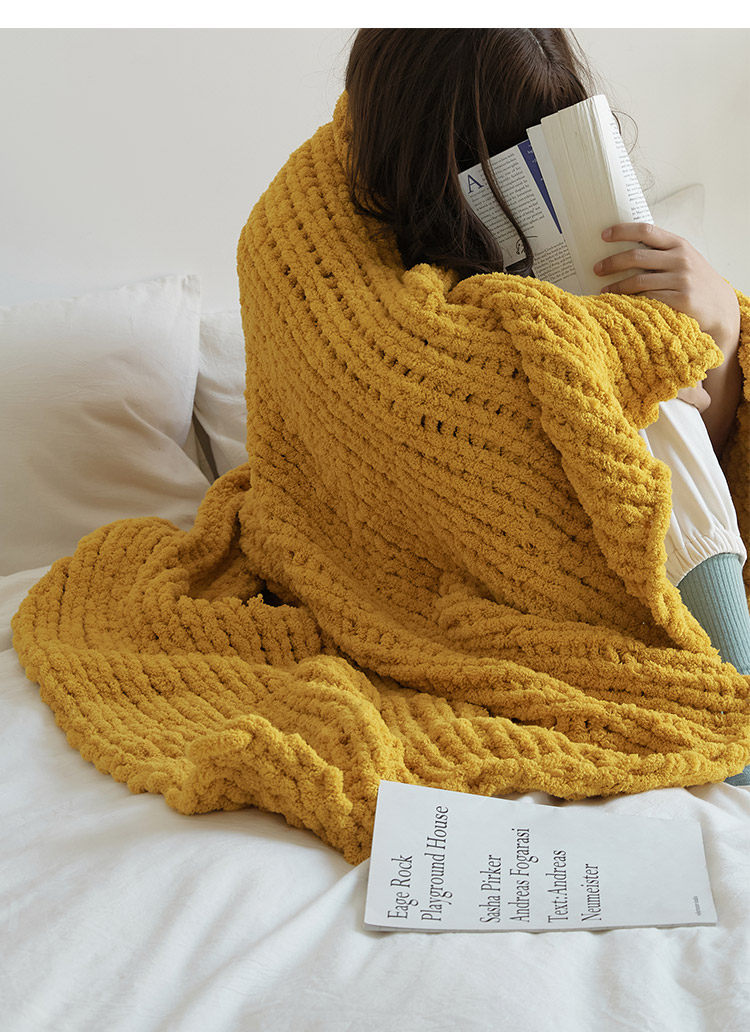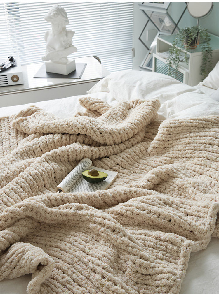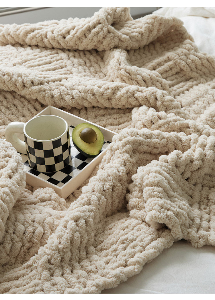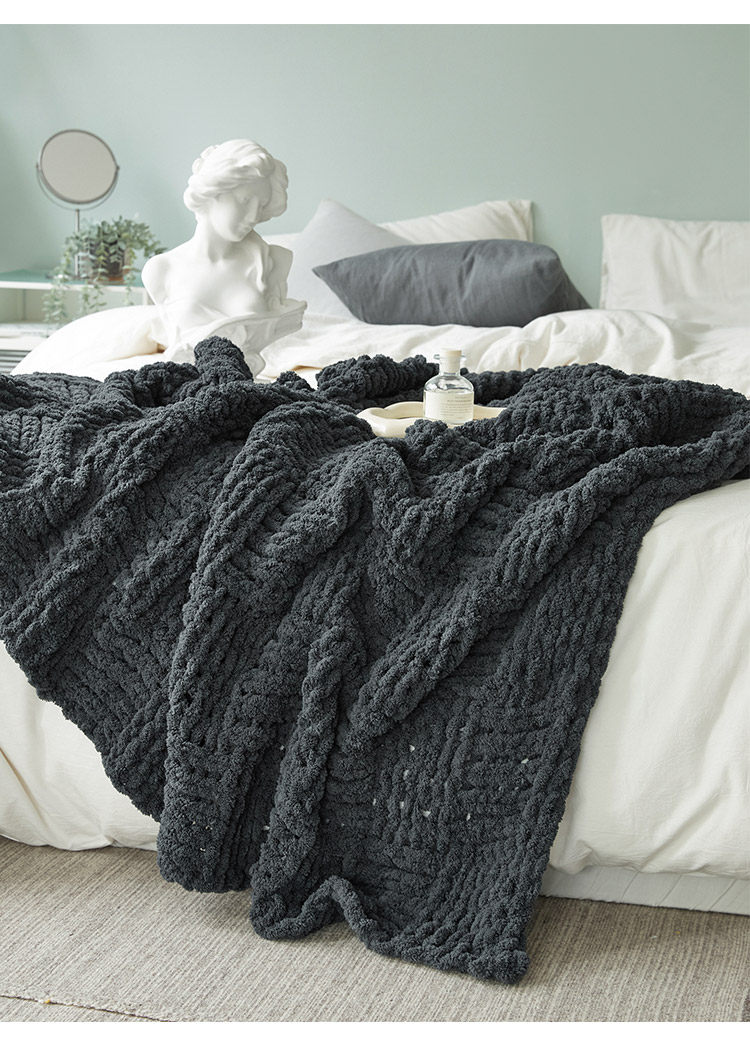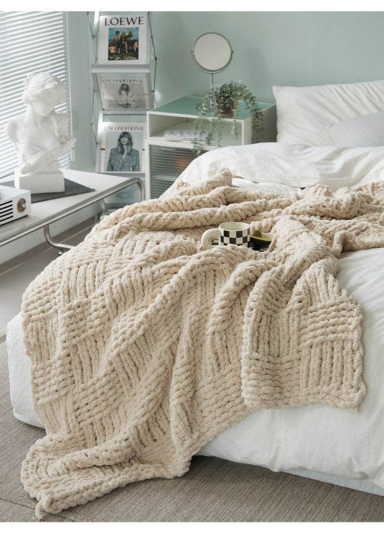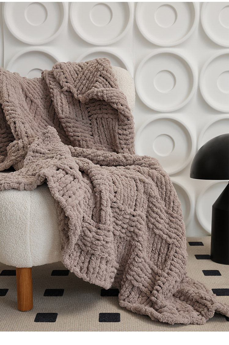 Cross-Border Amazon New Handmade Thick Chenille Knitted Blanket Thick Wool Knitted Blanket Wool Blanket Sofa Cover Blanket