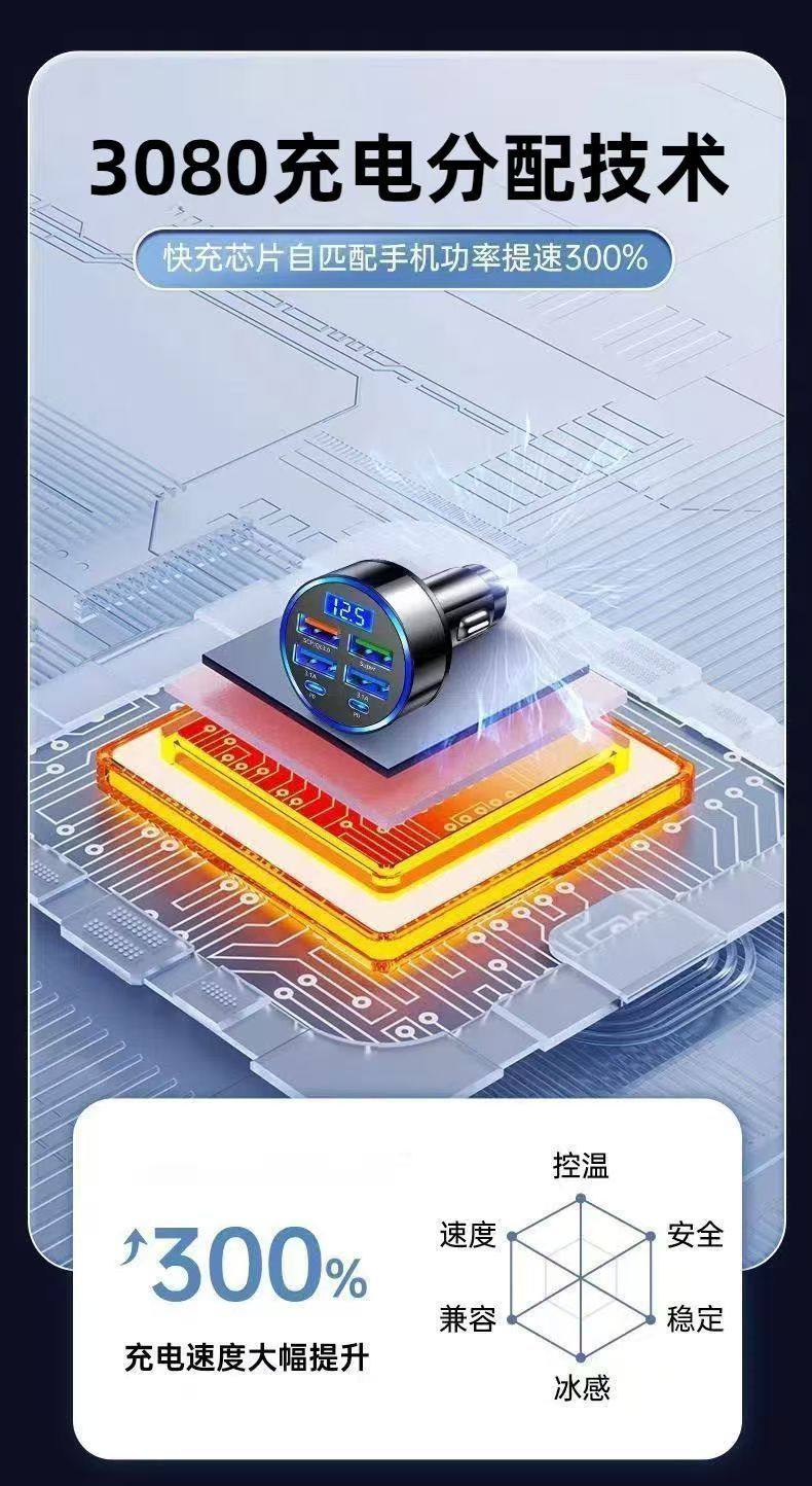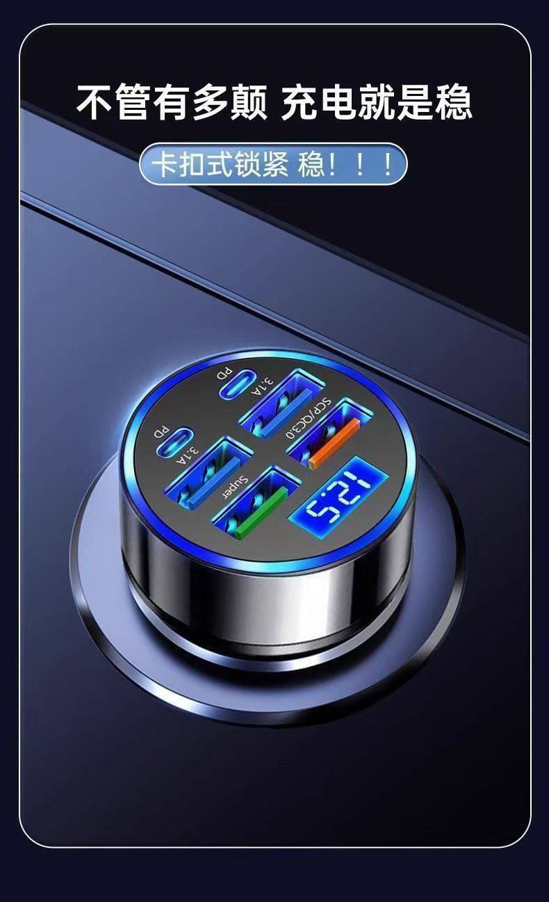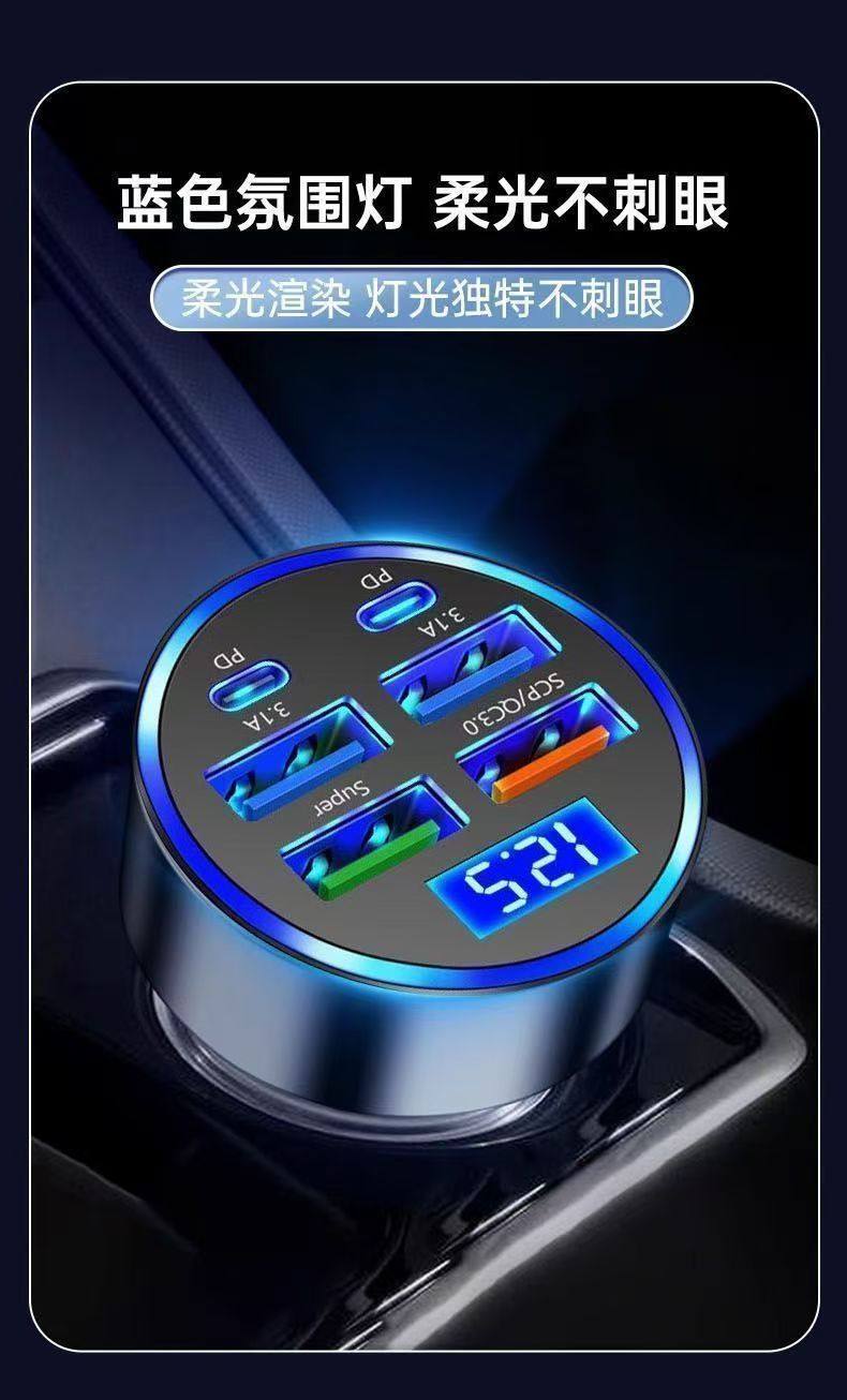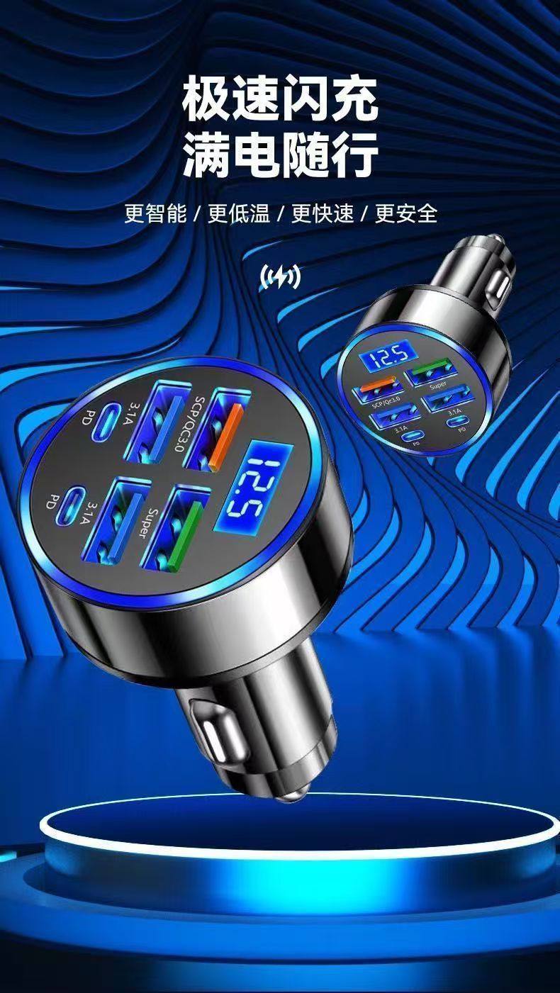 Car mobile phone charger super fast charging head 6 PD flash charging for Android Apple high power car charger