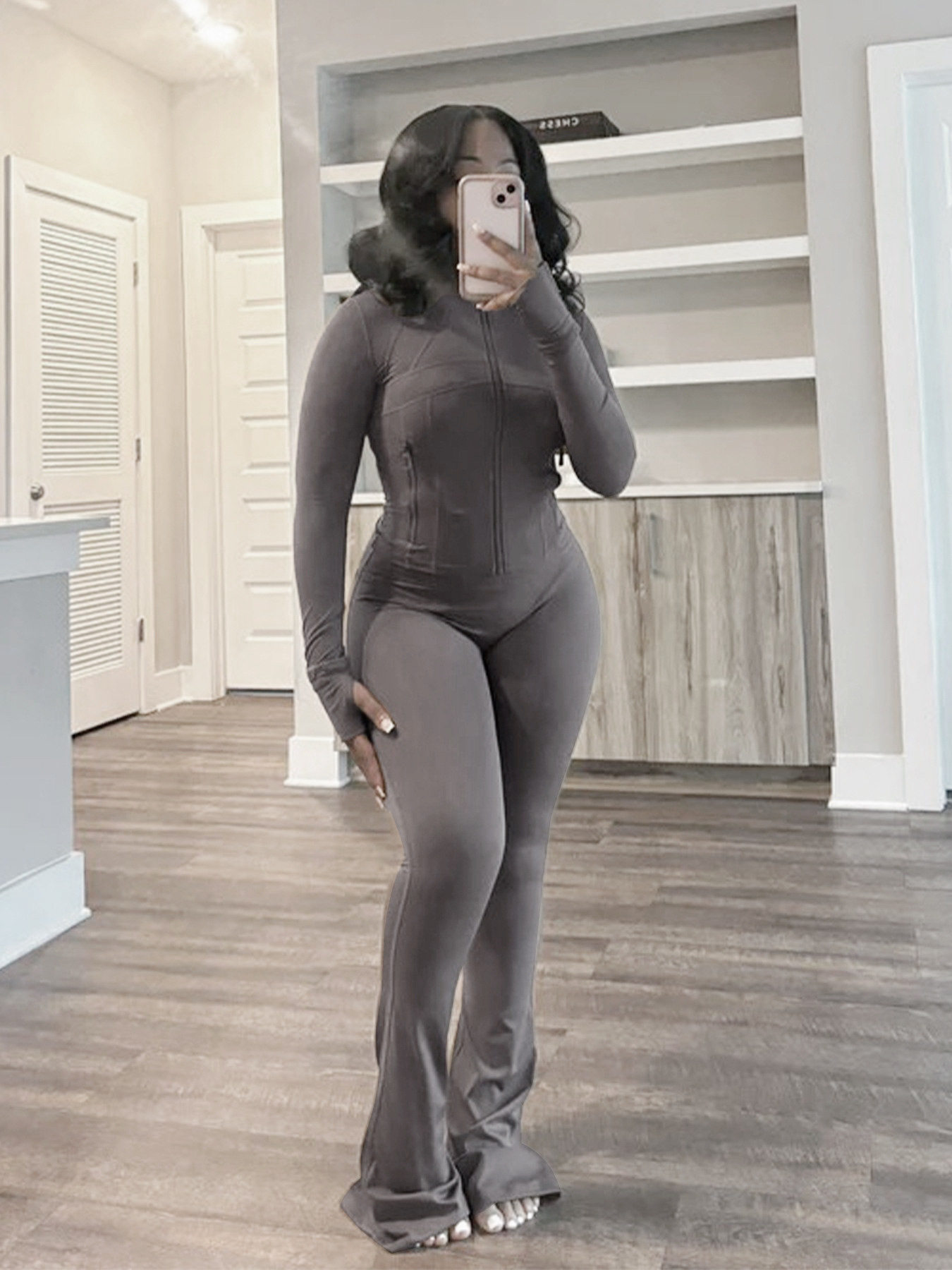 2025 Amazon Europe and the United States spring and summer cross-border sports leisure women's sexy tight long sleeve micro horn two-piece set