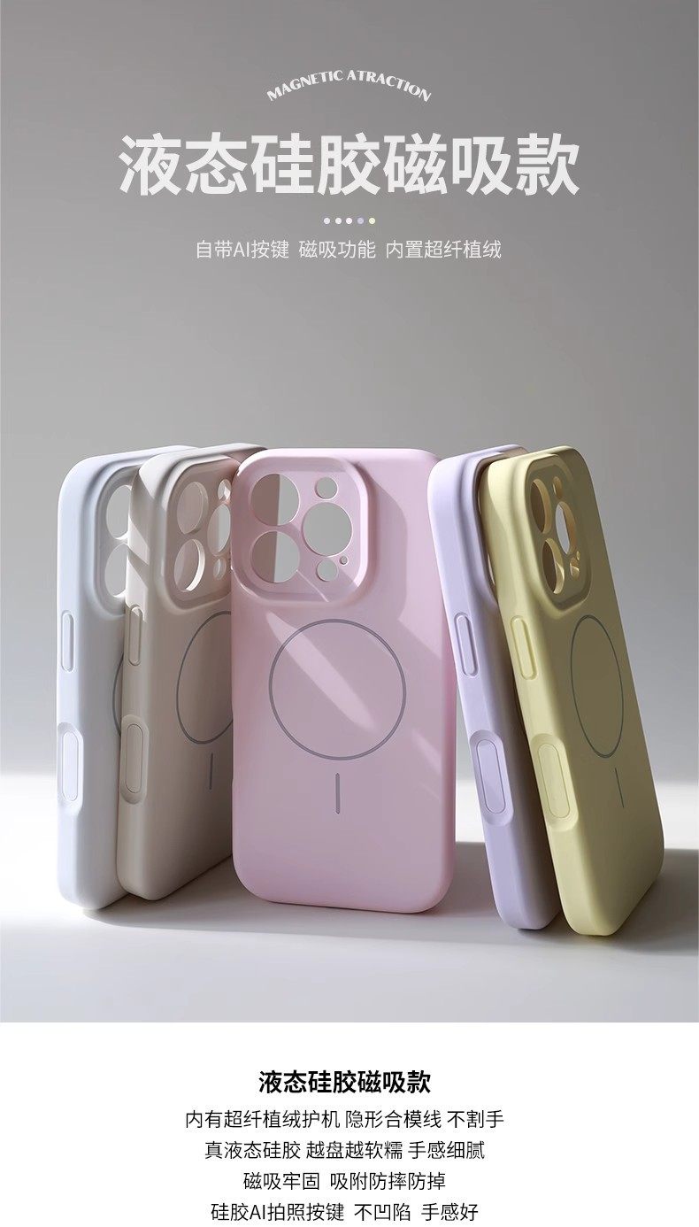 Magnetic Liquid Silicone Case Suitable for Iphone17Promax Mobile Phone Case Camera Button Integrated Apple 16 All-Inclusive