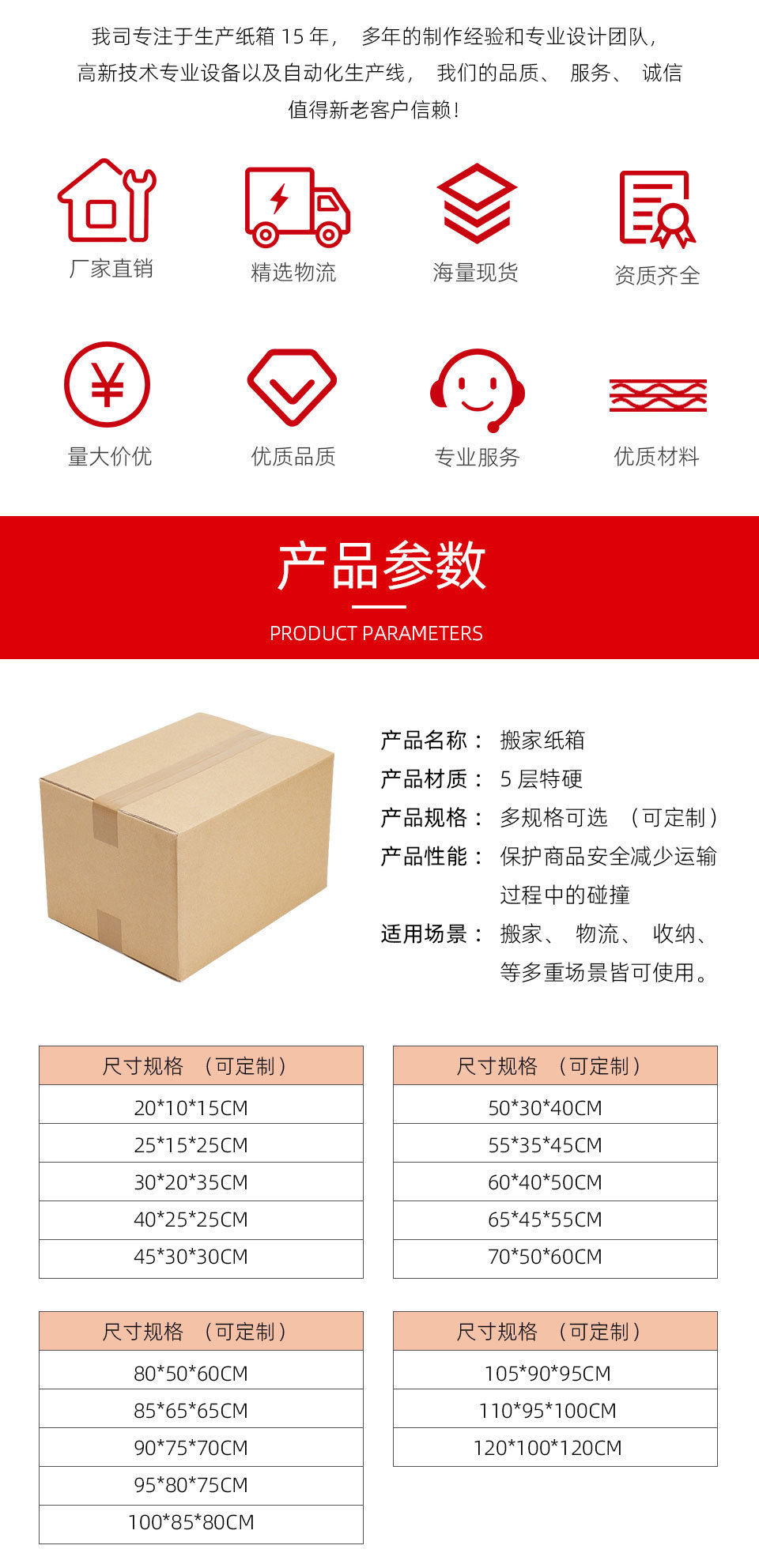 | Specifications and models | 20*15*10cm; five layers of kk extra hard,20*15*15cm; five layers of kk extra hard,20*15*35cm; five layers of kk extra hard,20*20*20cm; five layers of kk extra hard,25*20*15cm; five layers of kk extra hard,25*25*25cm; five layers of kk extra hard,30*15*10cm; five layers of kk extra hard,30*15*15cm; five layers of kk extra hard,30*20*15cm; five layers of kk extra hard,30*20*30cm; five layers of kk extra hard,30*30*30cm; five layers of kk extra hard,35*25*15cm; five layers of kk extra hard,35*25*25cm; five layers of kk extra hard,35*30*20cm; five layers of kk extra hard,35*35*30cm; five layers of kk extra hard,35*35*35cm; five layers of kk extra hard,40*30*25cm; five layers of kk extra hard,40*30*35cm; five layers of kk extra hard,45*25*30cm; five layers of kk extra hard,45*45*25cm; five layers of kk extra hard,45*45*55cm; five layers of kk extra hard,50*35*40cm; five layers of kk extra hard,50*35*50cm; five layers of kk extra hard,50*40*50cm; five layers of kk extra hard,55*35*40cm; five layers of kk extra hard,55*45*60cm; five layers of kk extra hard,55*55*45cm; five layers of kk extra hard,60*35*35cm; five layers of kk extra hard,60*35*40cm; five layers of kk extra hard,60*40*50cm; five layers of kk extra hard,60*45*30cm; five layers of kk extra hard,60*50*50cm; five layers of kk extra hard,60*55*50cm; five layers of kk extra hard,65*40*35cm; five layers of kk extra hard,65*45*45cm; five layers of kk extra hard,70*50*30cm; five layers of kk extra hard,70*60*40cm; five layers of kk extra hard,80*60*40cm; five layers of kk extra hard,90*35*40cm; five layers of kk extra hard,100*35*40cm; five layers of kk extra hard,100*60*60cm; five layers of kk extra hard,120*60*60cm; five layers of kk extra hard |