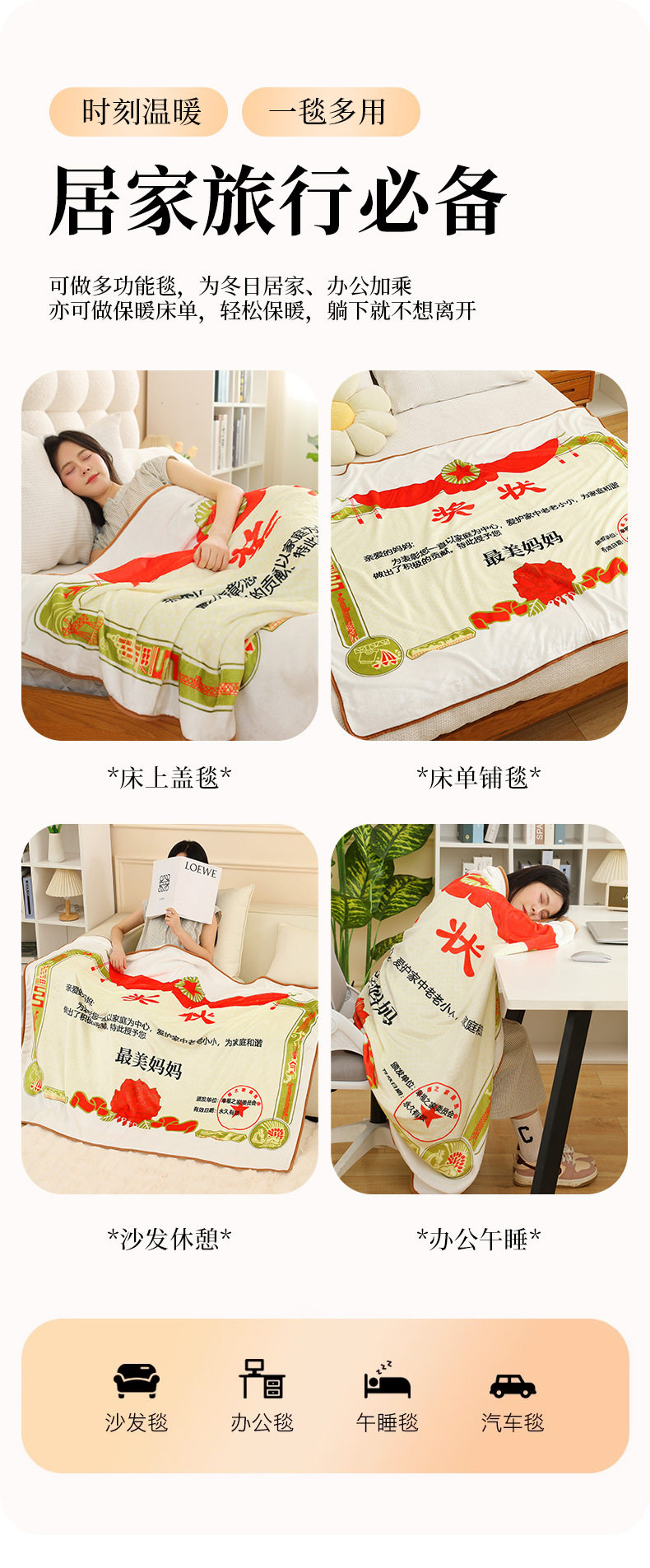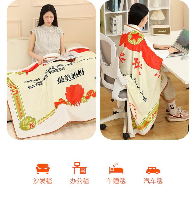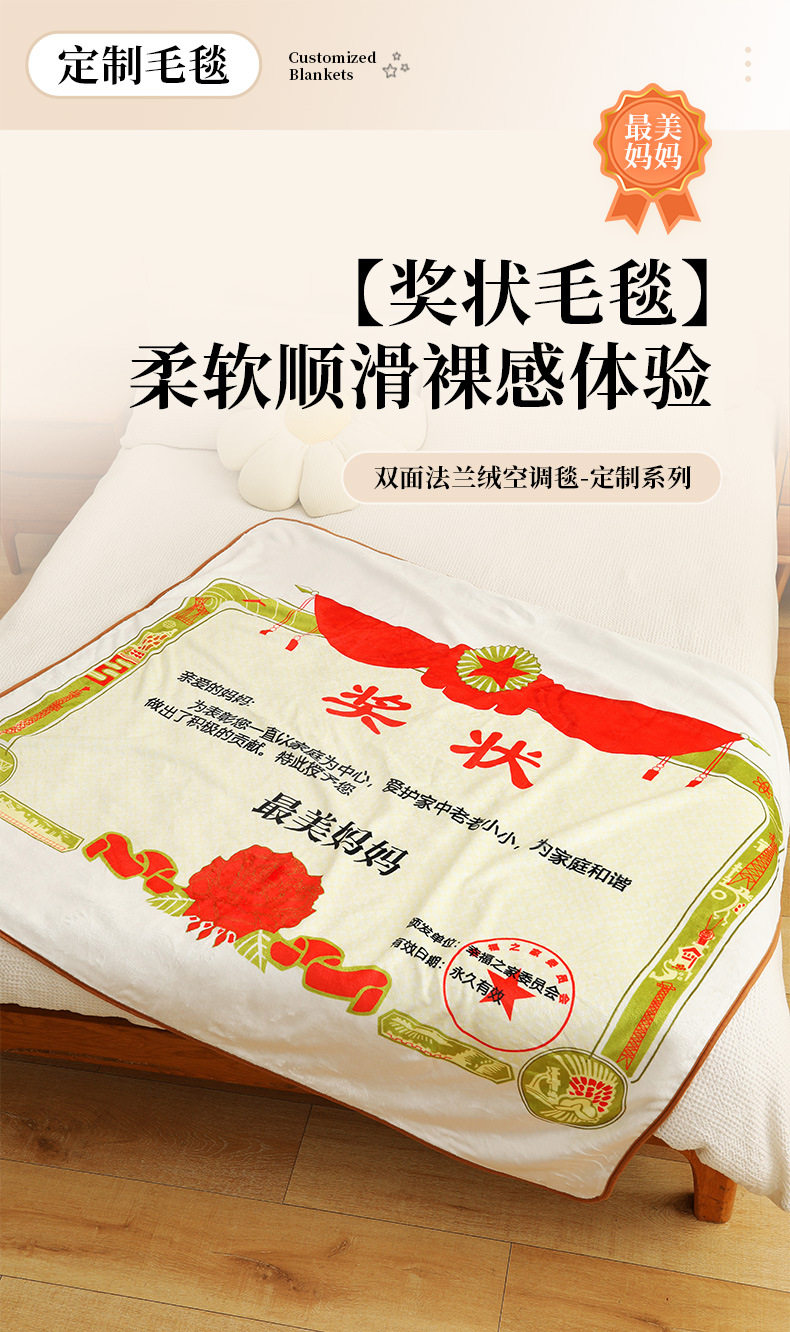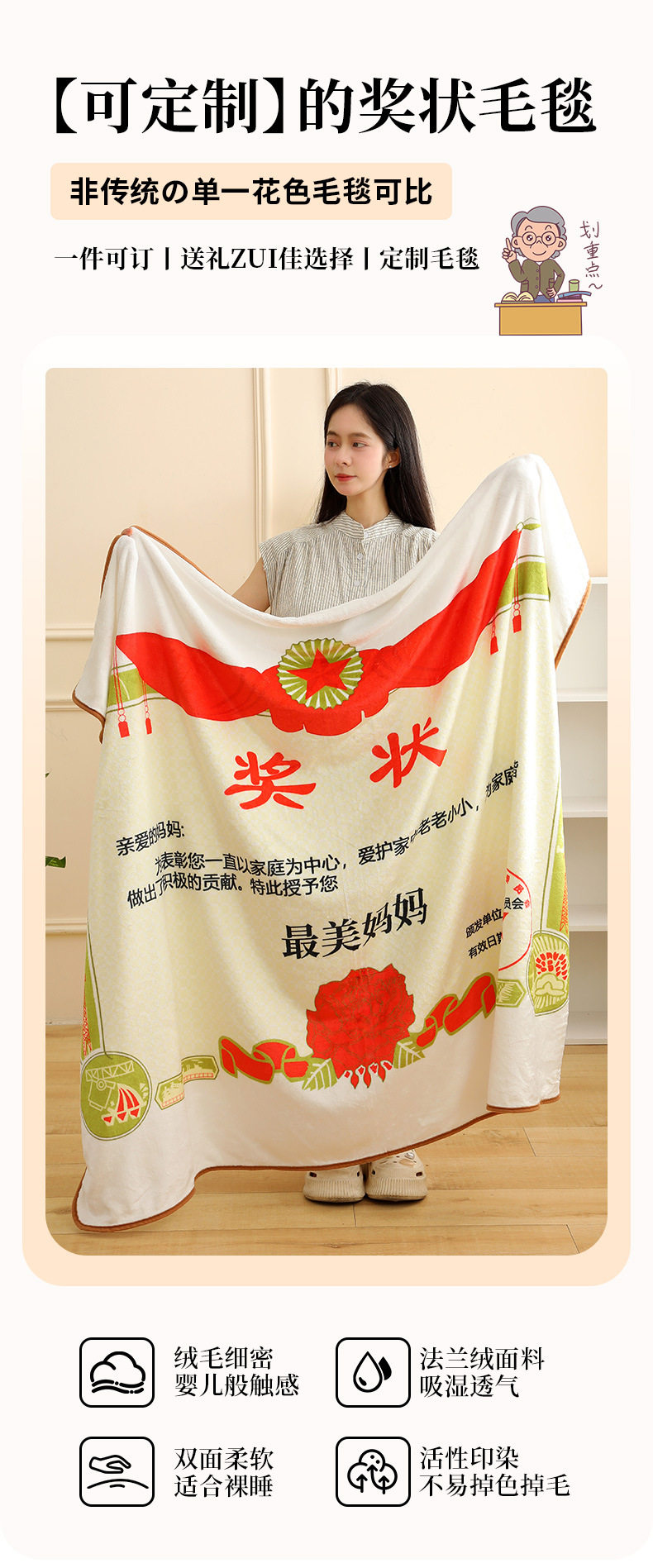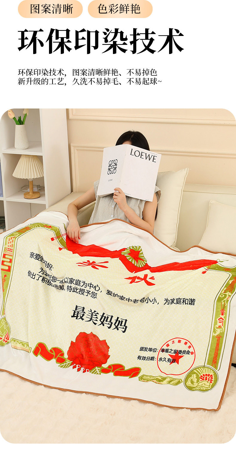 Customized Creative Certificate Blanket with Pictures, Holiday Gift for Teachers, Friends and Parents, Nap Air-Conditioned Blanket