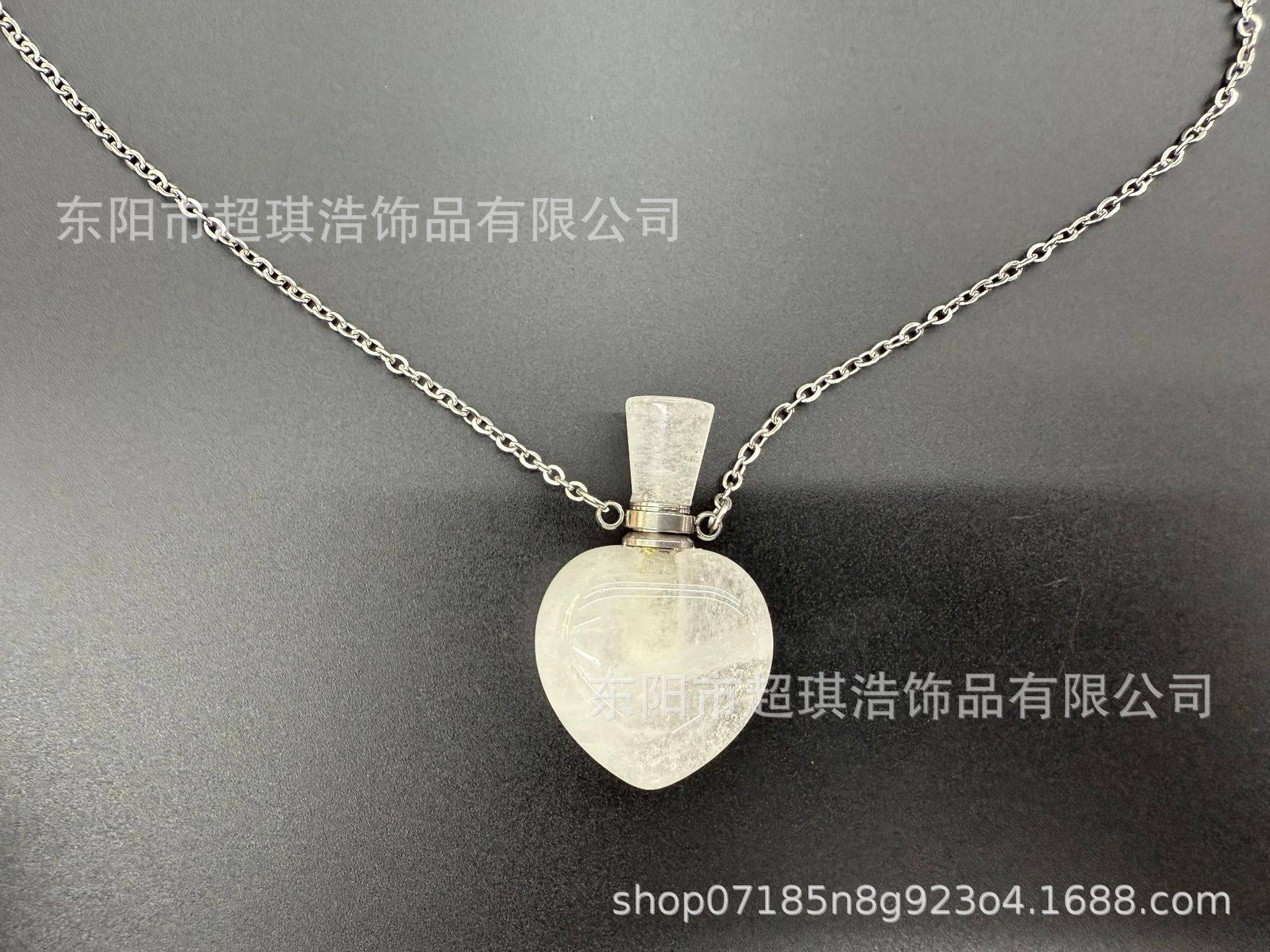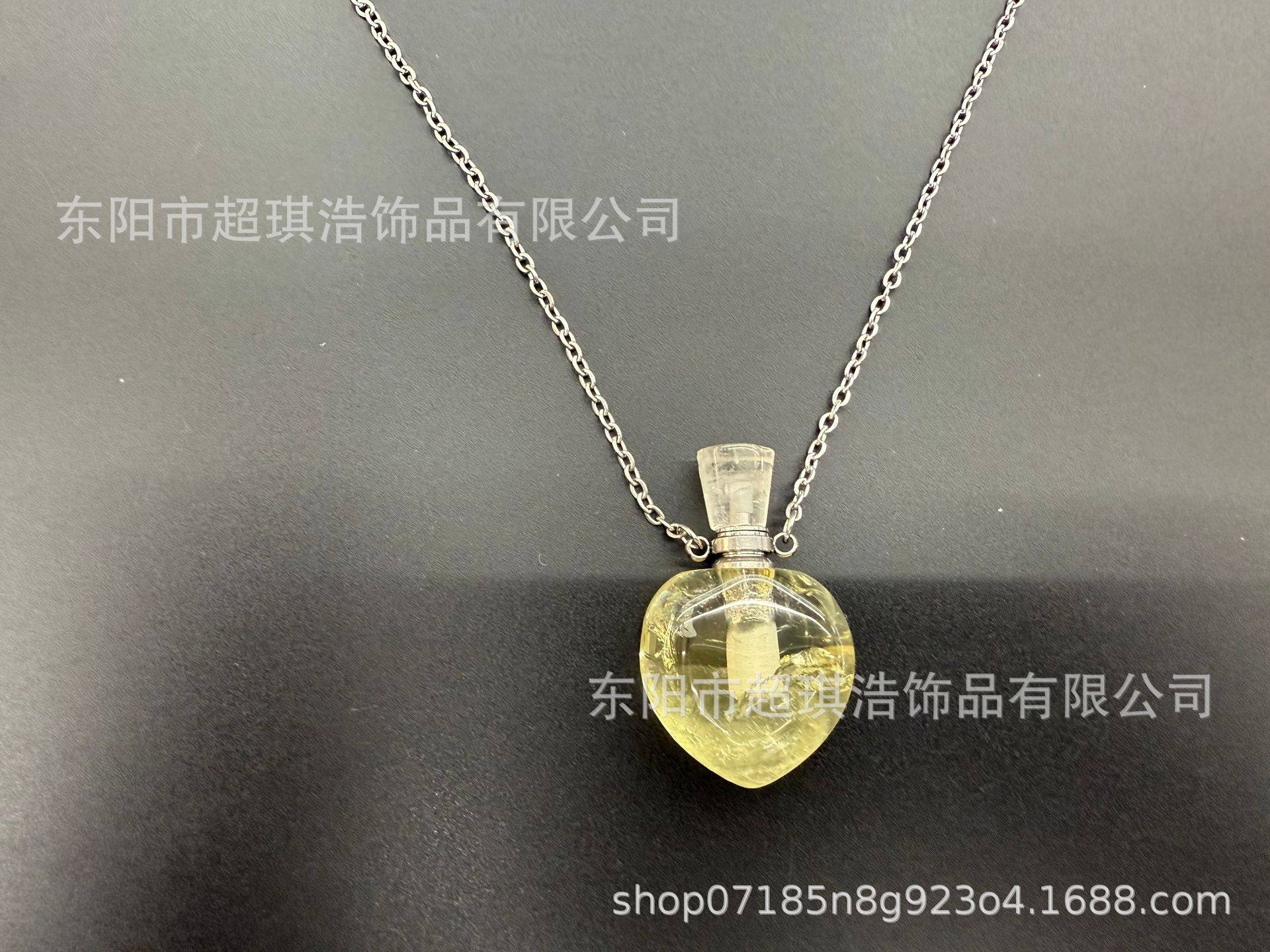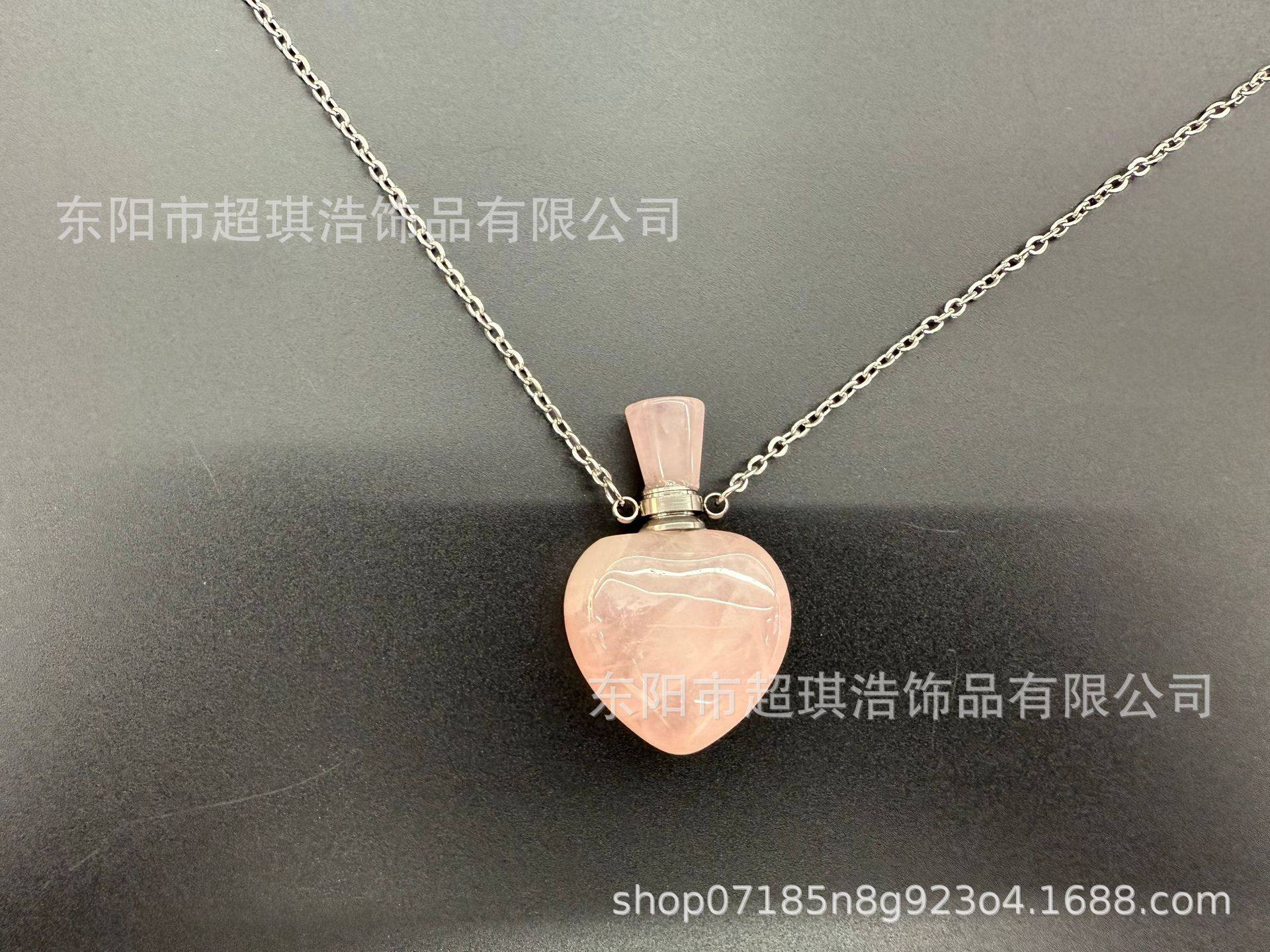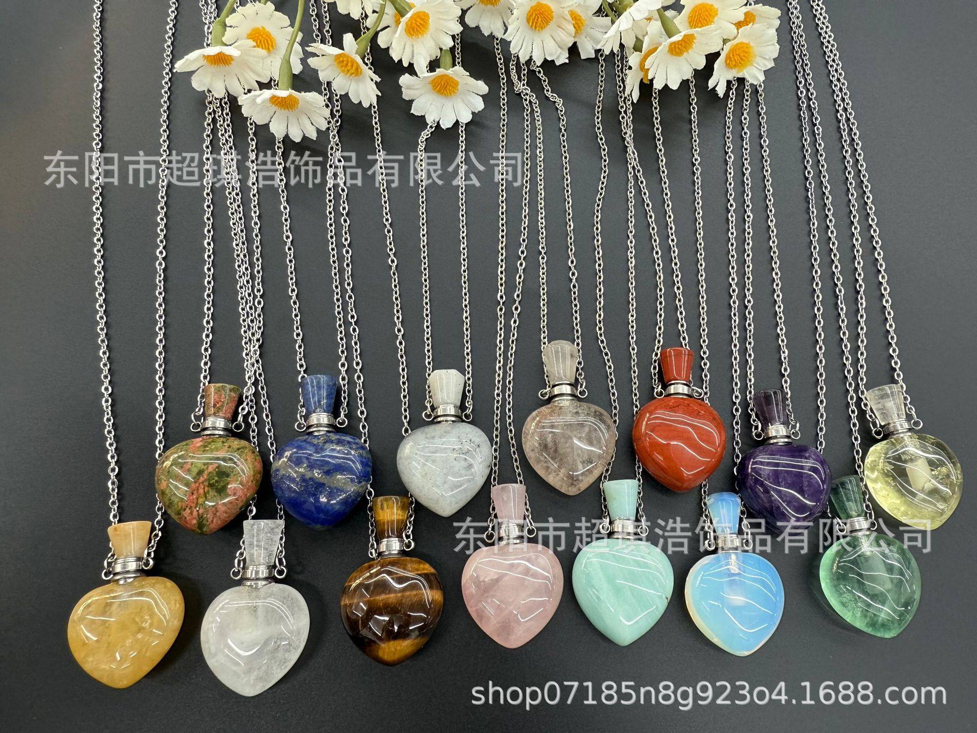 Natural Stone Crystal Pendant Peach Heart Natural Crystal Perfume Bottle Essential Oil Bottle Necklace Pendant Cross-Border Hot Sale Manufacturer Direct
