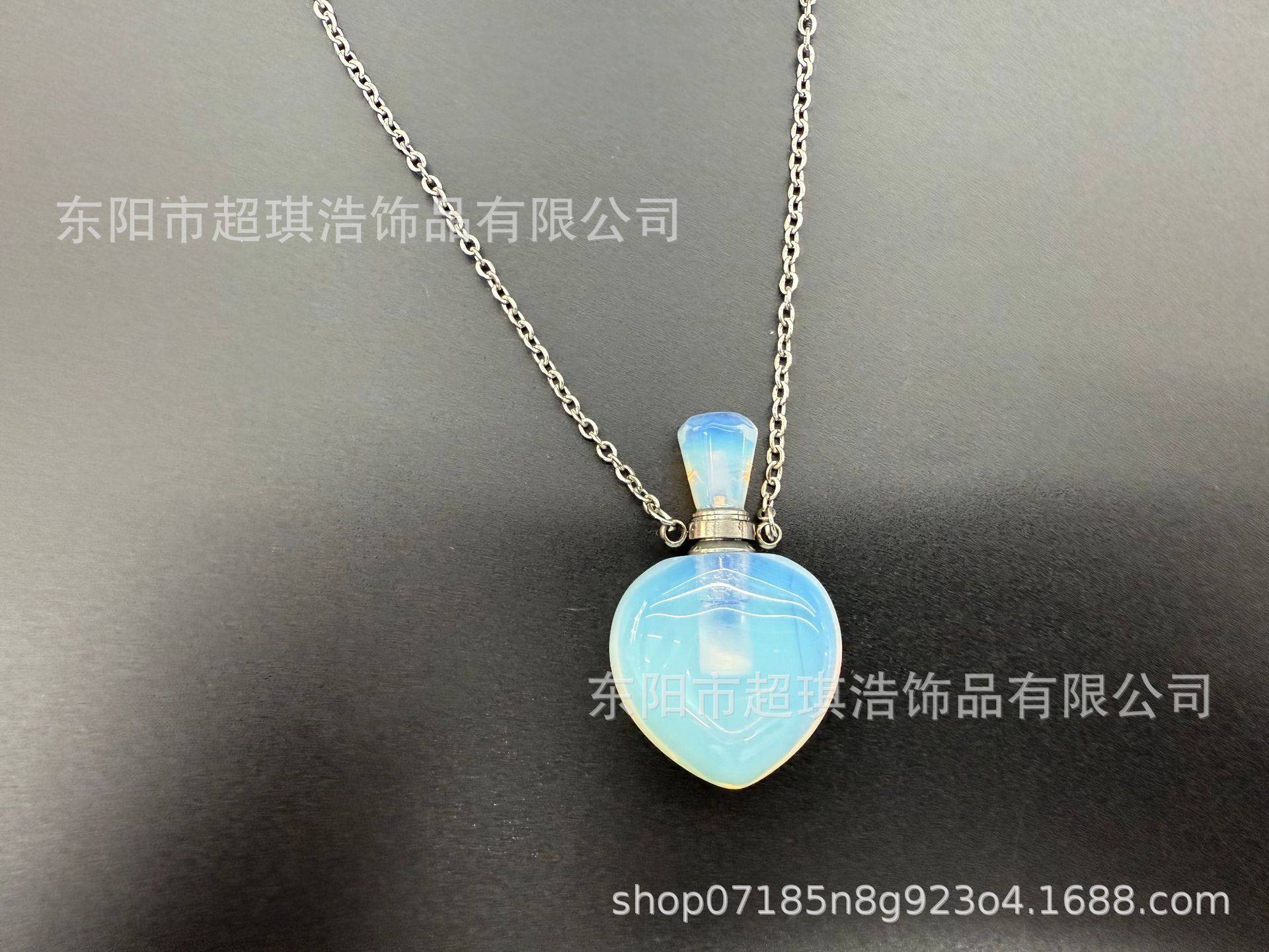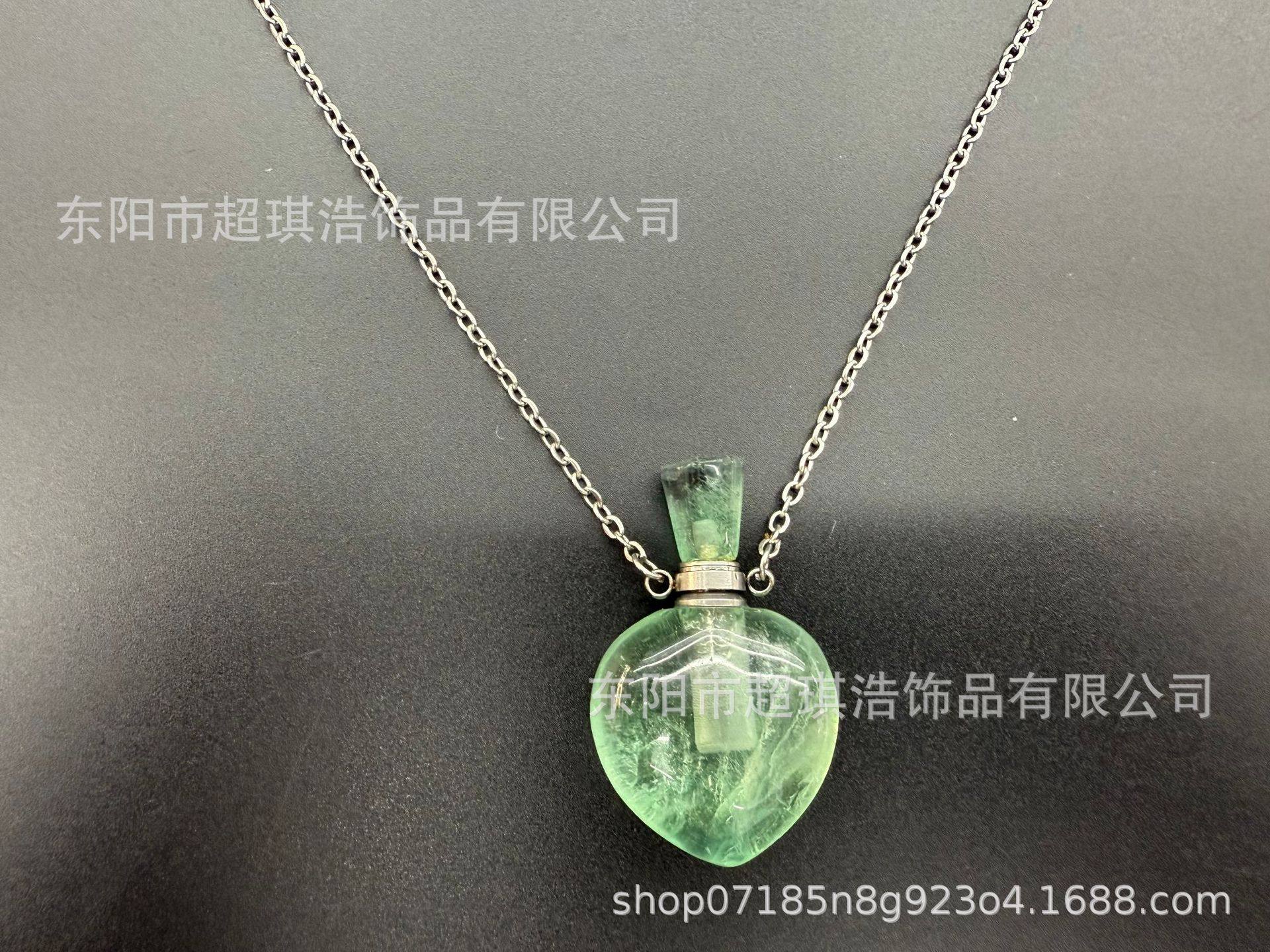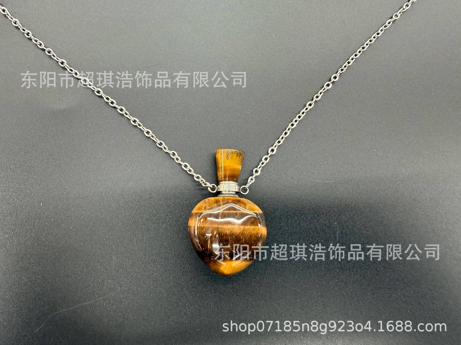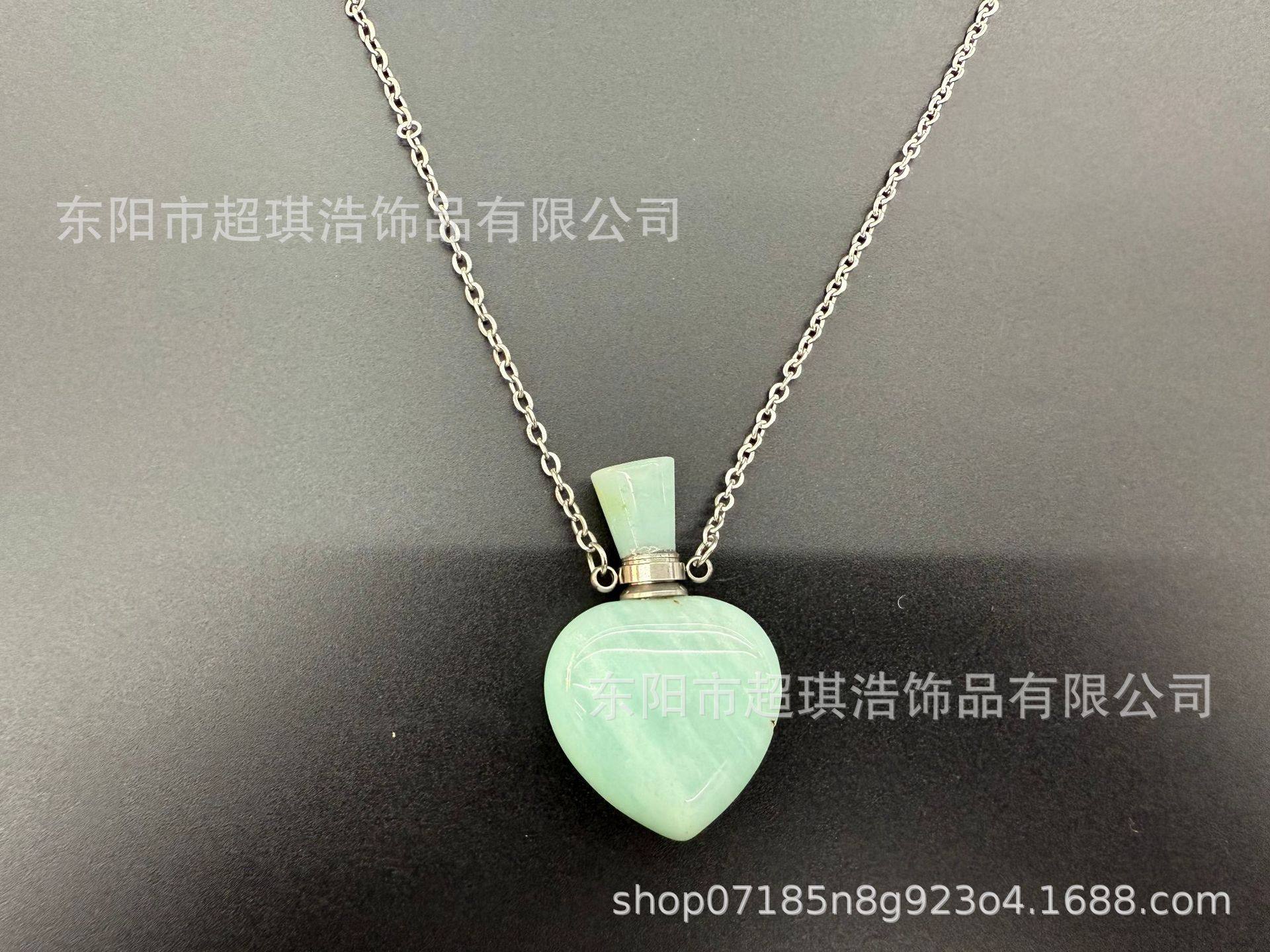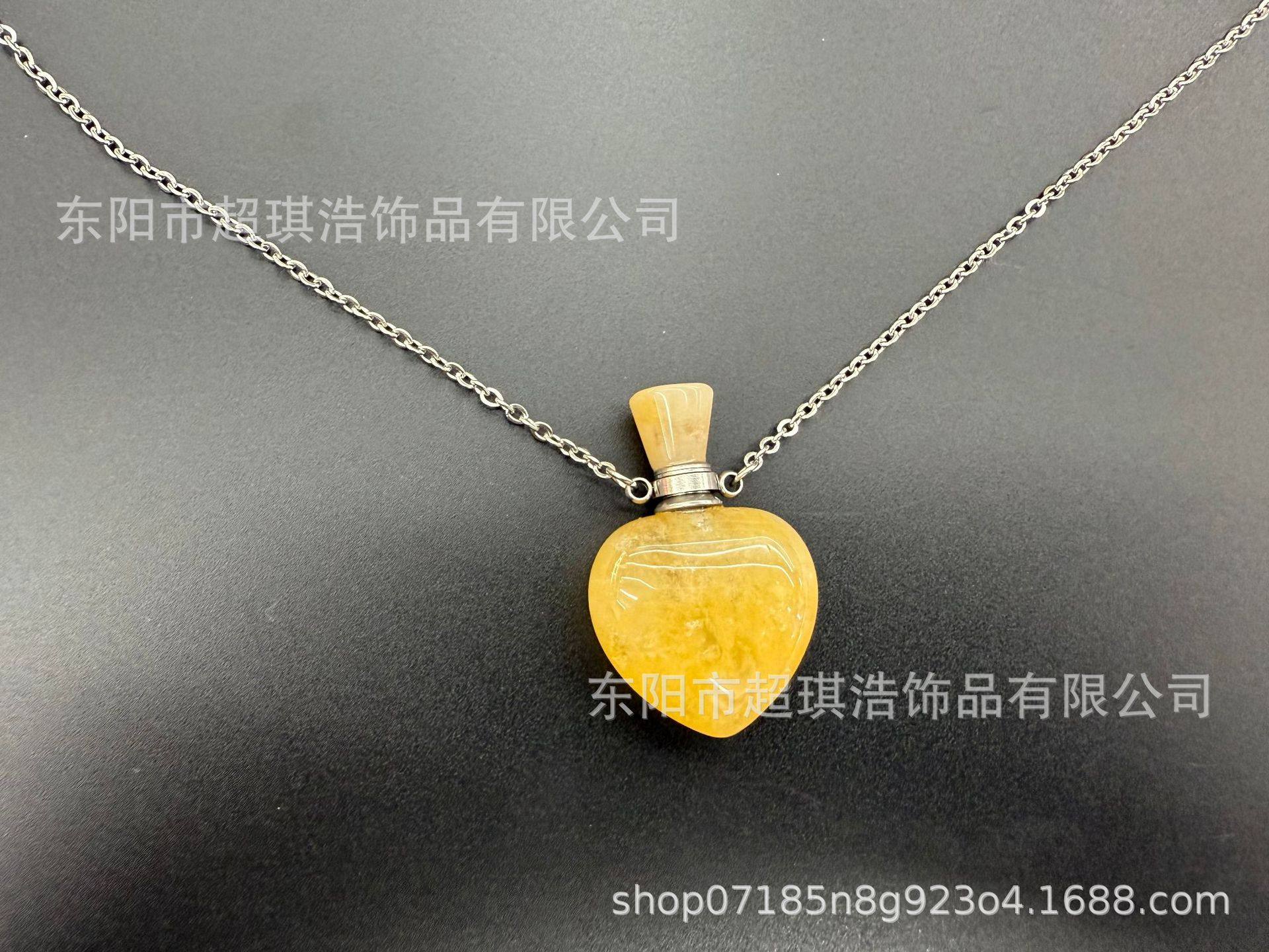 Natural Stone Crystal Pendant Peach Heart Natural Crystal Perfume Bottle Essential Oil Bottle Necklace Pendant Cross-Border Hot Sale Manufacturer Direct