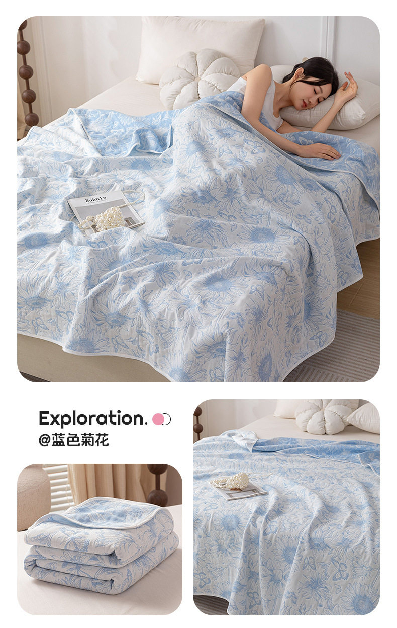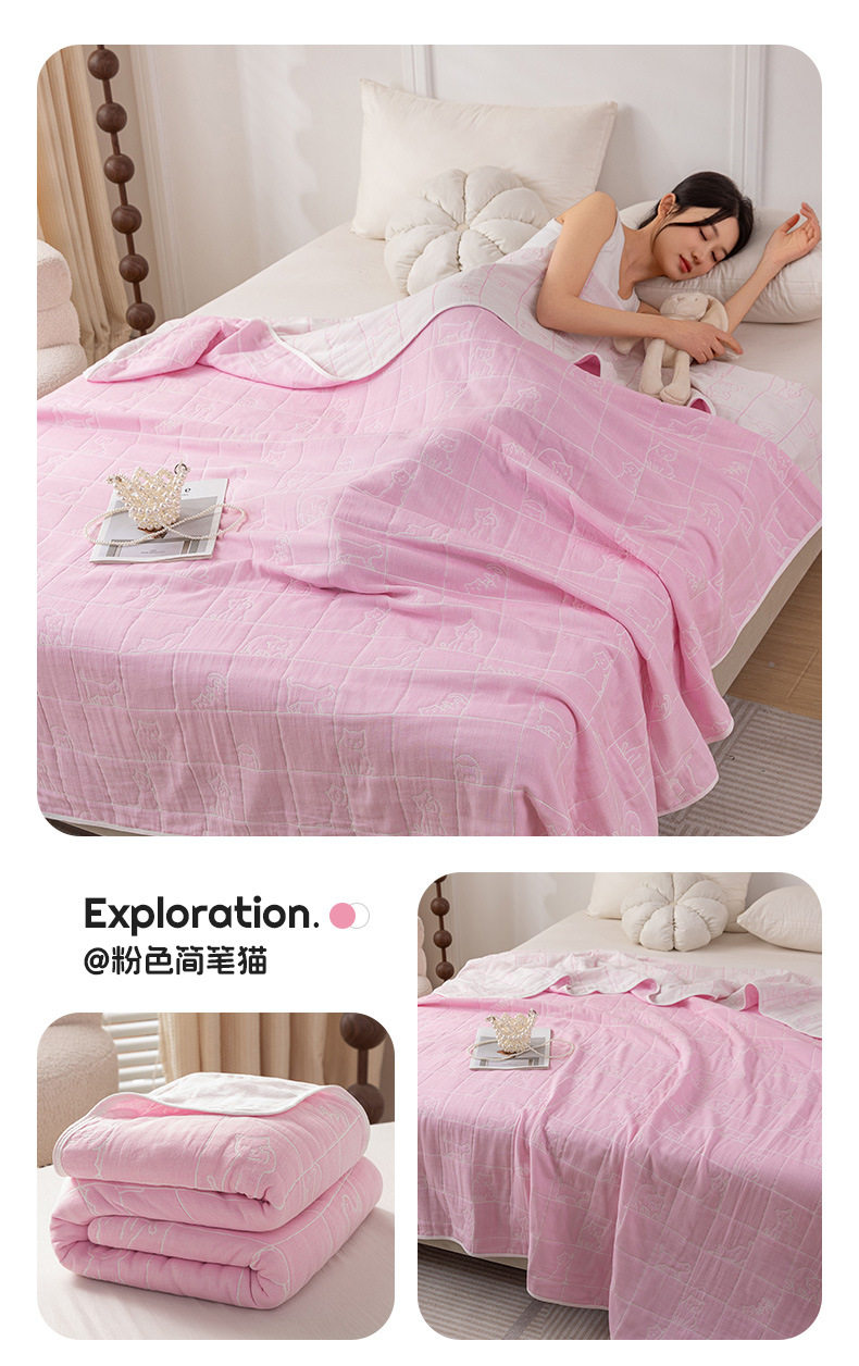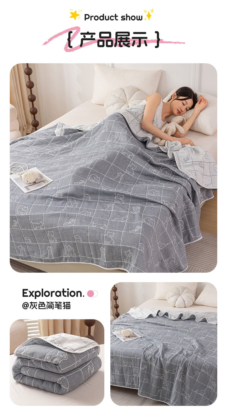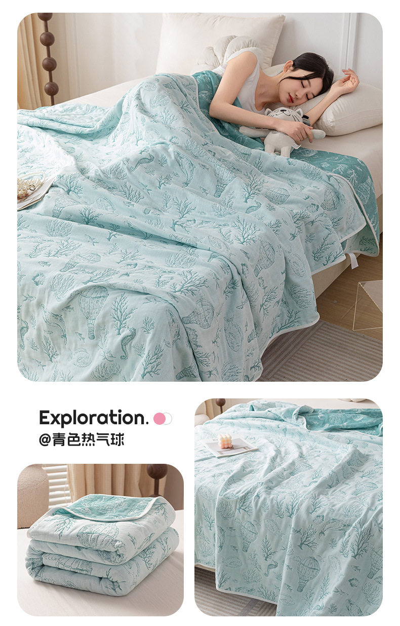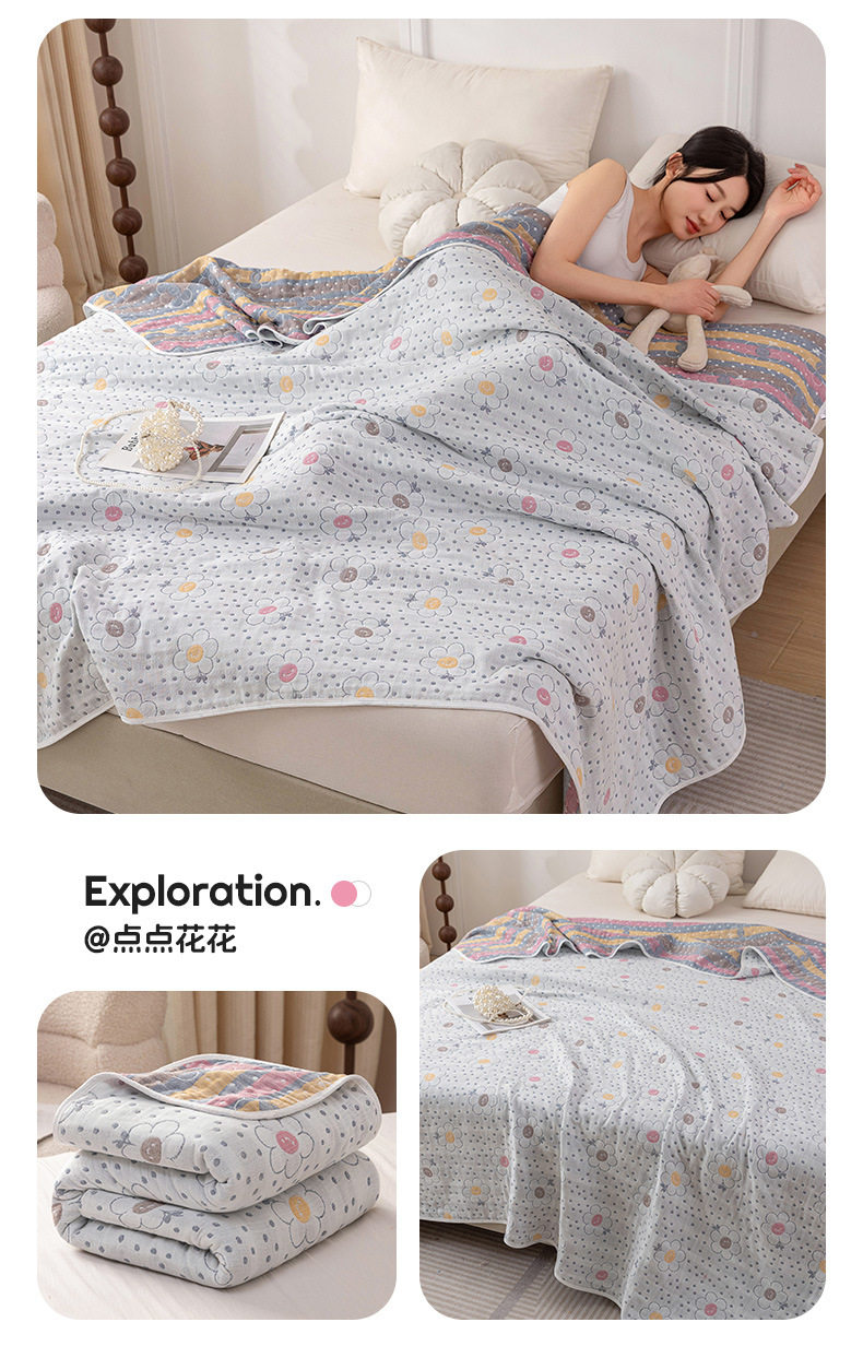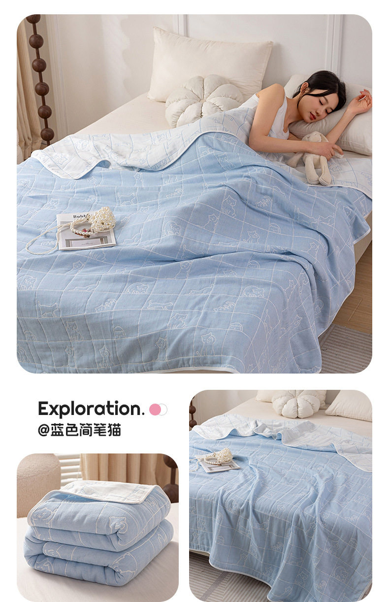 Class a Cotton Six-Layer Gauze Towel Quilt Summer Cooling Quilt Summer Kidsren's Air-Conditioned Nap Blanket Quilt Breathable and Skin-Friendly