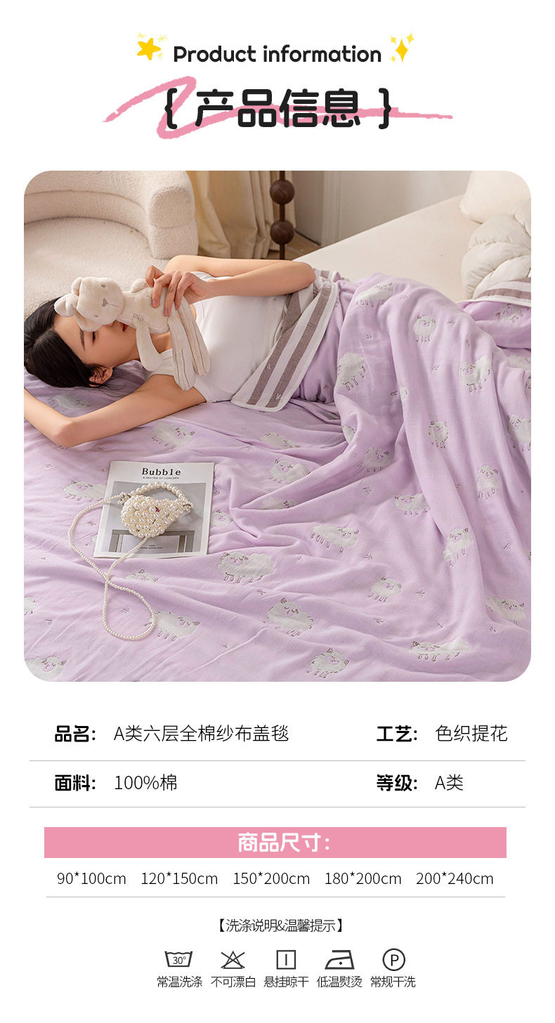 | Flower type | Pink tulip [breathable and not sweaty] [class a maternal and infant grade, six layers of soft yarn, machine washable],Pink checkered tulips [breathable and not sweaty] [class a maternal and infant grade, six layers of soft yarn, machine washable],Blue plaid tulips [breathable and not sweaty] [class a maternal and infant grade, six layers of soft yarn, machine washable],Colorful and good weather [breathable and not sweaty] [class a maternal and infant grade, six layers of soft yarn, machine washable],Diandian huahua [breathable and not sweaty] [class a maternal and infant grade, six layers of soft yarn, machine washable],Pink zebra [breathable and not sweaty] [class a maternal and infant grade, six layers of soft yarn, machine washable],Pink simple cat [breathable and not sweaty] [class a maternal and infant grade, six layers of soft yarn, machine washable],Pink sunflower [breathable and not sweaty] [class a maternal and infant grade, six layers of soft yarn, machine washable],Pink pear [breathable and not sweaty] [class a maternal and infant grade, six layers of soft yarn, machine washable],Pink small floral [breathable and not sweaty] [class a maternal and infant grade, six layers of soft yarn, machine washable],Red kitten cat [breathable and not sweaty] [class a maternal and infant grade, six layers of soft yarn, machine washable],Gray simple cat [breathable and not sweaty] [class a maternal and infant grade, six layers of soft yarn, machine washable],Blue zebra [breathable and not sweaty] [class a maternal and infant grade, six layers of soft yarn, machine washable],Blue simple cat [breathable and not sweaty] [class a maternal and infant grade, six layers of soft yarn, machine washable],Blue chrysanthemum [breathable and not sweaty] [class a maternal and infant grade, six layers of soft yarn, machine washable],Small blue floral [breathable and not sweaty] [class a maternal and infant grade, six layers of soft yarn, machine washable],Blue ginkgo leaf [breathable and not sweaty] [class a maternal and infant grade, six layers of soft yarn, machine washable],Green pear [breathable and not sweaty] [class a maternal and infant grade, six layers of soft yarn, machine washable],Cyan hot air balloon [breathable and not sweaty] [class a maternal and infant grade, six layers of soft yarn, machine washable],Brown sunflower [breathable and not sweaty] [class a maternal and infant grade, six layers of soft yarn, machine washable],Brown small floral [breathable and not sweaty] [class a maternal and infant grade, six layers of soft yarn, machine washable],Purple lamb [breathable and not sweaty] [class a maternal and infant grade, six layers of soft yarn, machine washable],Blue lamb [breathable and not sweaty] 200*240cm [class a maternal and infant grade, six layers of soft yarn, machine washable] |
