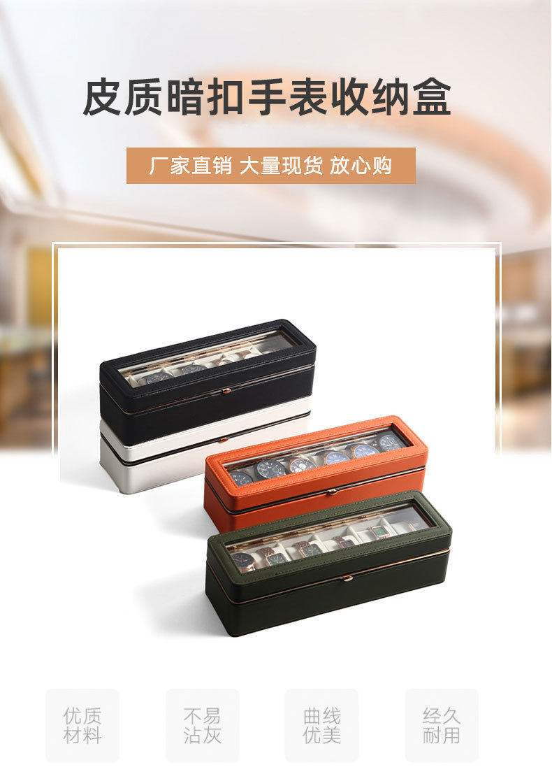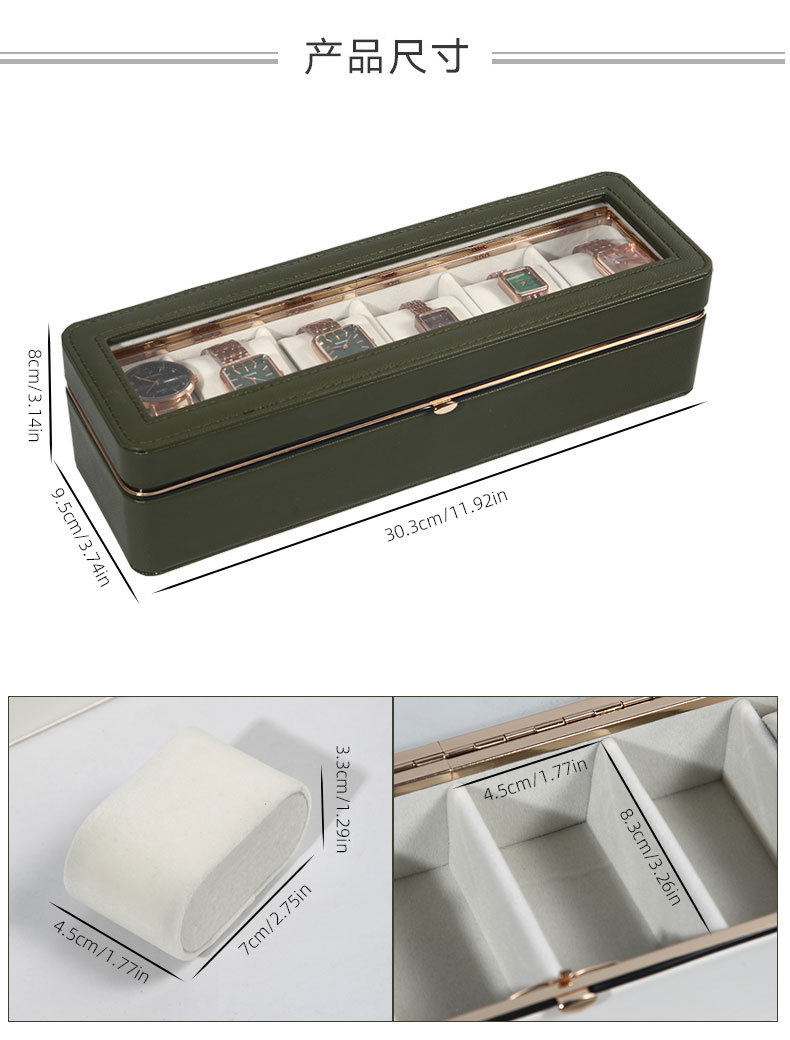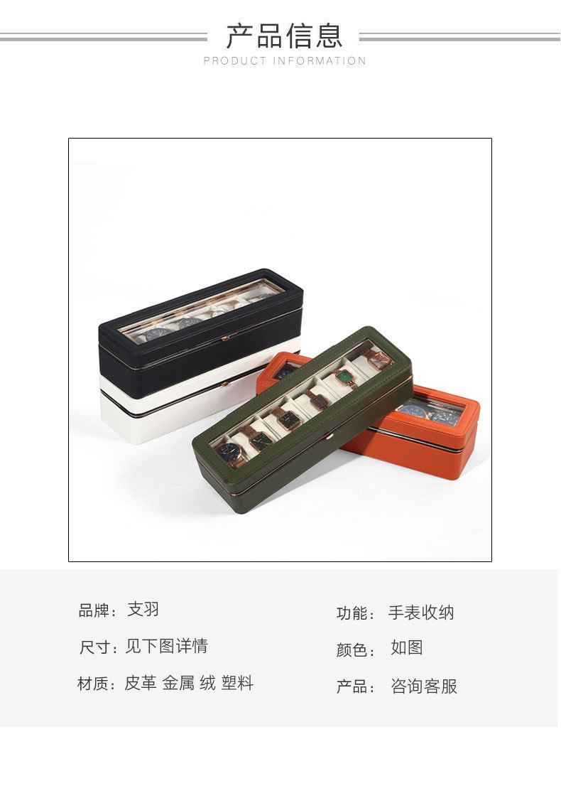 | Color | Dark green metal rimmed 6-digit watch box,Orange metal rimmed 6-digit watch box,Black metal edged 6-digit watch box,White metal rimmed 6-digit watch box |