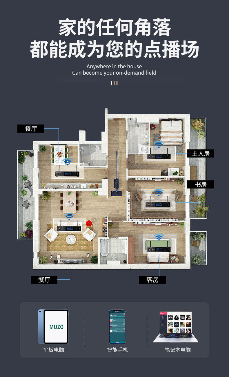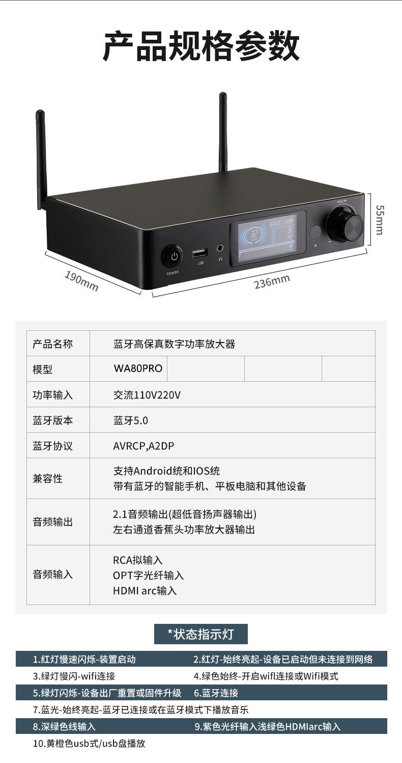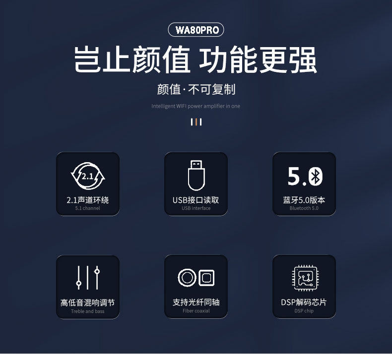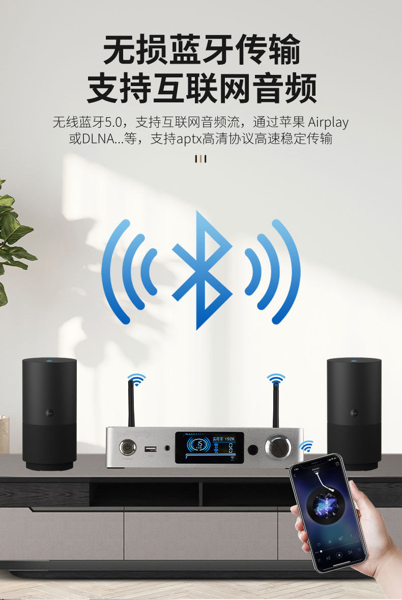 Home Smart Hifi Lossless Decoding High-Power Amplifier Audiophile-Grade Wifi Bluetooth Bass Amplifier