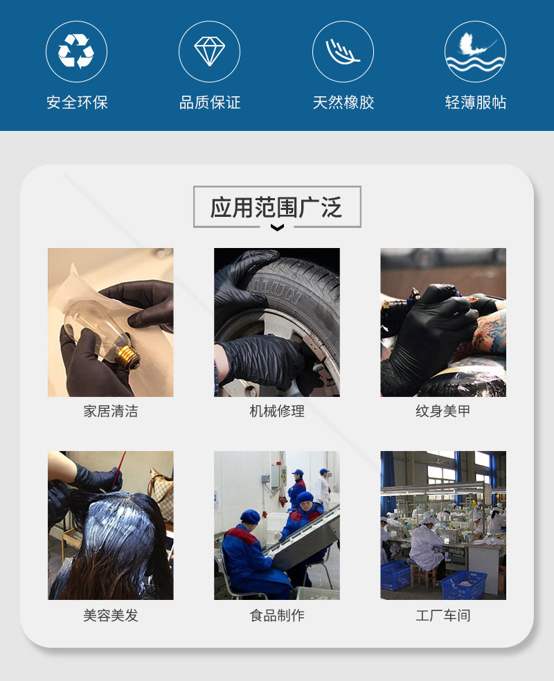 | Specifications and models | Black composite nitrile gloves small size (50 pieces),Black composite nitrile gloves, medium size (50 pieces),Black composite nitrile gloves large size (50 pieces),Black composite nitrile gloves plus size (50 pieces) |