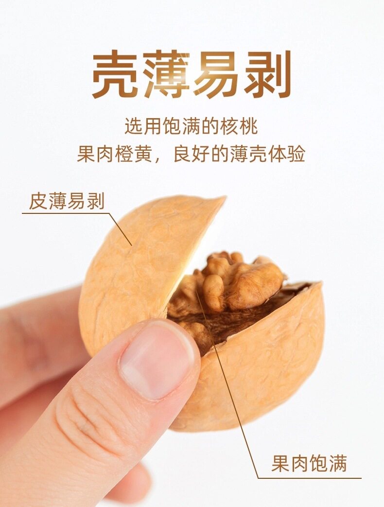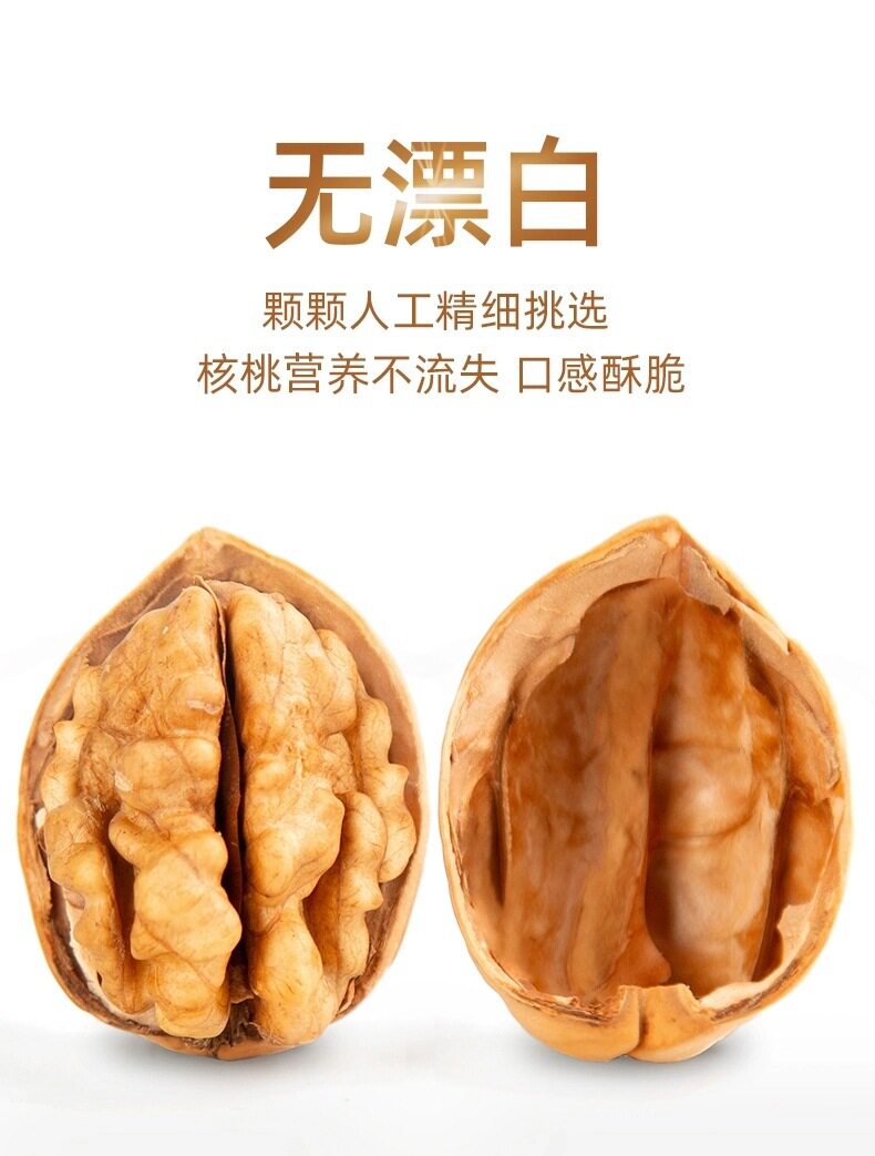 | Packaging specifications | 250g ordinary thin-skinned walnuts,500g ordinary thin-skinned walnuts,Pure xinjiang paper-skinned walnuts 500g,Ordinary thin-skinned walnuts 1.5kg,Pure xinjiang paper walnut 1.5kg,Xinjiang paper-skinned walnuts 1.0kg |