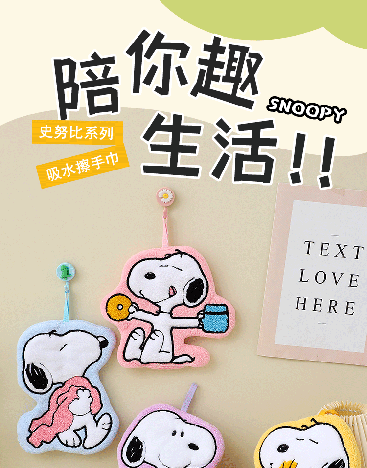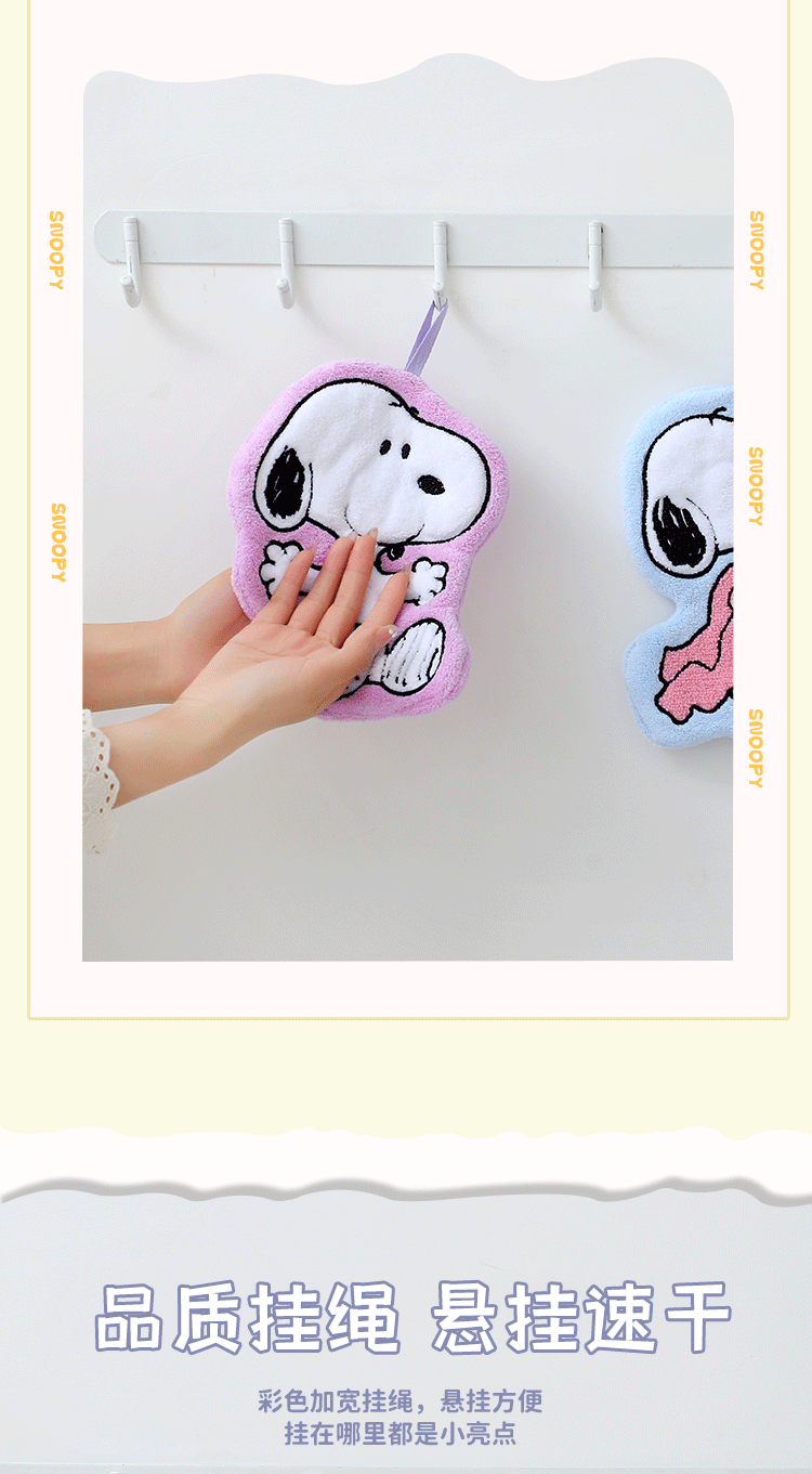 Snoopy Snoopy Cute Hand Towel Hanging Absorbent Thickeneded Bathroom Cartoon Handkerchief Hand Washing Small Square Towel