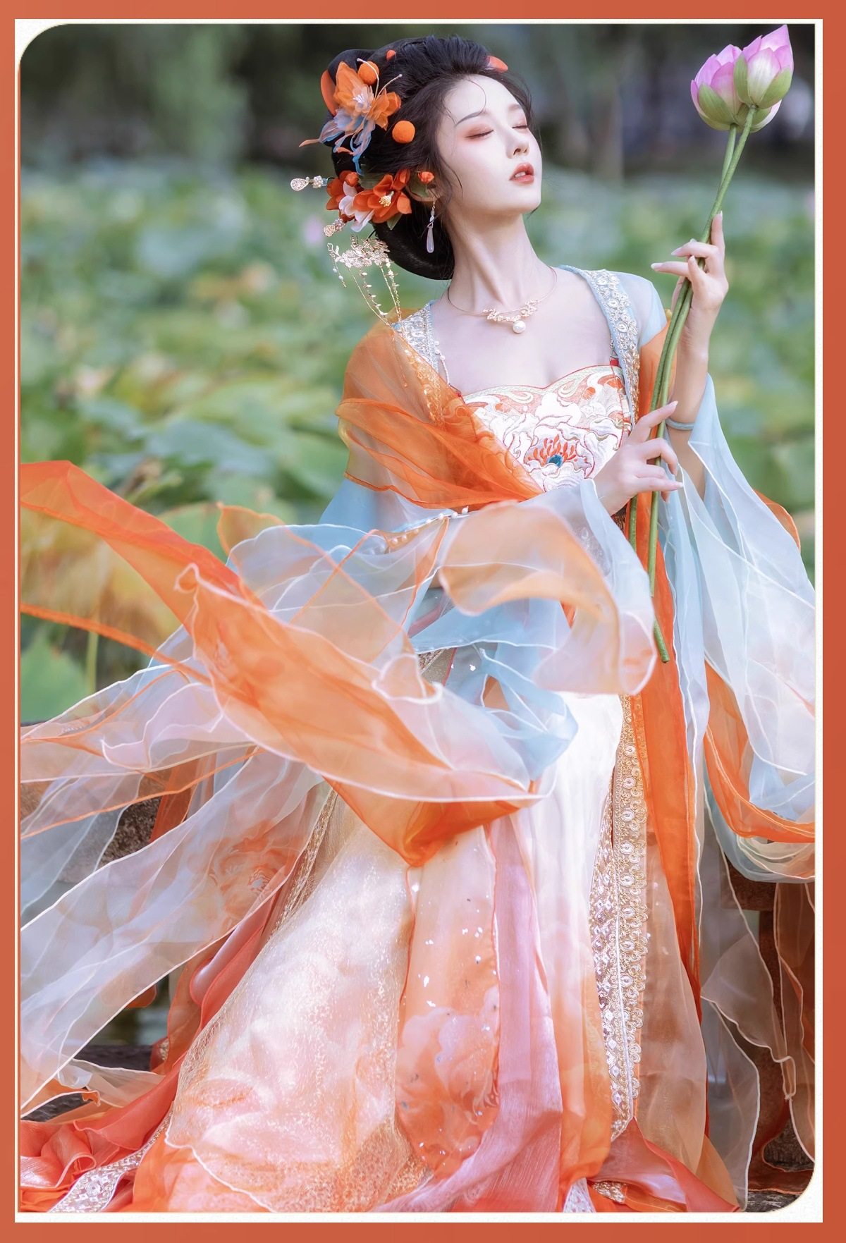 Hanfu Women's Tang Style Chest Chebula Dress Suit Heavy Industry Embroidered Butterfly Big Sleeve Shirt National Style Super Fairy Summer Princess Dress