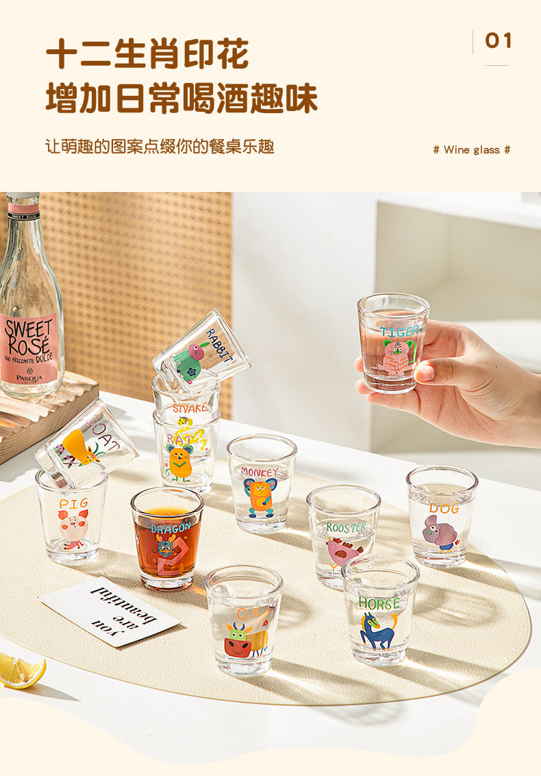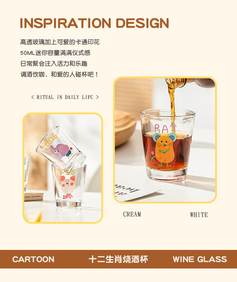 Cartoon Tipsy Cup Glass Female High-Looking Zodiac Water Cup Home Coffee Cup Sake Cup Set