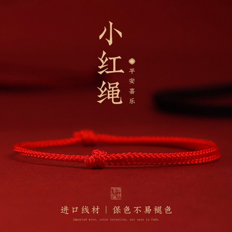 Peaceful and Auspicious Small Red Rope Bracelet, Red Rope Anklet, Zodiac Year Red Rope Anklet, Braided Hand Rope, Good Luck and Protection Red Rope