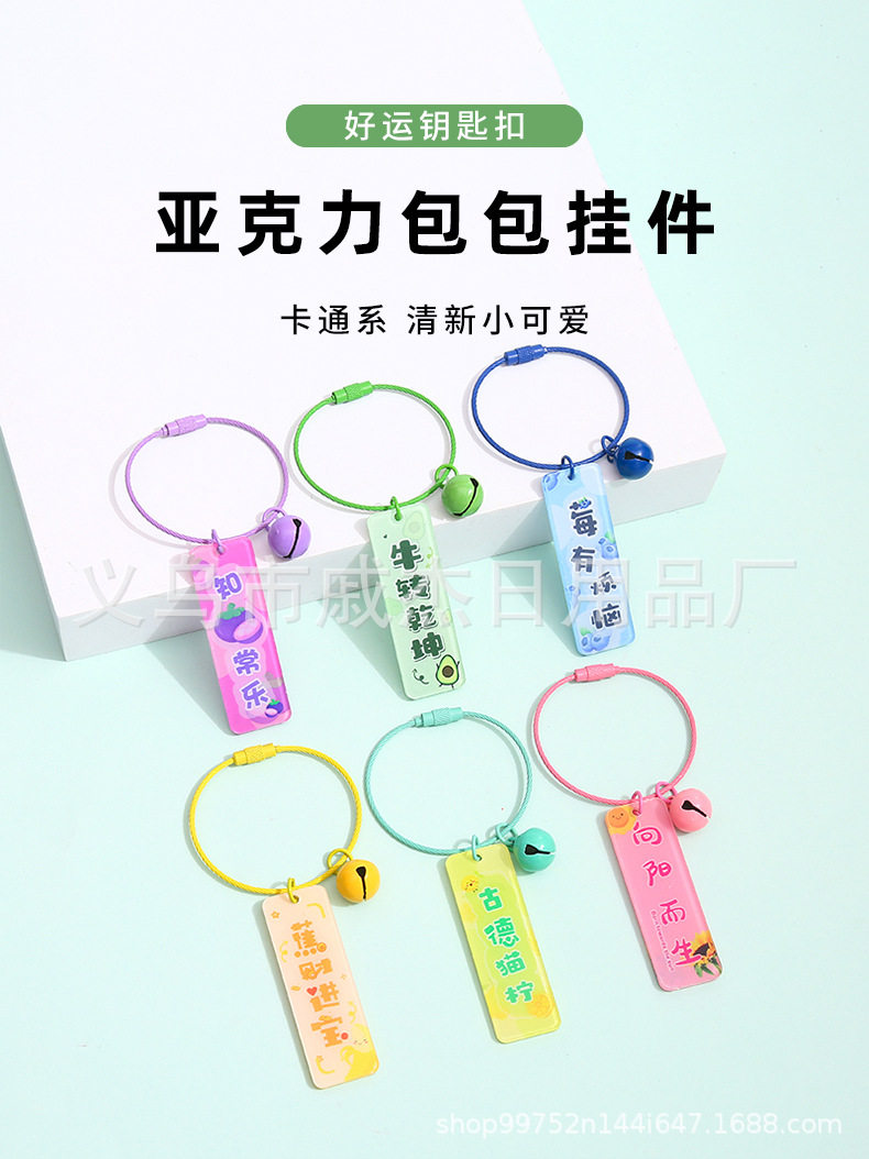 Creative Text Acrylic Tag Keychain Pendant Female Cute Student Gift Metal Paint Wire Rope Pendant