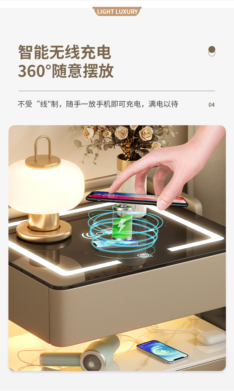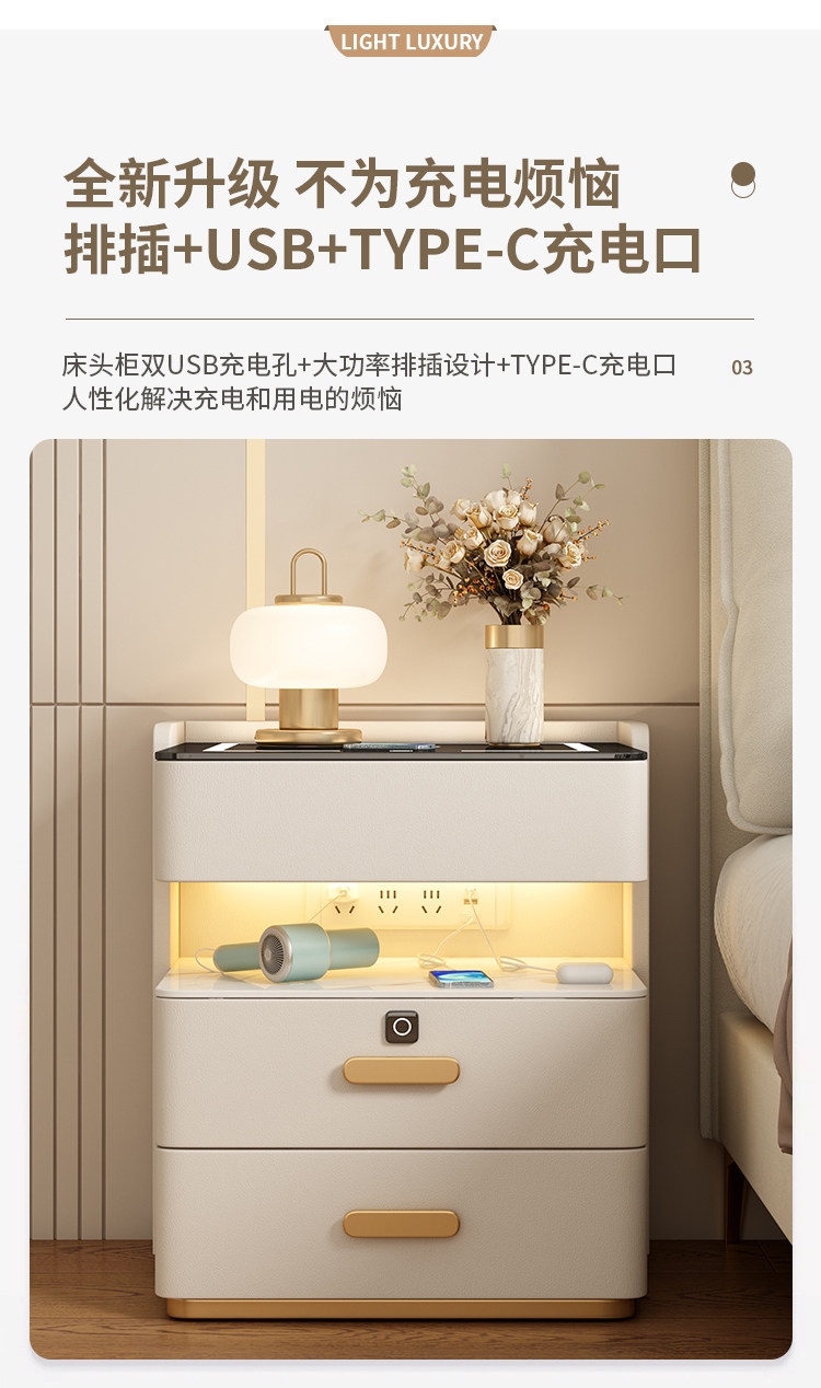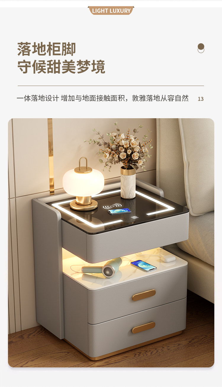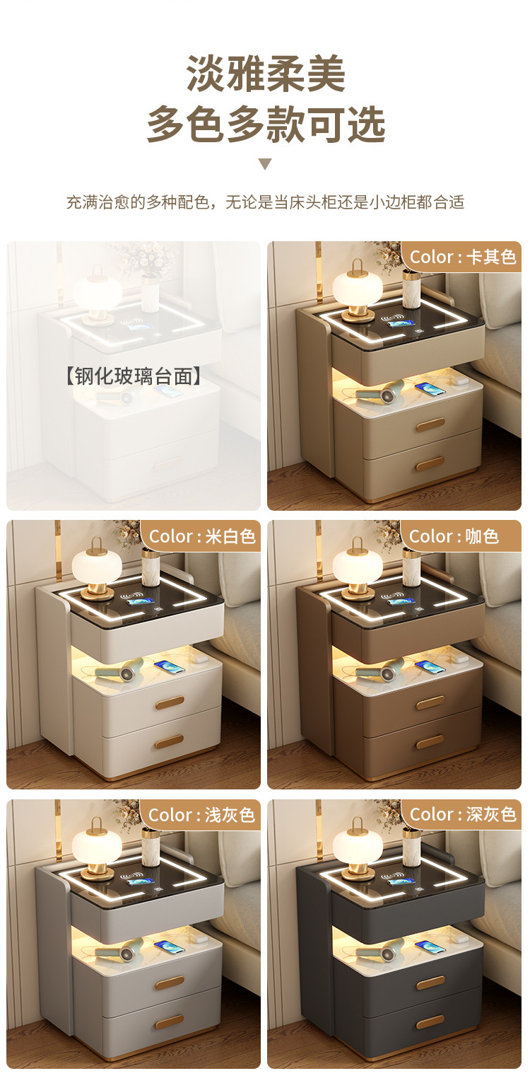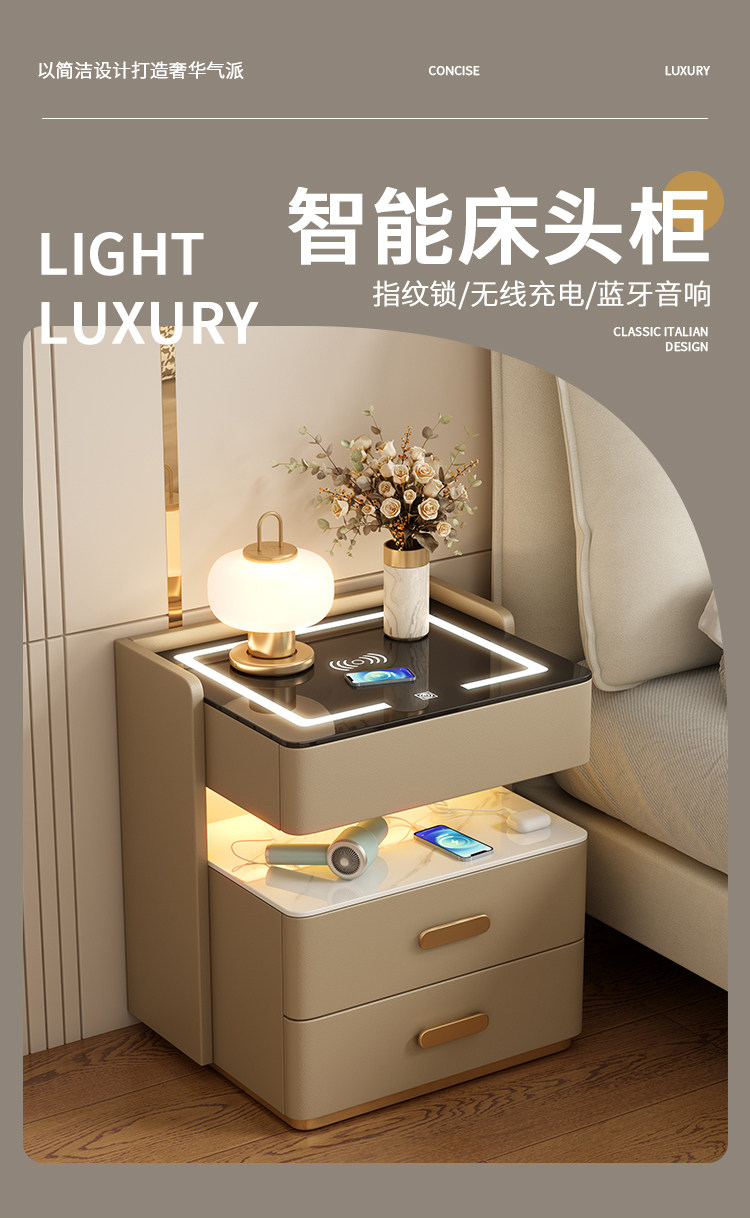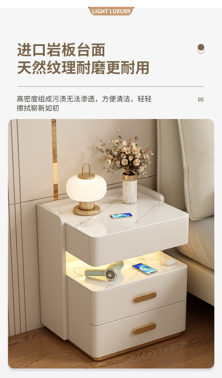 Smart Bedside Table 2024 New Style Simple Modern Solid Wood Installation-Free Bedroom Home Multi-Functional Slate Bedside Table