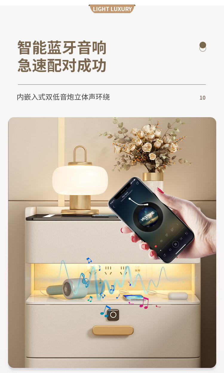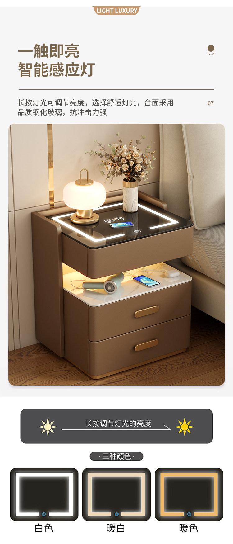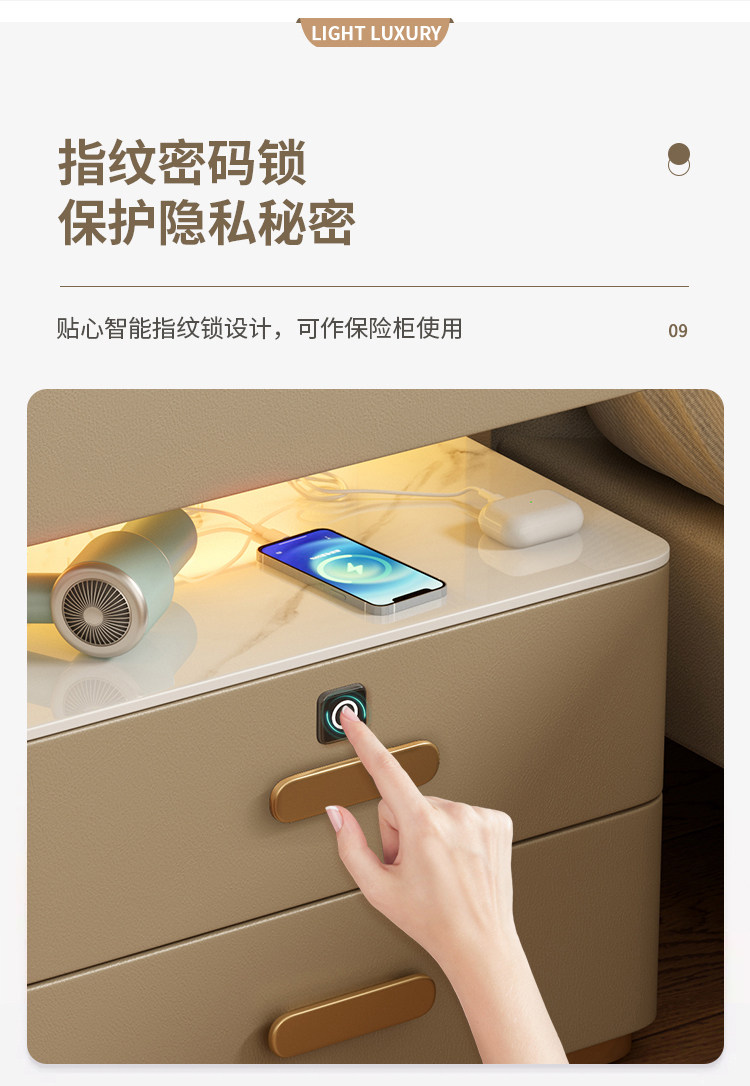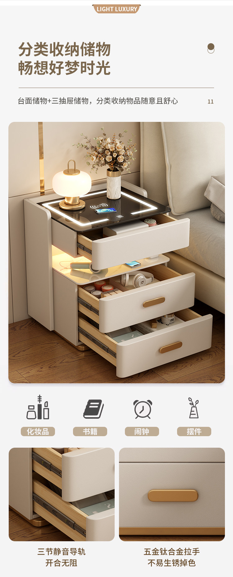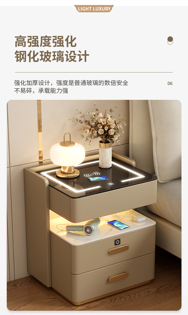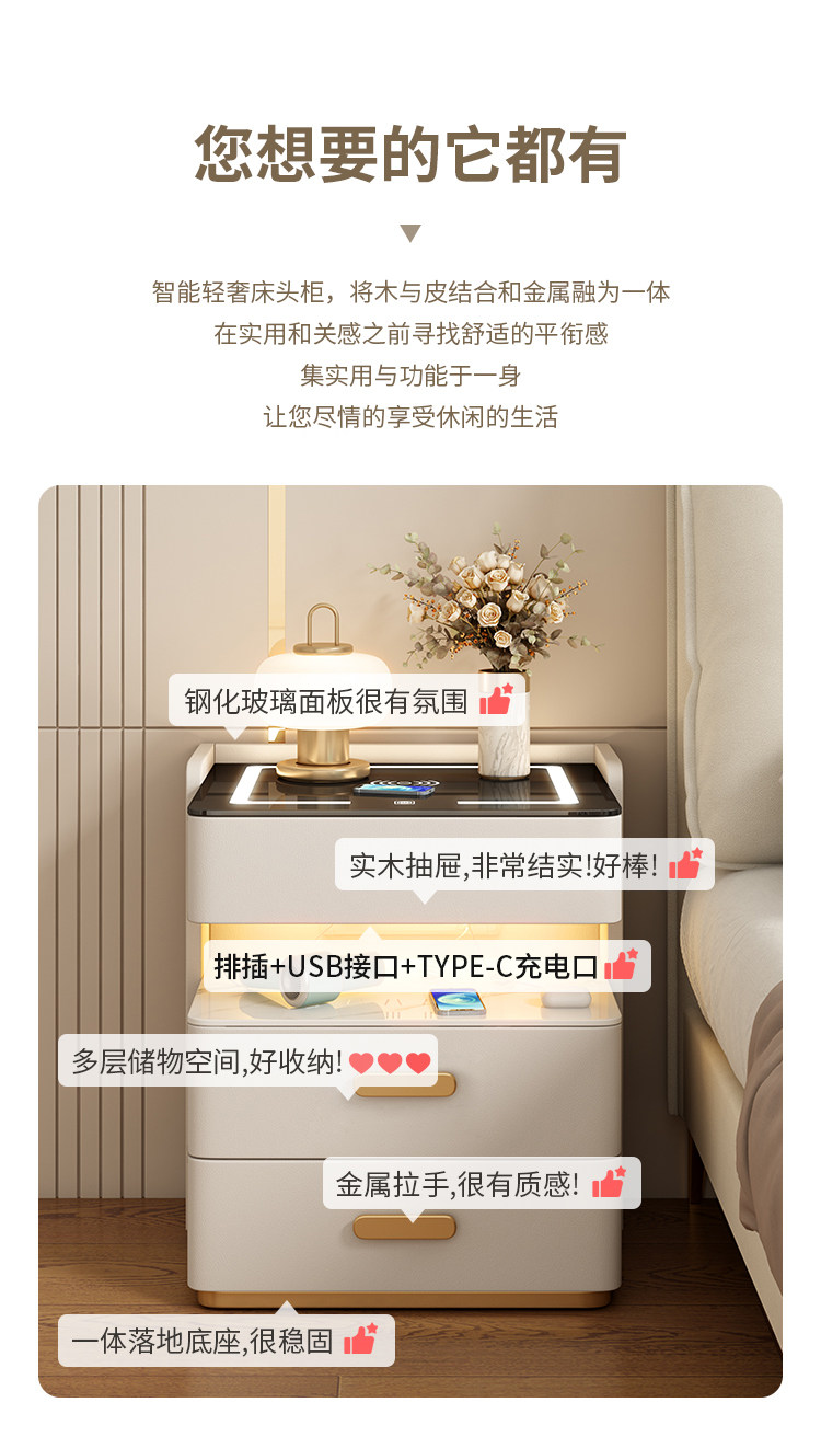 Smart Bedside Table 2024 New Style Simple Modern Solid Wood Installation-Free Bedroom Home Multi-Functional Slate Bedside Table