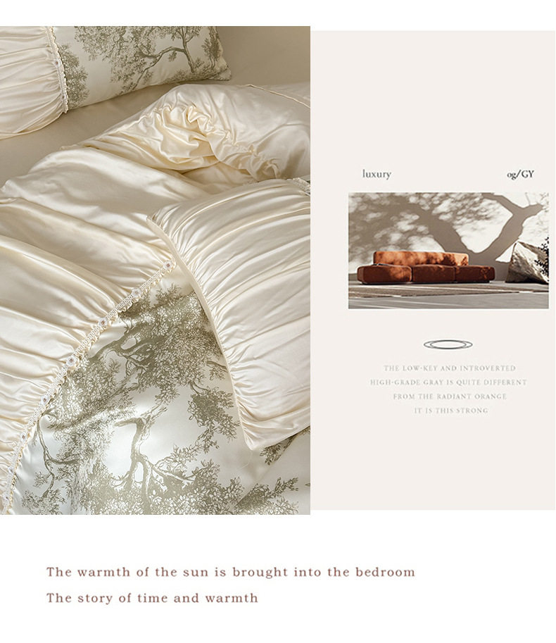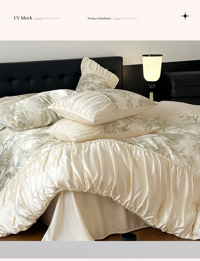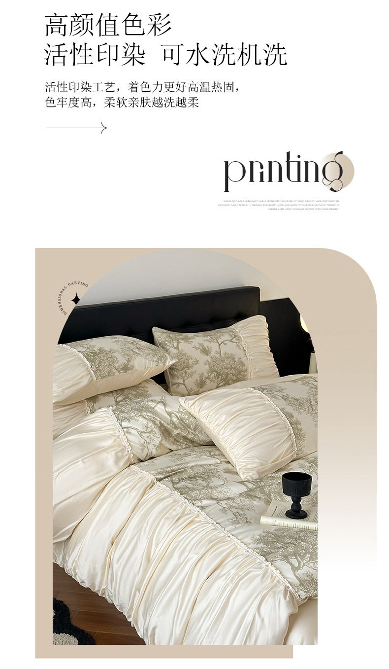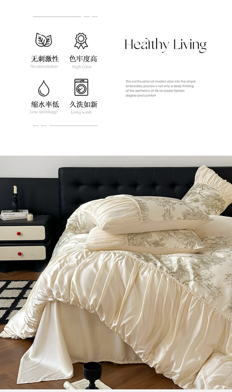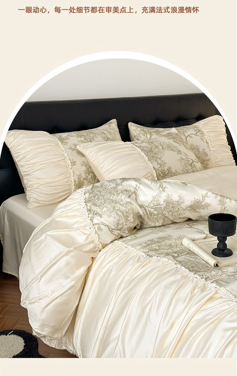 French Romantic Retro Style Washed Tencel Four-Piece Set Light Luxury Summer Washed Ice Silk Cool Bedding Set