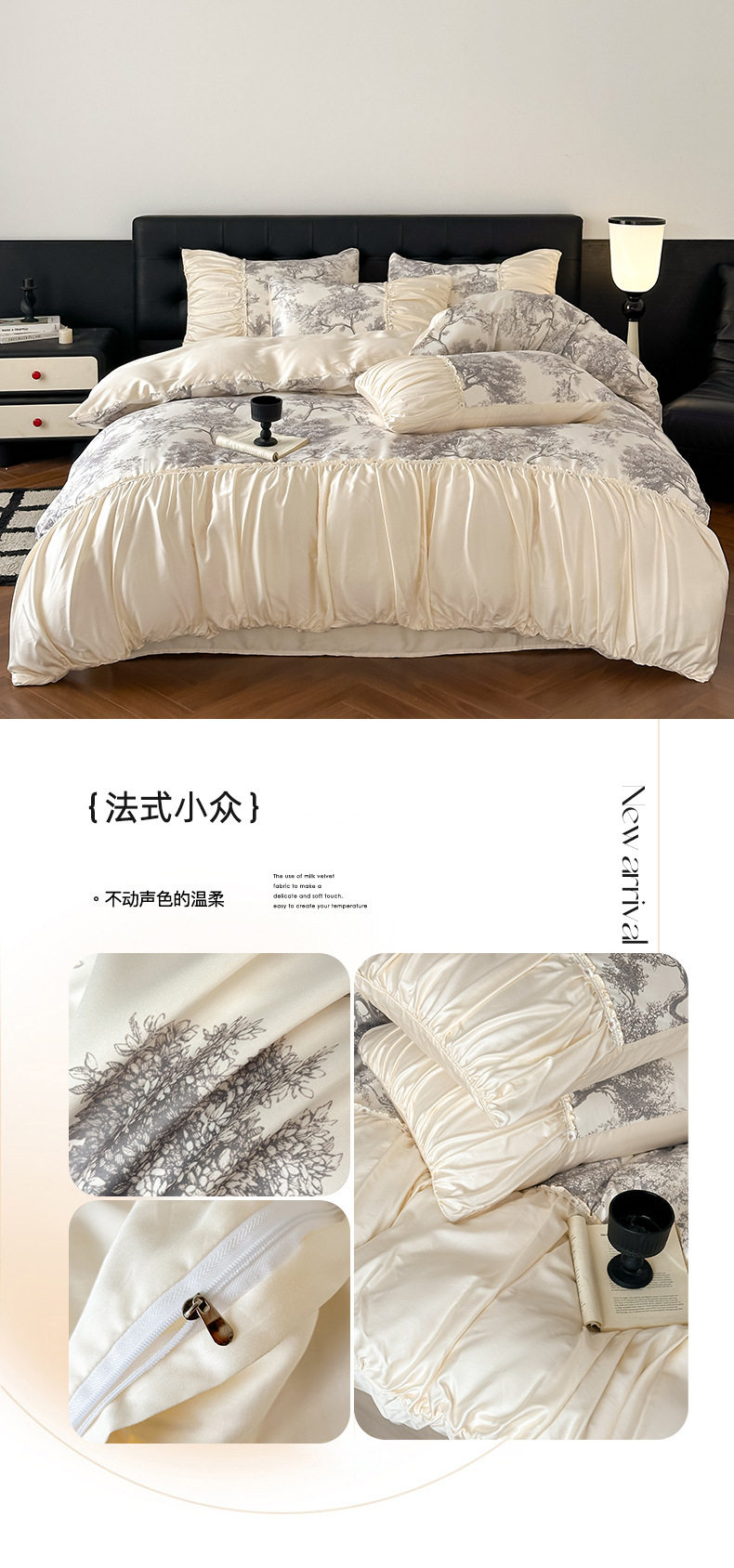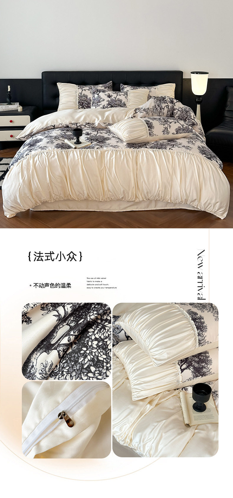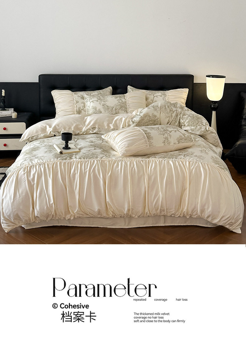 Dimensions 1.5m bed sheet four-piece set [applicable to 200*230cm quilt],1.8m bed sheet four-piece set [applicable to 200*230cm quilt],2.0m bed sheet four-piece set [applicable to 220*240cm quilt],1.5m fitted sheet set of four [applicable to 200*230cm quilt],1.8m fitted sheet set of four [applicable to 200*230cm quilt]
