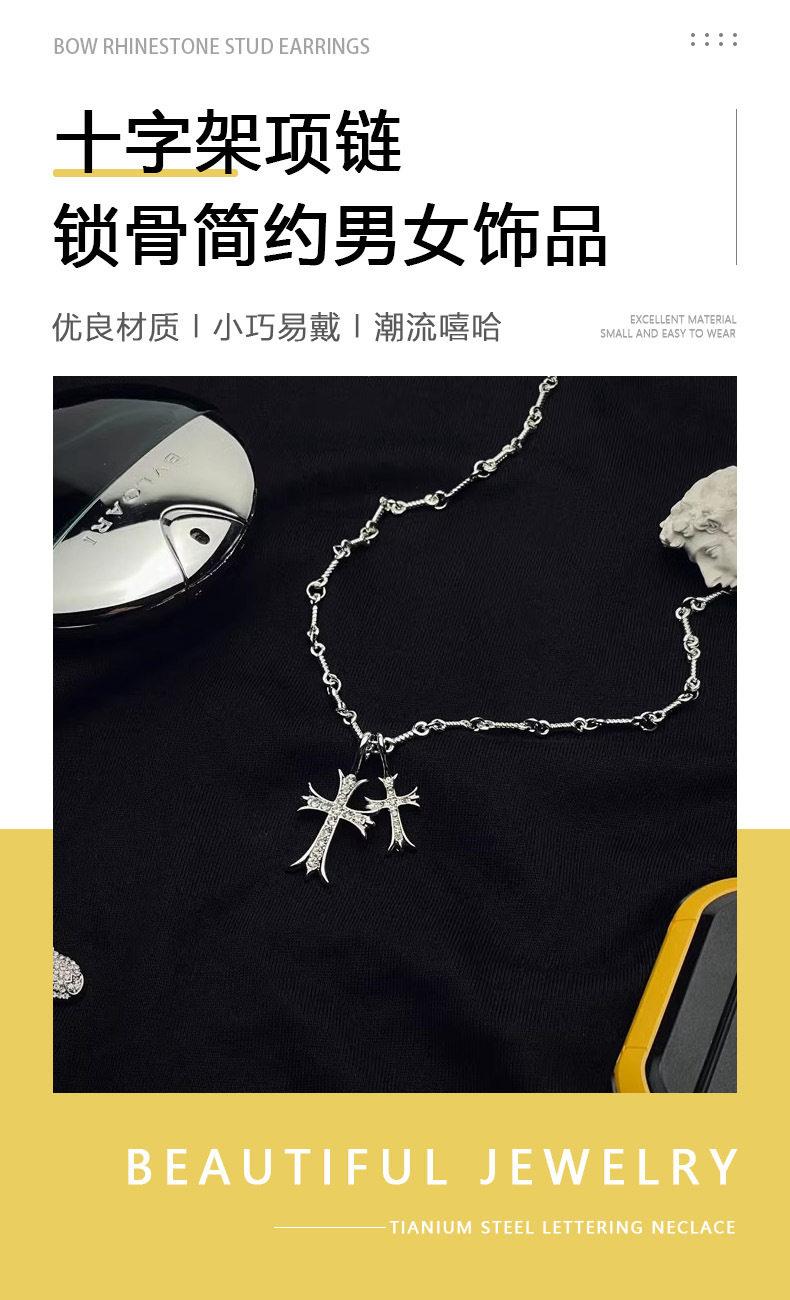 Double Cross Diamond Necklace for Men, Versatile, Trendy, Hip-Hop, Simple and Personalized Design, Clavicle Chain, Non-Fading Gift Jewelry